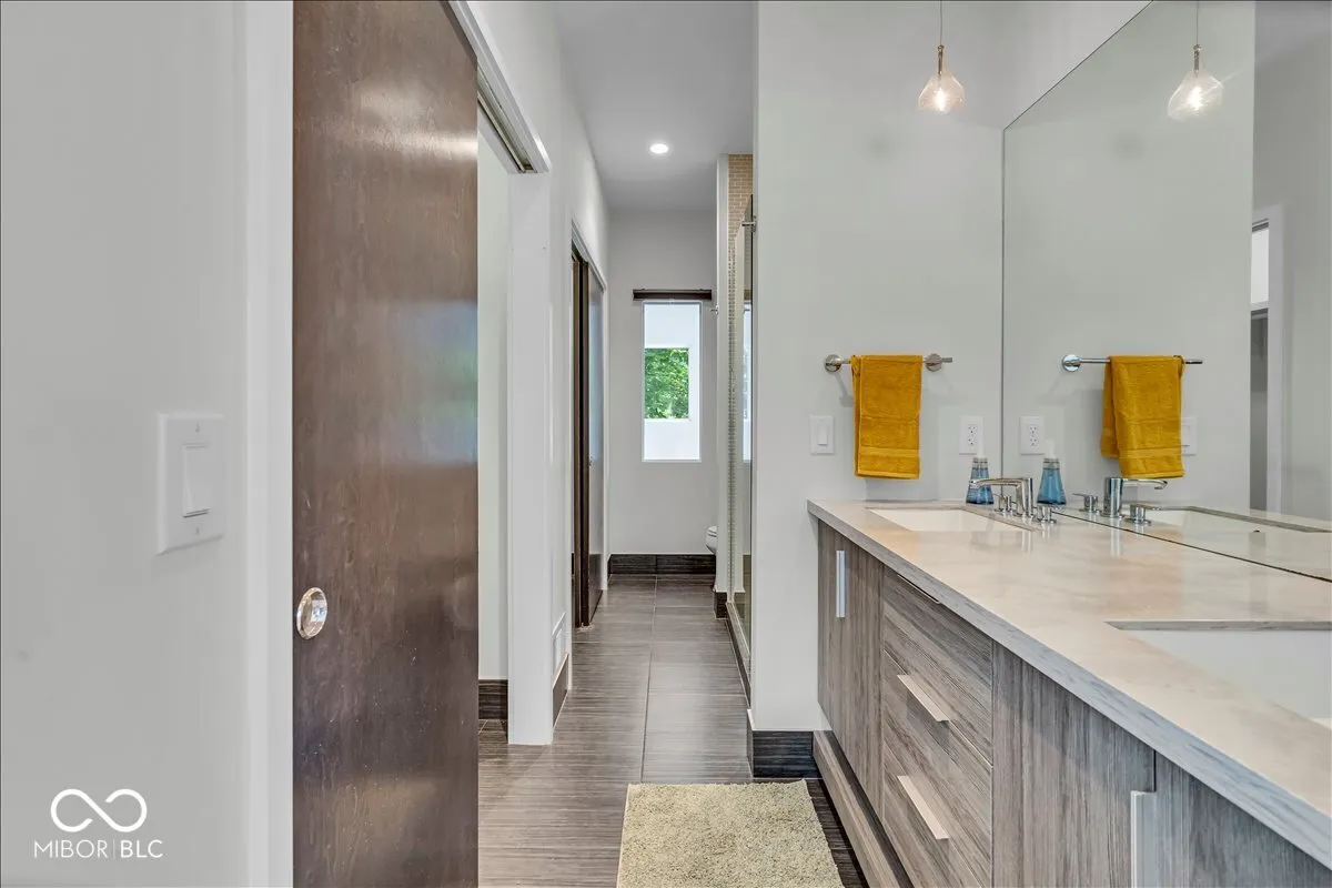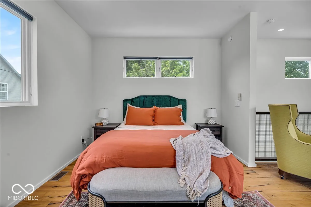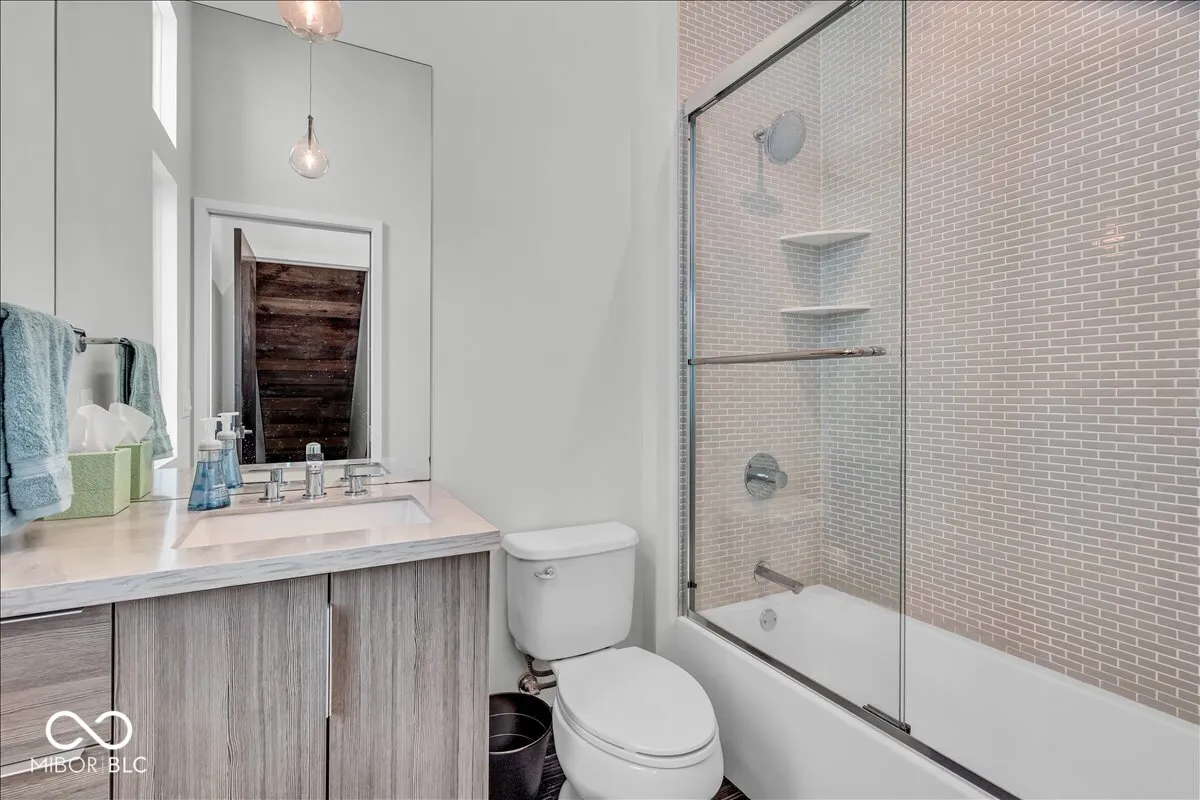 Welcome home to this beautifully furnished, newer construction residence, walkable in minutes to the renowned BOTTLEWORKS and FACTORY ARTS DISTRICTS of Indianapolis! Sojourn to 8th Day Distillery, Centerpoint Brewing, Sidedoor Bagel, the Bottleworks Hotel, the Garage Food Hall, Modita and more, within steps of your sweet front porch. This truly impressive home COMES FULLY FURNISHED and boasts an open-concept floor plan with sleek finishes, soaring ceilings and streams of natural light. Well-appointed chef’s kitchen is complete with stainless steel appliances, sparkling countertops and a large island perfect for entertaining. Convenient main floor auxiliary bedroom offers plenty of space for family, guests or even a home office. Upstairs, the primary suite is a true retreat, boasting a generous sitting area and spa-like ensuite bath. Lower level is perfect for movie nights and gaming and hosts a third bedroom for ultimate versatility. Outside, enjoy ample space to relax with friends under the stars around the cozy gas firepit. Tandem 2-car garage provides room for all your toys. With its unbeatable location, you’ll have effortless access to gourmet restaurants, local indie shops and enthralling entertainment. Don’t miss out on the opportunity to call this contemporary gem your new home!