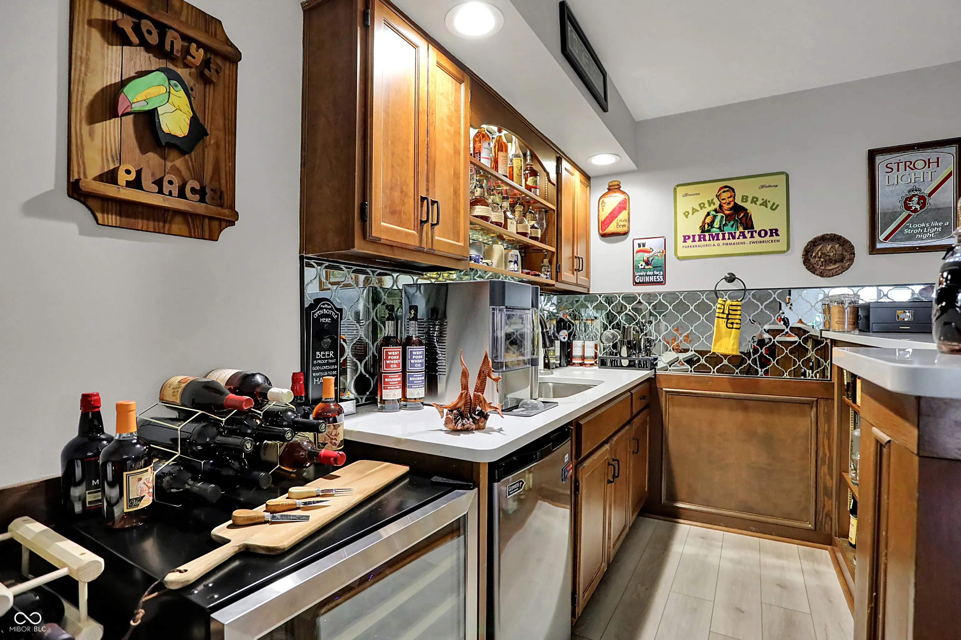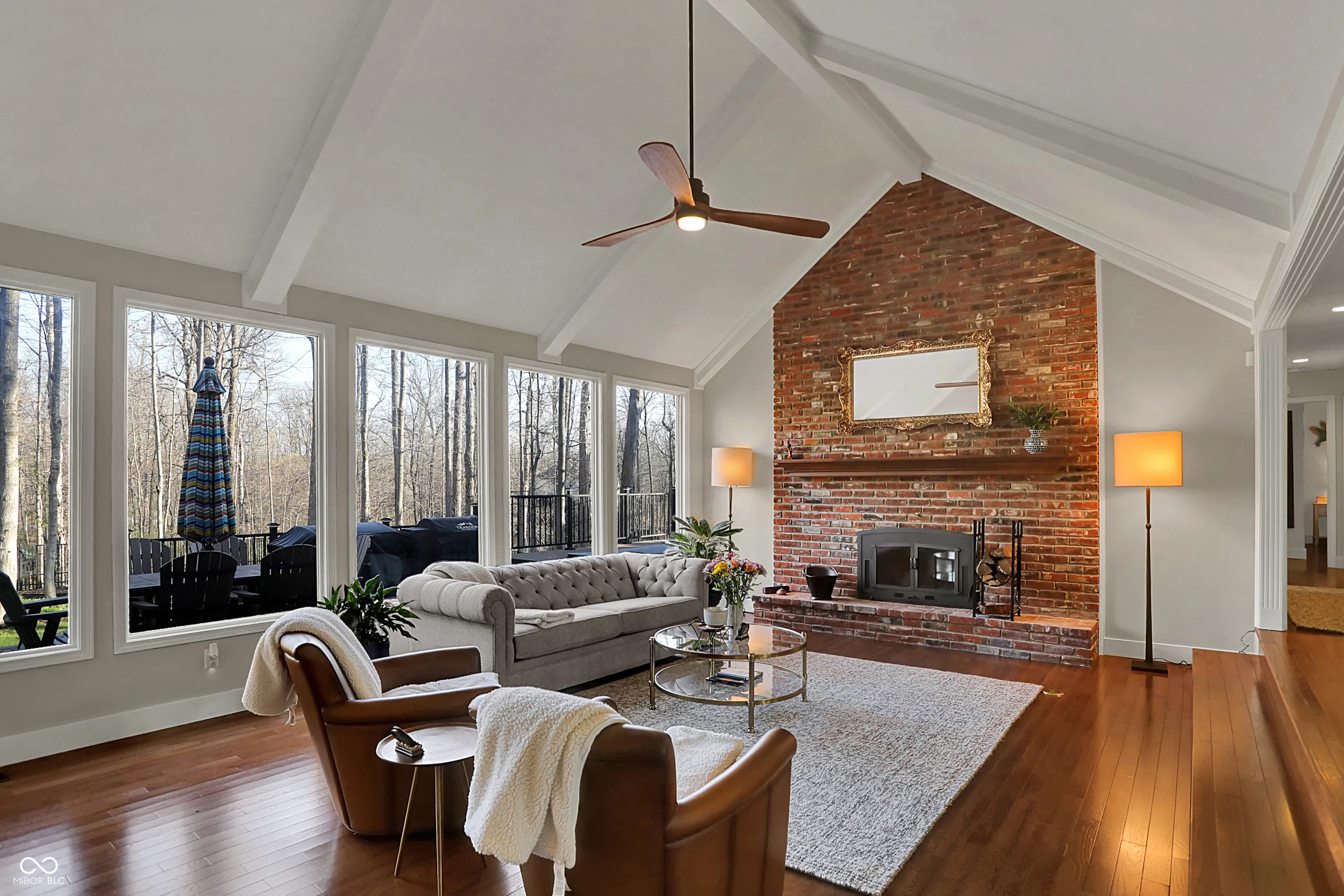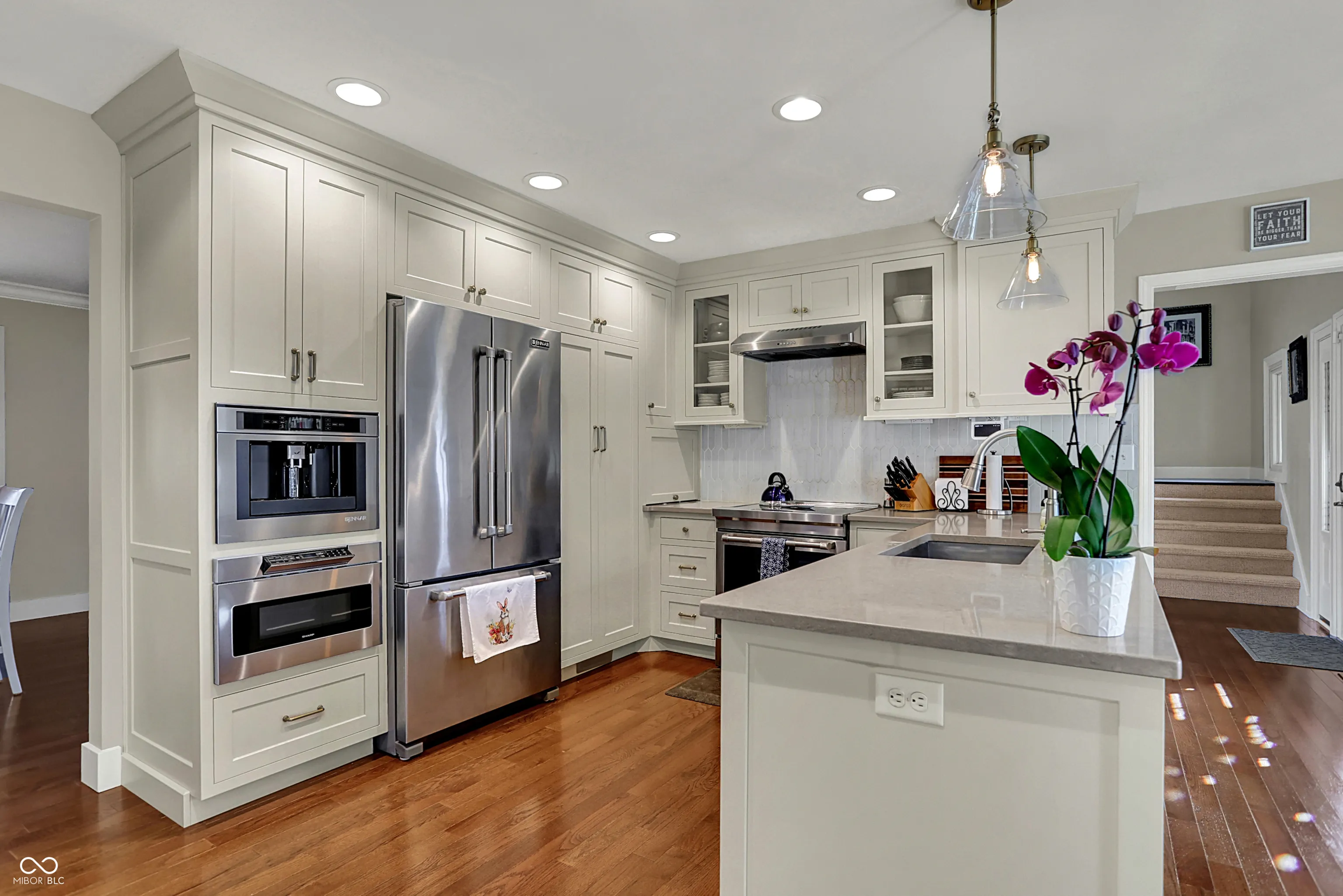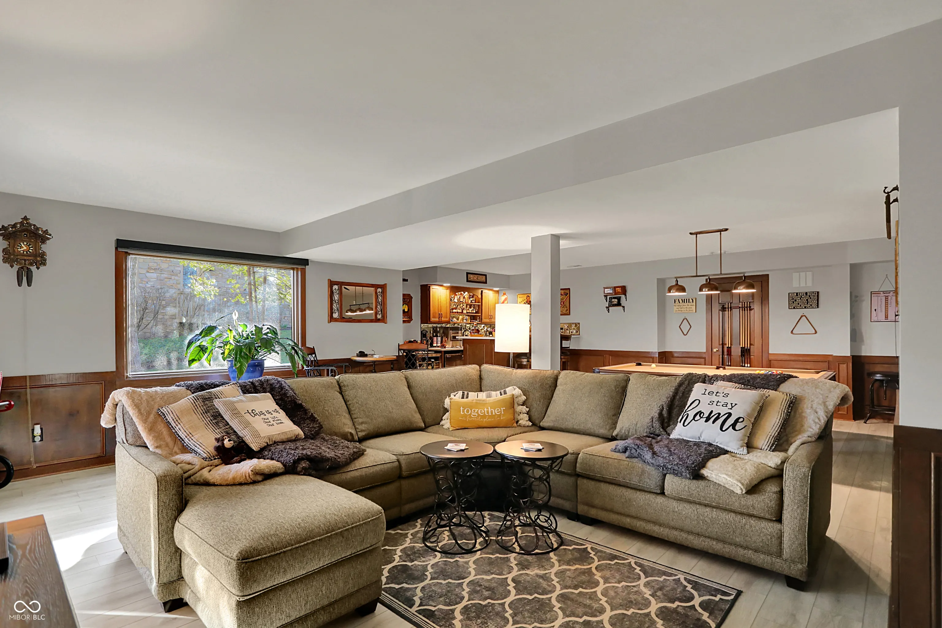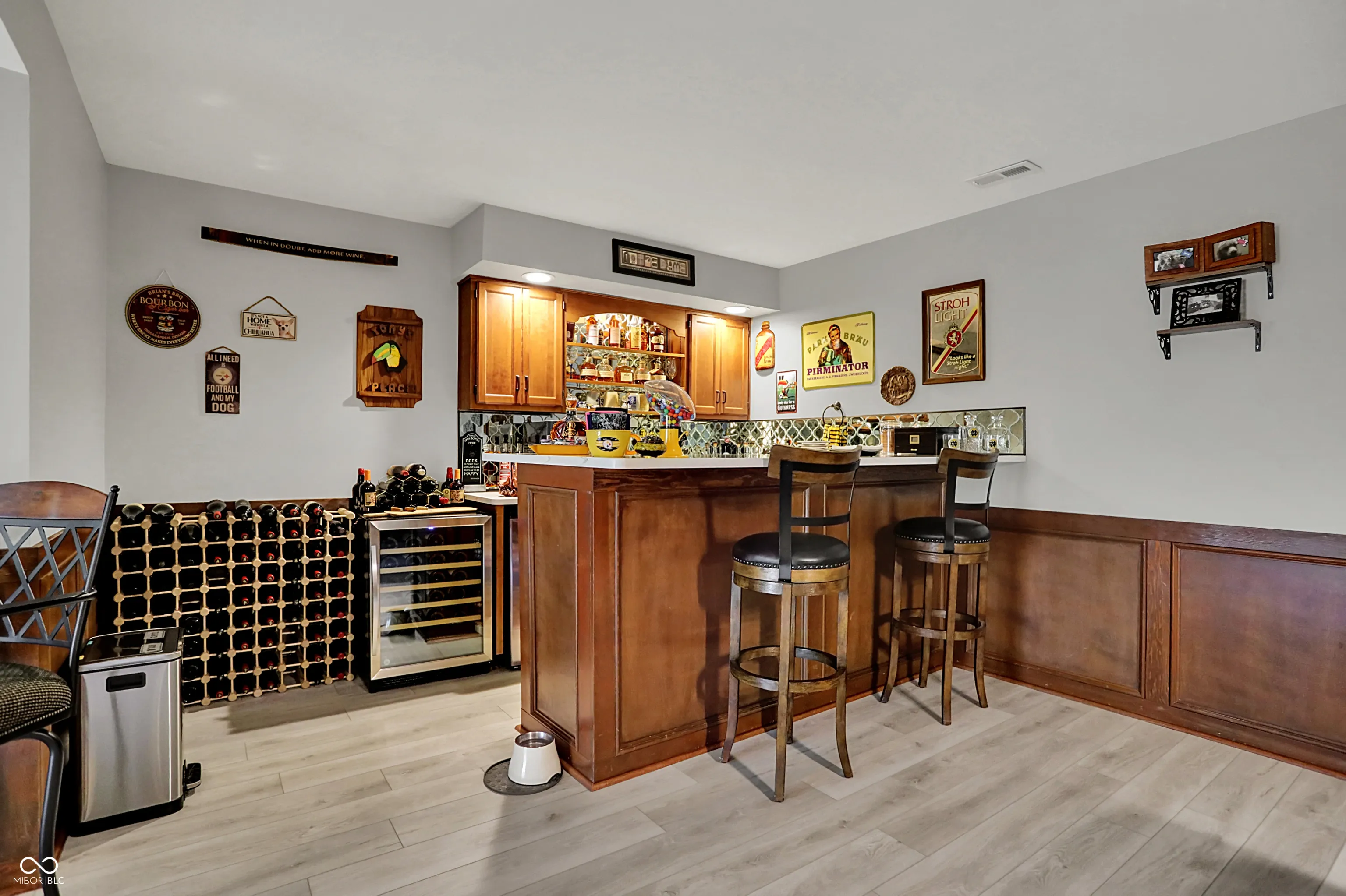 Spectacular custom ranch on cul-de-sac with peekaboo water views across the street in sought after waterfront neighborhood is sure to check all the boxes! Inviting front porch, walkout basement, and fully fenced wooded yard could be yours! Large floor to ceiling windows offer beautiful views of the mature trees in back yard from the moment you enter the home. Enjoy a built in coffee machine in well appointed kitchen. Hardwoods throughout main, upstairs attic space is plumbed for future bath and offers excellent storage. Master bedroom offers ensuite, walk in closet, and sliders to deck along with new motorized awning for extra shade. 4 BR, 2.5 baths, 3 car garage, basement bar and pool table areas, along with a cozy family room with fireplace and custom blinds make for a great family movie night! Outside, you will find a three seasons room with gas stove/fireplace, tiled floors and gorgeous views. In addition, the deck was recently upgraded to offer Trex decking around existing hot tub, offering low maintenance outdoor living, and below the deck/at the walkout sliders you will find some outdoor storage. Easy commute via 96th/Fall Creek access. This neighborhood will immediately feel like home, with its spacious front and rear yards and abounding character!