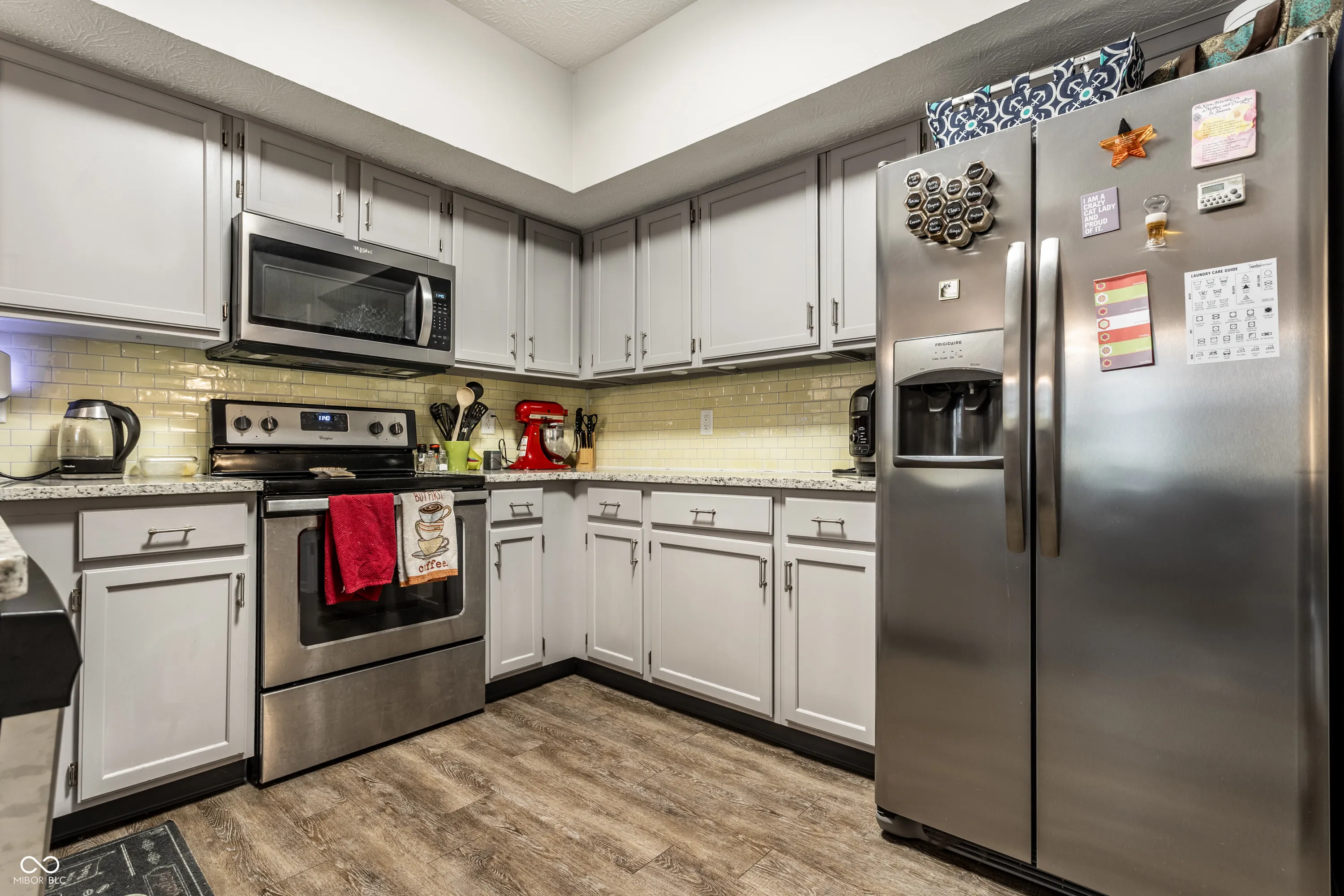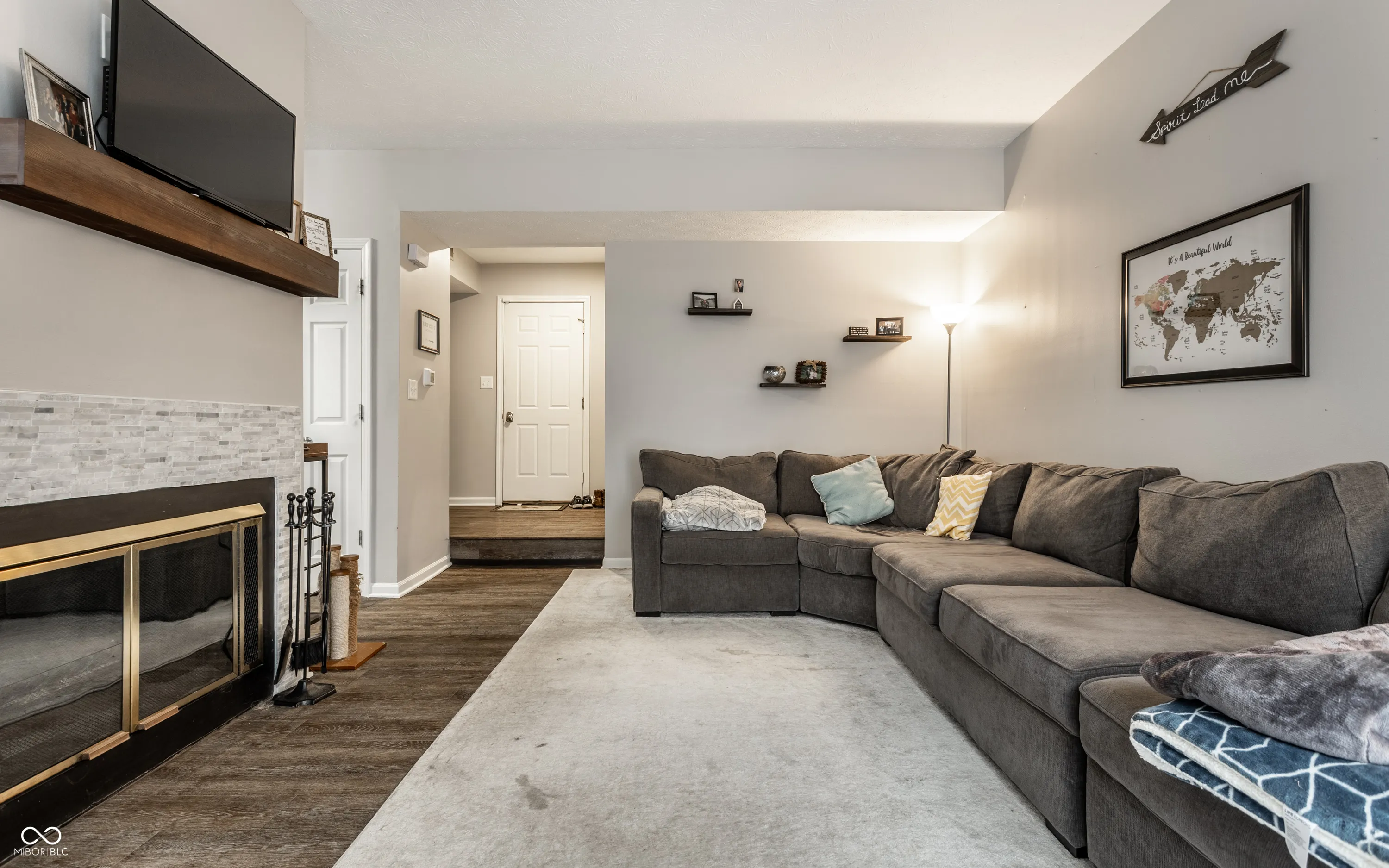 Come see this tastefully updated 2-bedroom condo in quiet development. Vinyl Hardwood floors throughout main, updated lighting throughout, beautiful kitchen with granite countertops, stainless appliances & breakfast bar, wood burning fireplace with stone surround, updated half bath on main, main floor laundry plus washer/dryer stay, large 2 car attached garage, great storage/closet space throughout, fully remodeled bath upstairs with floating vanities, gorgeous soaking tub with accent tile on wall, separate tiled shower & updated lighting, owner’s suite has 2 closets. New Furnace (2019), water softener (2020) & ADT security system with doorbell camera. New garage door opener (2019). Community has a pool & tennis courts. Easy access to interstate and shopping/restaurants. First time homebuyers qualify for 4.99% interest rate with Indianapolis Neighborhood Housing Partnership.