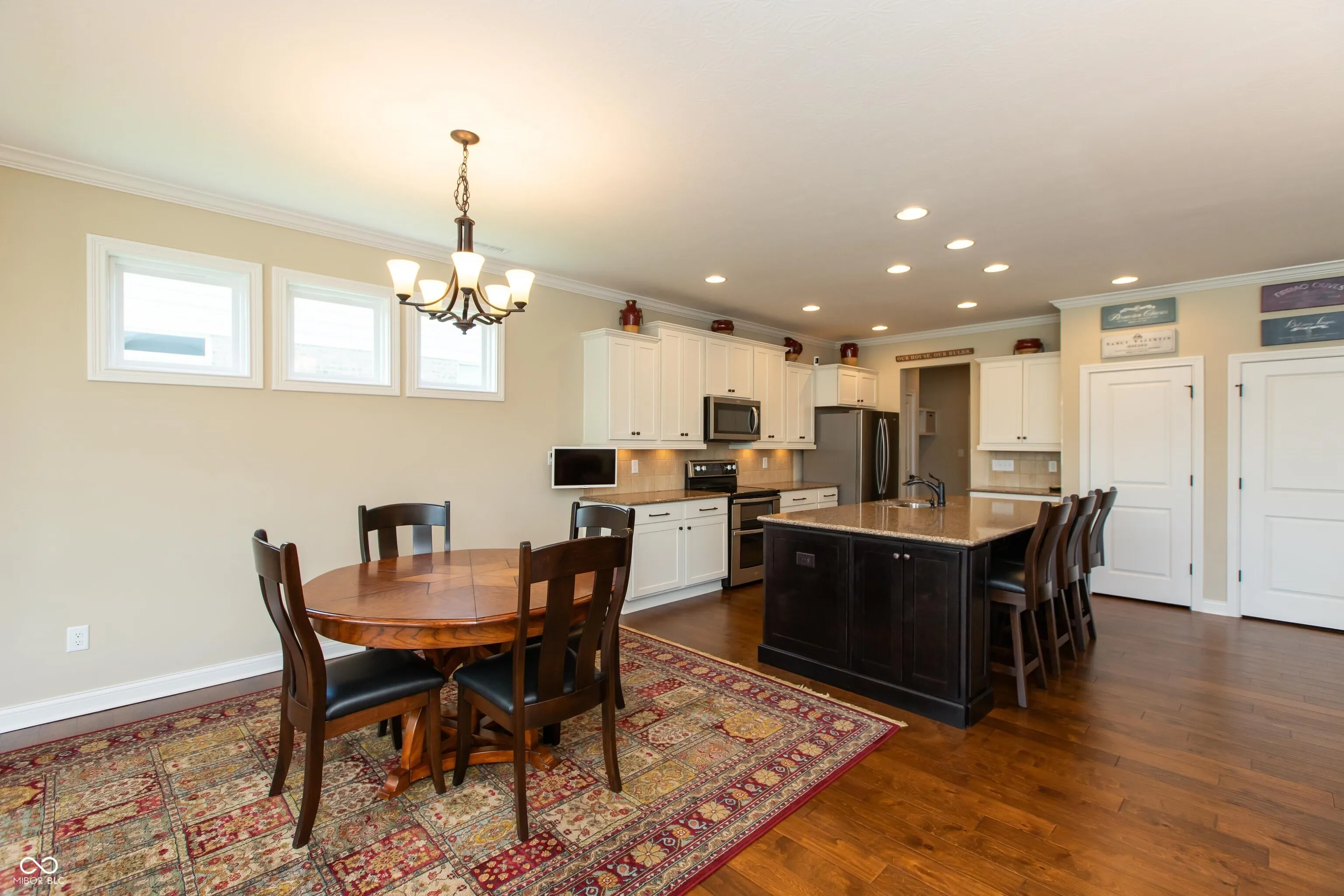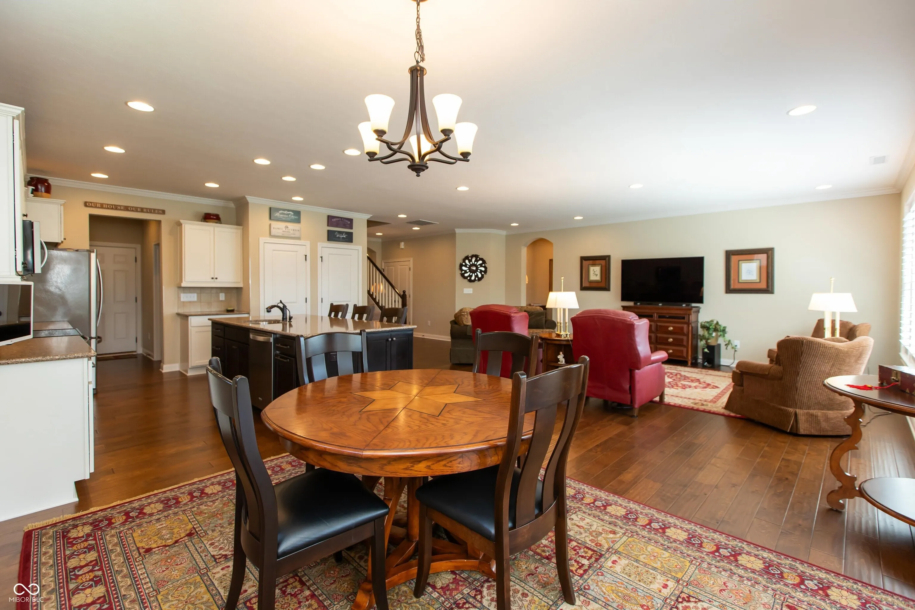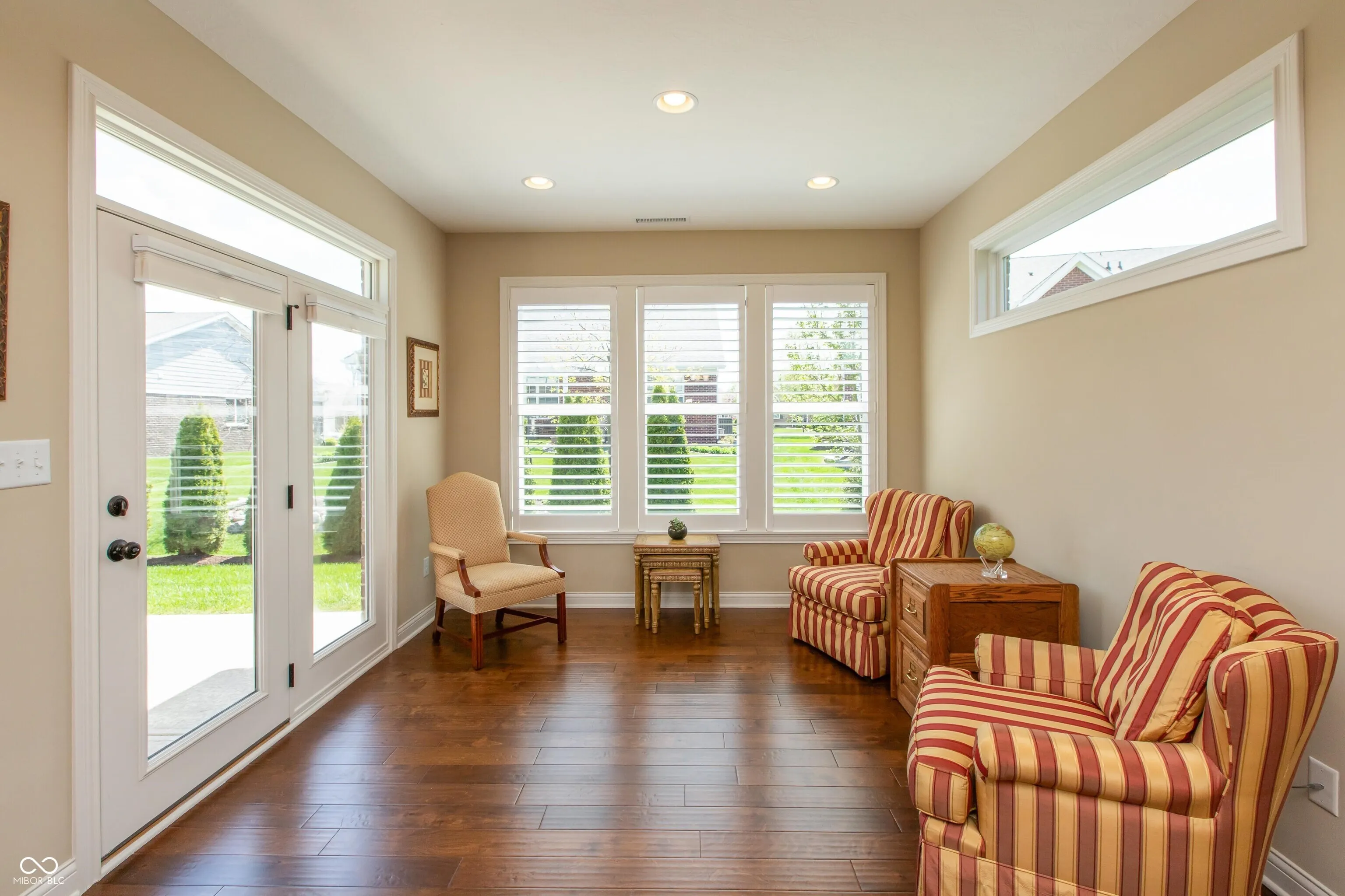 Fischer built ranch with loft in low maintenance Villages of Oak Manor! Kitchen with white cabinets, large center island, quartz tops & stainless appliances opens to wonderful living space in family room, dining area and sunroom, all with hardwood floors. Split bedroom floorplan. Spacious primary suite features double sinks, stall shower and walk-in closet. Incredible space upstairs includes large bonus room/loft as well as finished storage room. Added features include irrigation system, reverse osmosis system, water softener, additional insulation, plantation shutters in front bedroom, living room & sunroom, gas line to concrete patio, mudroom bench with storage shelves above, recessed LED lighting throughout, four foot extension to garage and suspended bike storage system on garage ceiling. Sunroom leads to 16×12 patio and back yard with beautiful red maples and mature evergreens for privacy. Brick exterior with stone accents. Monthly fee includes Master HOA, Nottingham Village HOA, yard mowing & trimming, 5 fertilizations per year, mulching and snow removal including driveway and sidewalks! Welcoming community with amenities including clubhouse, exercise room and swimming pool. Immaculate, well maintained home with neutral decor throughout.