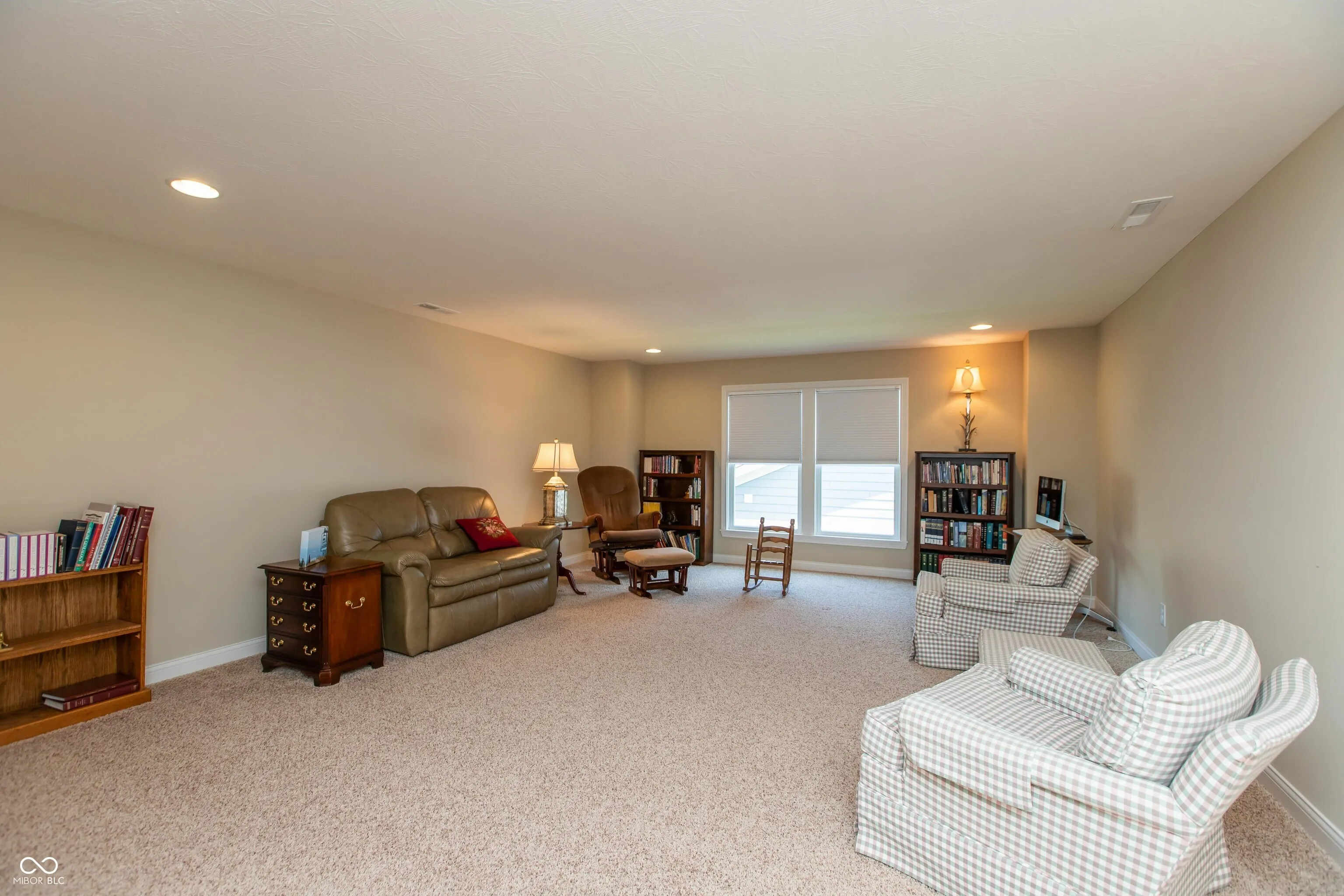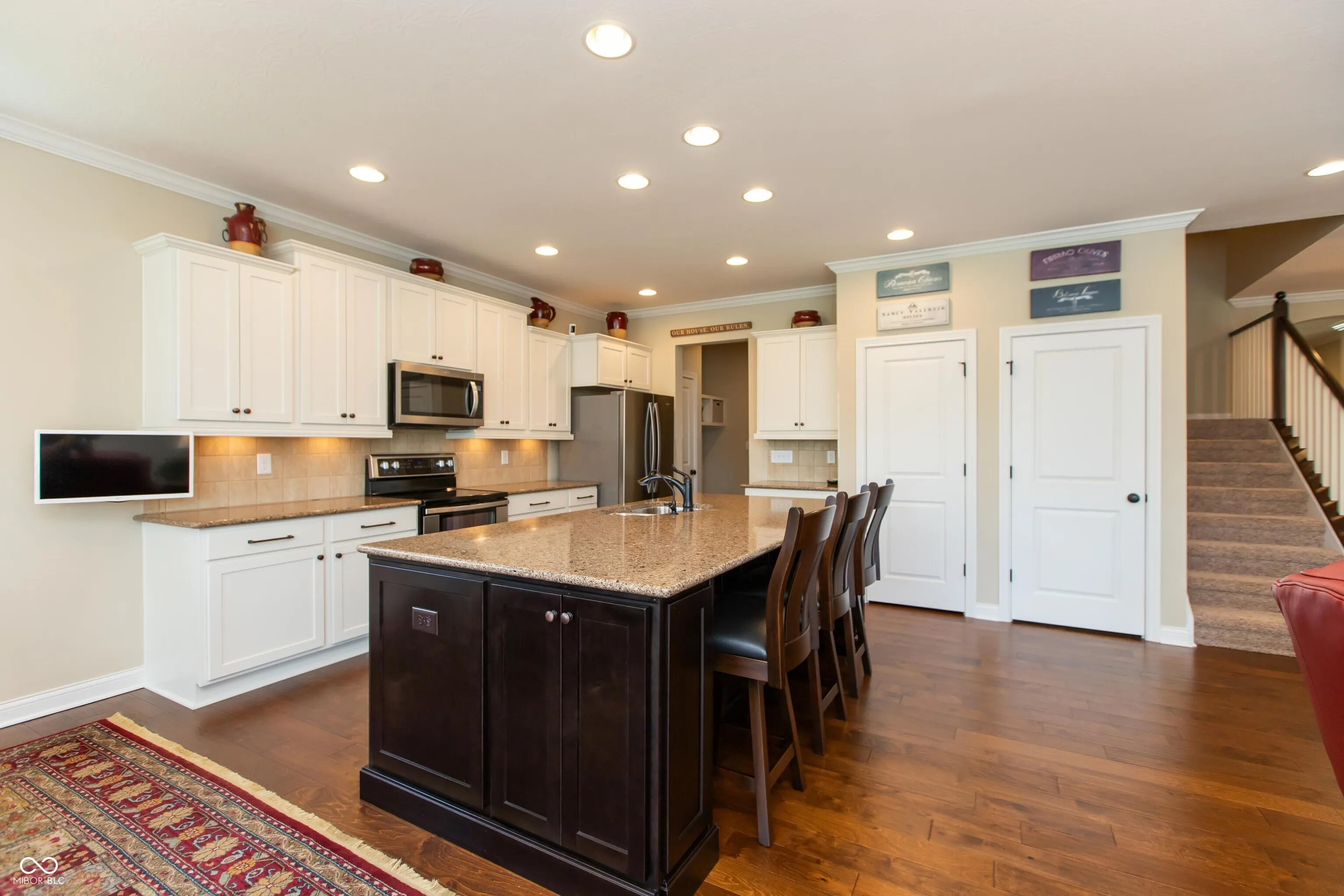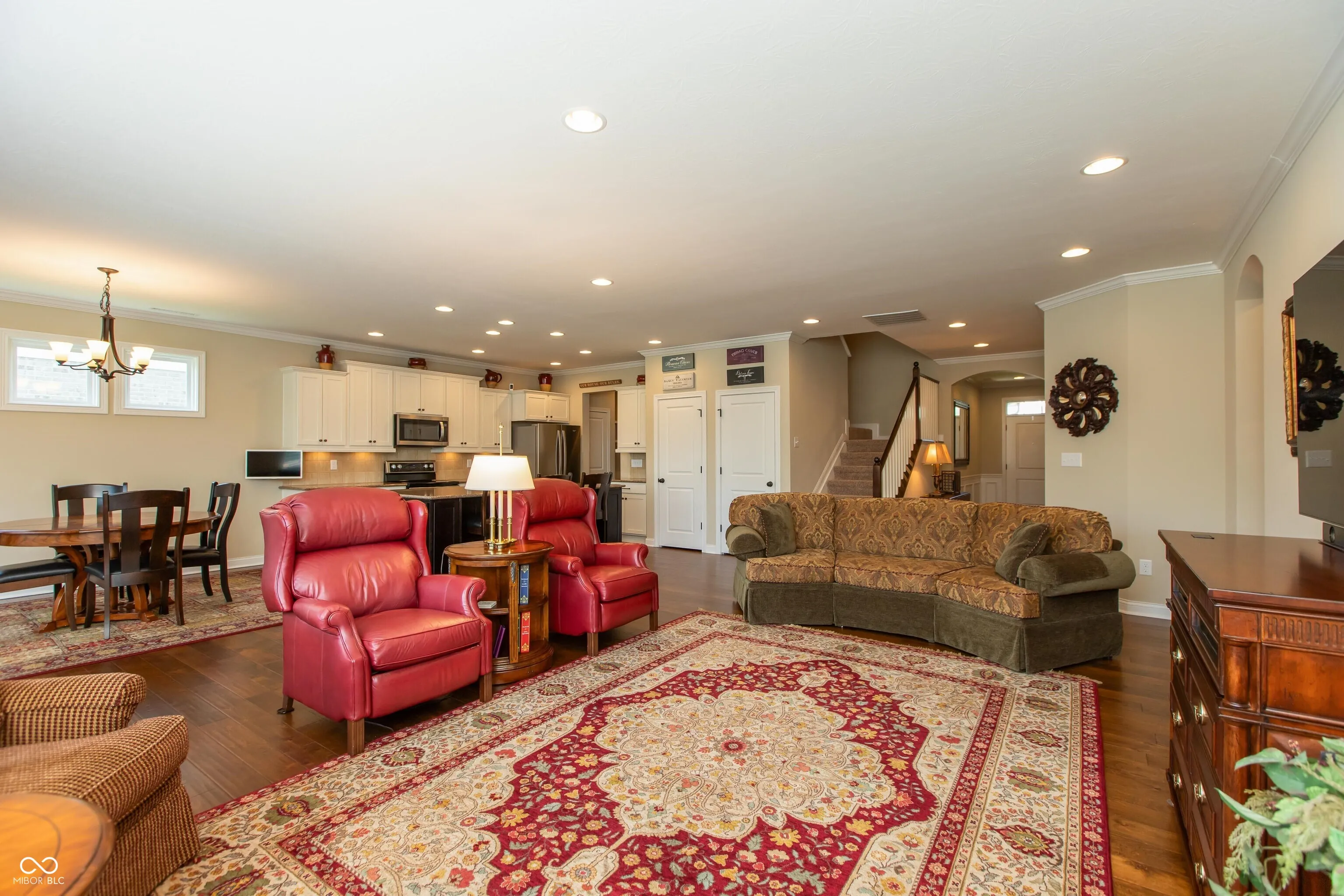 Fischer built ranch with loft in low maintenance Villages of Oak Manor! Kitchen with white cabinets, large center island, quartz tops & stainless appliances opens to wonderful living space in family room, dining area and sunroom, all with hardwood floors. Split bedroom floorplan. Spacious primary suite features double sinks, stall shower and walk-in closet. Incredible space upstairs includes large bonus room/loft as well as finished storage room. Added features include irrigation system, reverse osmosis system, water softener, additional insulation, plantation shutters in front bedroom, living room & sunroom, gas line to concrete patio, mudroom bench with storage shelves above, recessed LED lighting throughout, four foot extension to garage and suspended bike storage system on garage ceiling. Sunroom leads to 16×12 patio and back yard with beautiful red maples and mature evergreens for privacy. Brick exterior with stone accents. Monthly fee includes Master HOA, Nottingham Village HOA, yard mowing & trimming, 5 fertilizations per year, mulching and snow removal including driveway and sidewalks! Welcoming community with amenities including clubhouse, exercise room and swimming pool. Immaculate, well maintained home with neutral decor throughout.