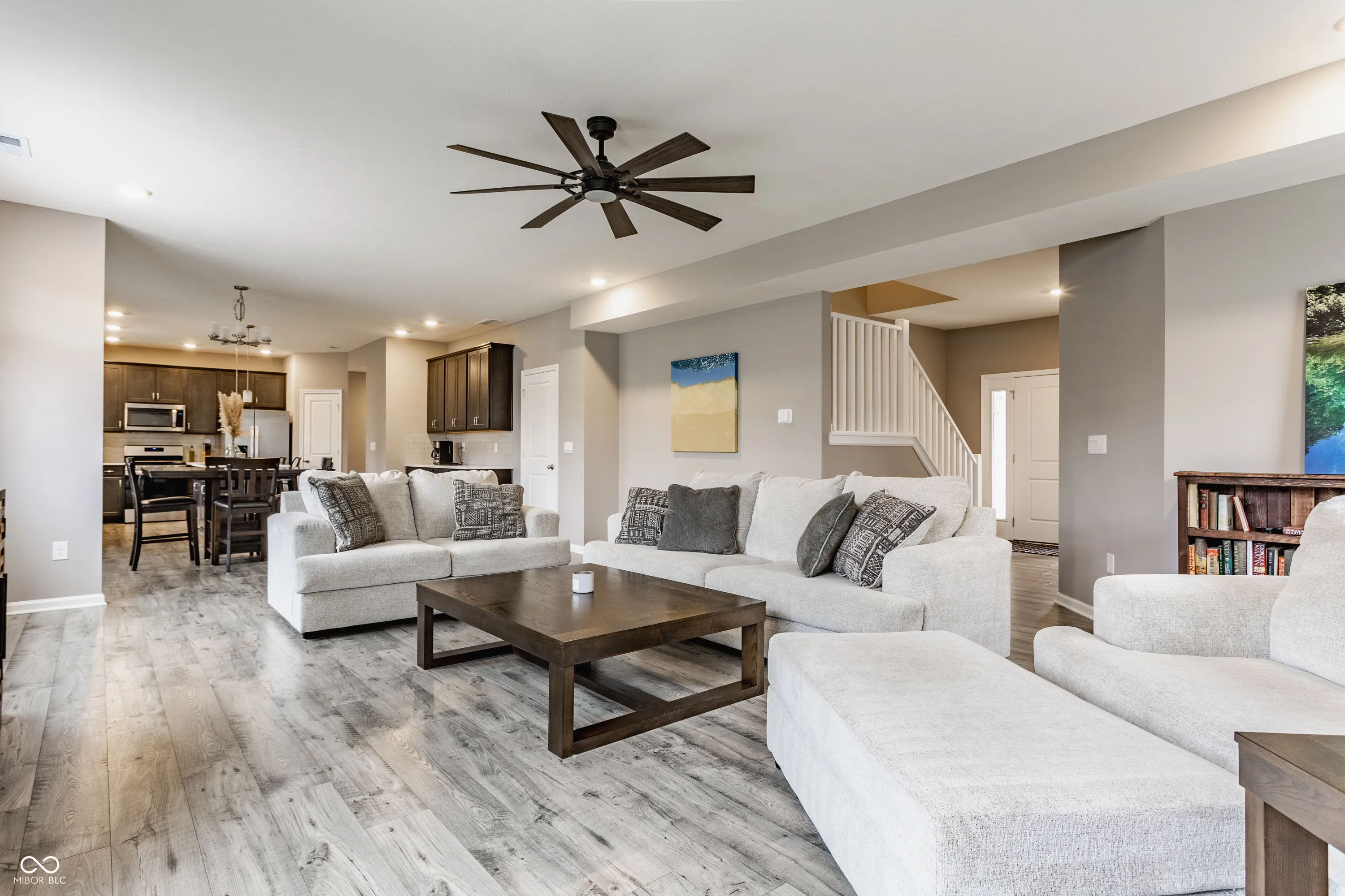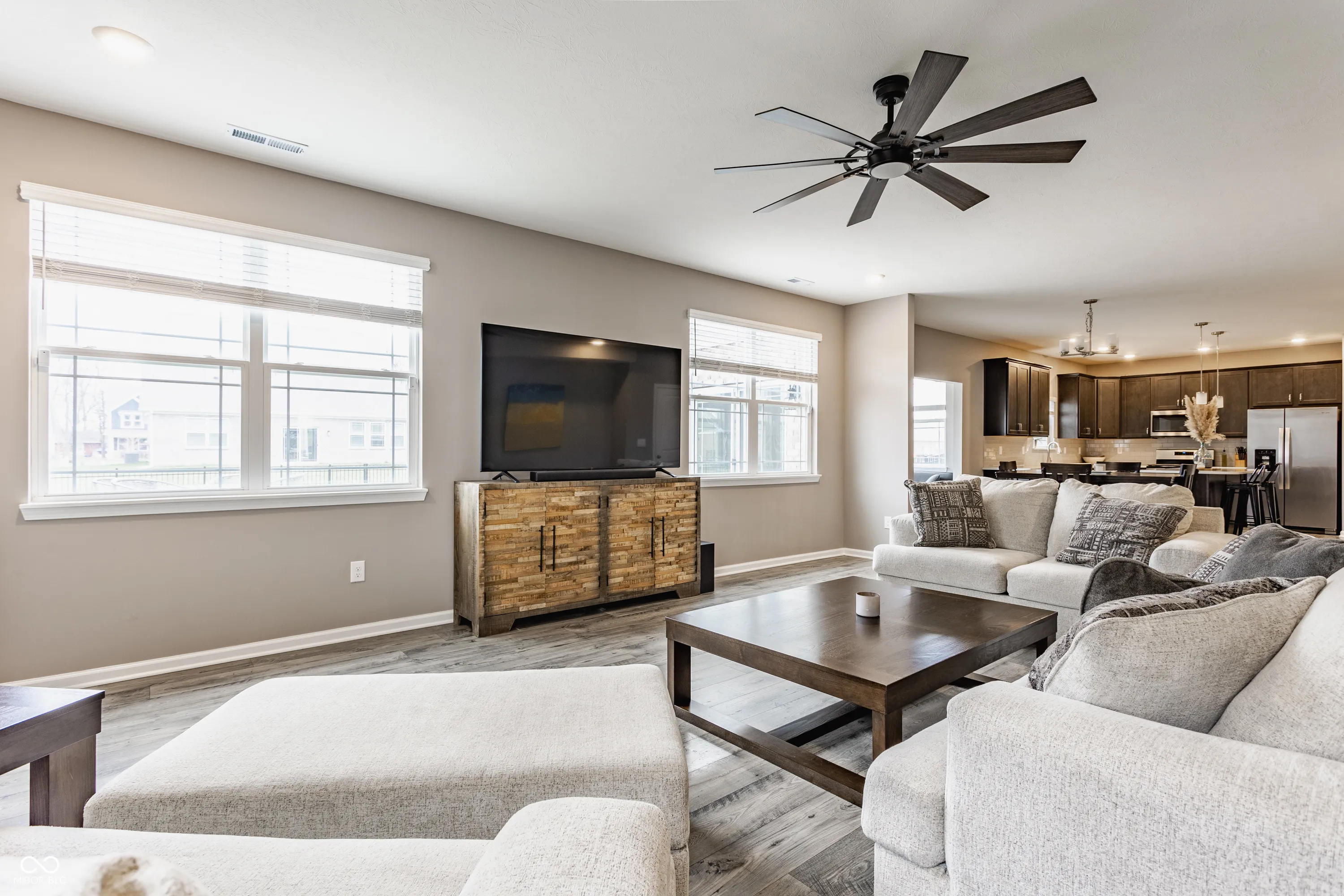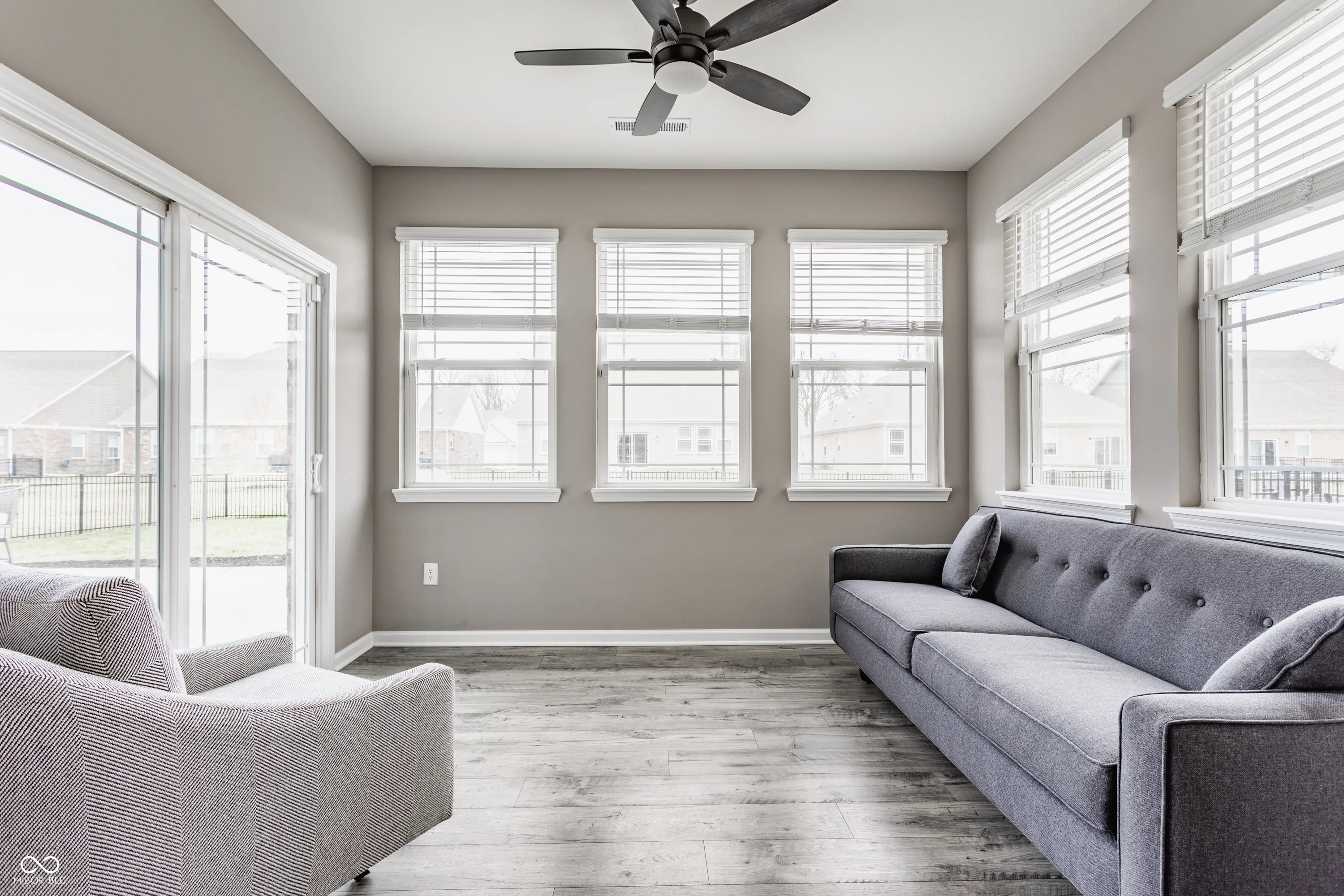 Better than new in Centennial North! Built in 2023 by D.R. Horton and nestled in the highly sought-after New Palestine school district, this spacious two-story offers the perfect blend of style, comfort, and functionality. With 4 bedrooms, 2.5 baths, a main-level den, sunroom, and a 3-car garage, there’s space for everyone to spread out and settle in. The open-concept layout is ideal for everyday living and effortless entertaining. The kitchen is the true heart of the home, featuring sleek quartz countertops, upgraded cabinetry, a center island, walk-in pantry, and seamless flow into the dining area and great room. A built-in boot bench adds a practical touch just off the garage entrance-perfect for busy households. Upstairs, retreat to the generously sized primary suite complete with double vanity, walk-in shower, and oversized walk-in closet. Every bedroom boasts its own walk-in for ample storage, and smart home features come standard for added convenience and peace of mind. Out back, enjoy the fully fenced yard and oversized patio – ideal for summer cookouts, backyard games, or simply relaxing while the kids or pets play safely. Set in Sugar Creek Township with quick access to local shopping, dining, and parks-this one checks all the boxes. Come see it in person and fall in love!