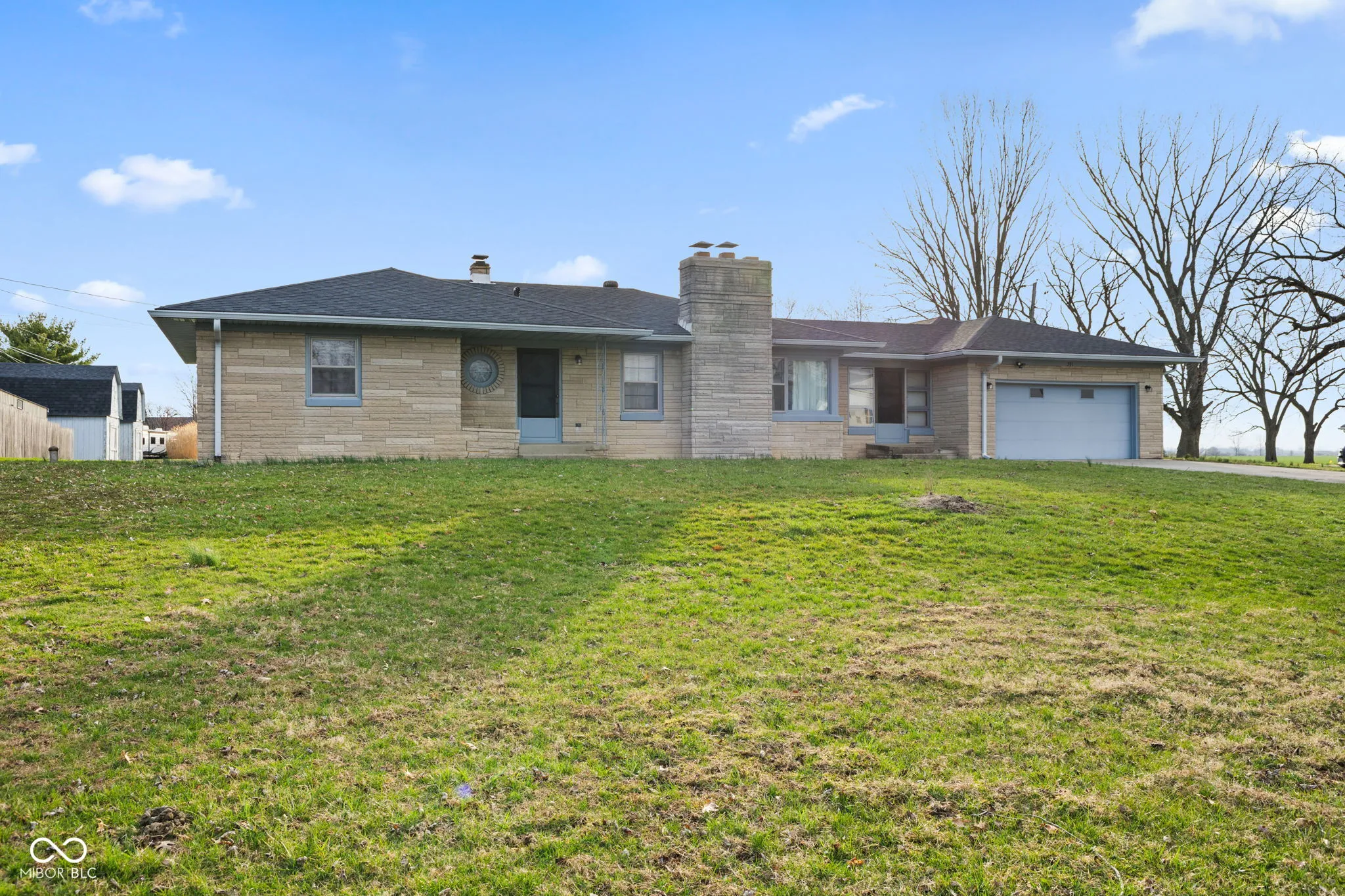 Discover this charming 3-bedroom, 1.5 bath Ranch on a corner lot with C1 commercial zoning! This well-maintained home features hardwood floors in the bedrooms, a spacious great room with a wood-burning fireplace, and a dry basement featuring a game room, second fireplace, shower and separate utility room with 2 sump pumps. The property boasts a breezeway leading to an attached 2-car garage, plus a heated 3-car detached garage with plumbing. and endless possibilities for work or storage. Recent updates include a new water heater and the home’s prime location, which makes it perfect for residential living and/or commercial use. With its large front yard and corner lot setting, this home is an excellent investment for those seeking versatility and space.