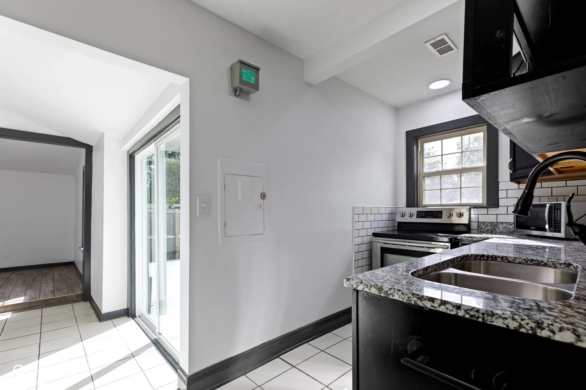 Welcome to the small town vibes of Clermont with easy access to Indianapolis, Speedway, Brownsburg and Eagle Creek Reservoir! This super cute 3 bedroom home is located on a huge lot with a privacy fenced back yard and an oversized driveway. The living/dining room just off the large foyer has a vaulted ceiling that makes the space feel very open & modern. The kitchen, while on the small side, is updated with granite counters, white subway tile backsplash and stainless steel appliances, including a dishwasher, with a very functionable layout. Bathroom vanity also has granite counters and white subway tiles. A brand new patio door leads the way to a large concrete patio, just perfect for your next cookout! Ceramic tile floors, mostly wood-look planks, throughout the home offer easy maintenance. Come check out all this affordable bungalow has to offer!