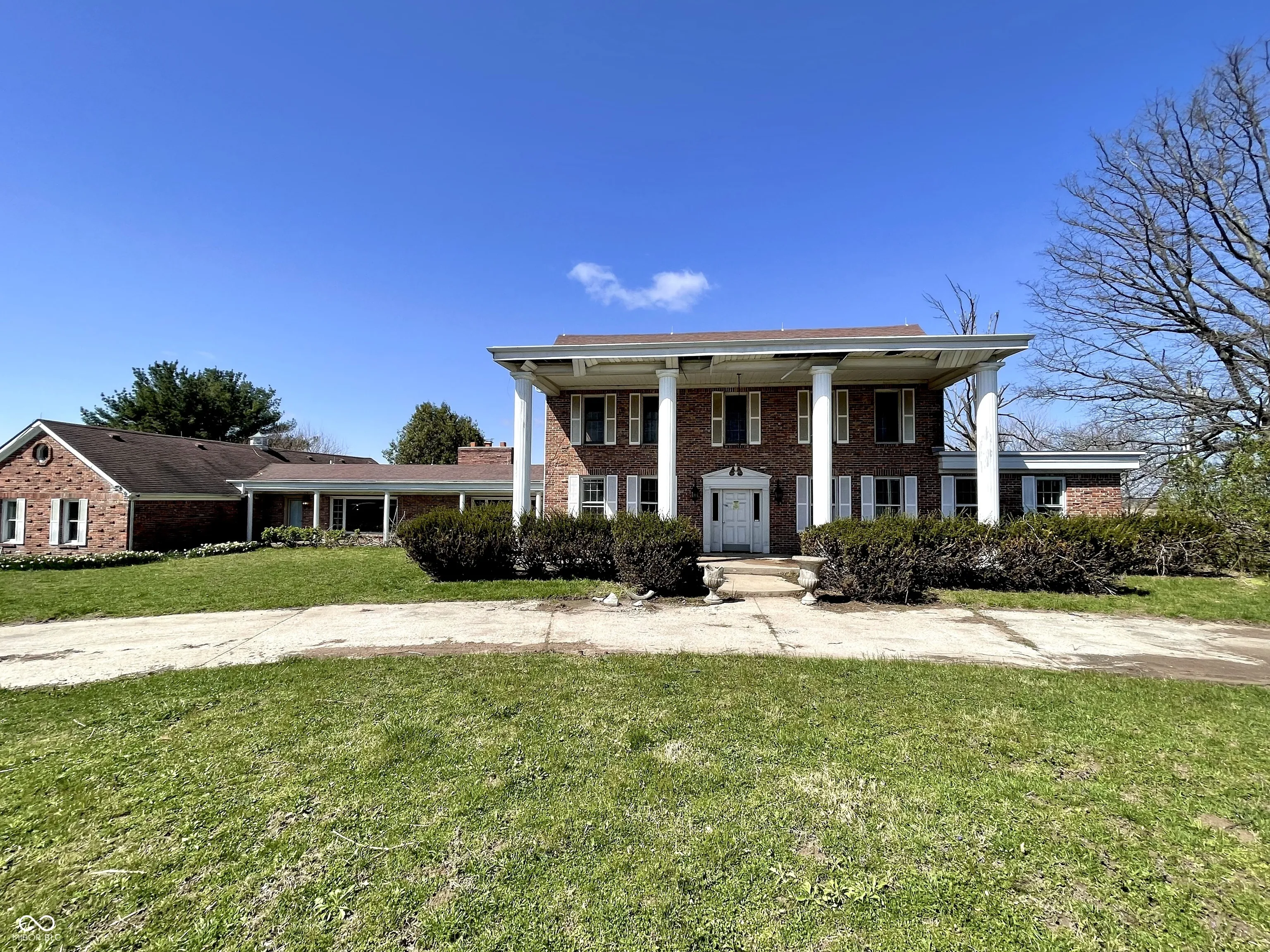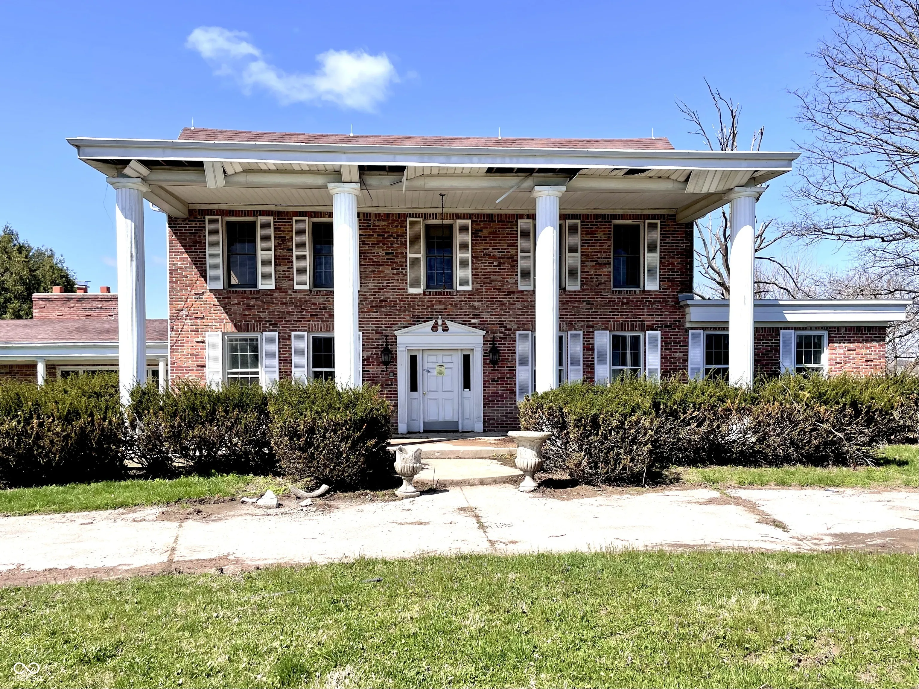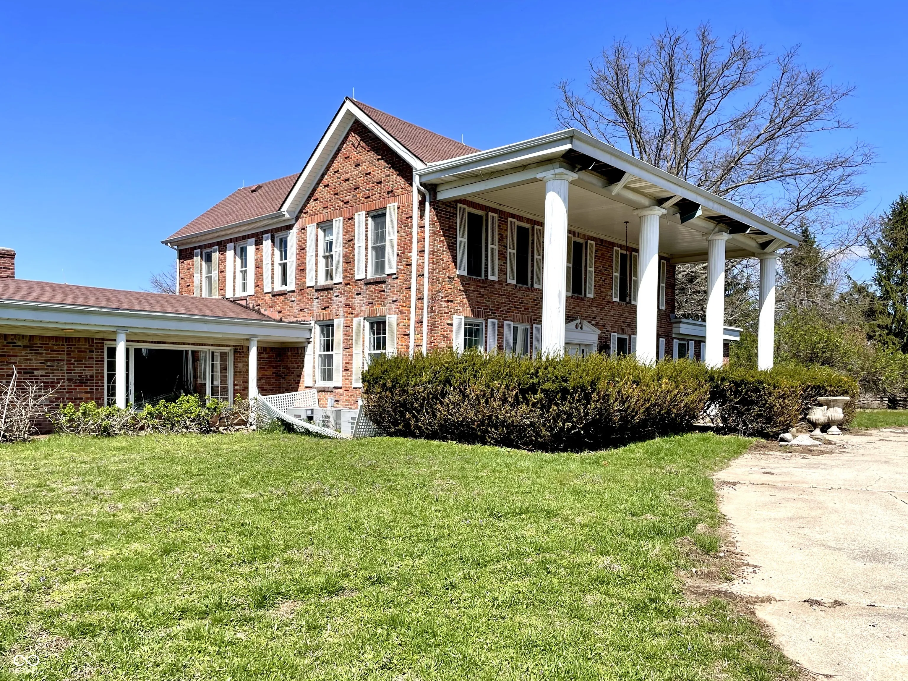 Revitalize this stunning colonial-style home and make it your own! Nestled in the peaceful rural setting of Eminence, this property offers a serene backdrop of countryside tranquility. A picturesque driveway leads to an attached 4-car garage, setting the stage for the grandeur within. Boasting 5 Bedroom/5.5 Bathrooms, this expansive residence features multiple Kitchens, versatile living areas, a spacious Basement, and a large open Patio. With endless potential awaiting you, come explore the possibilities this remarkable home has to offer!