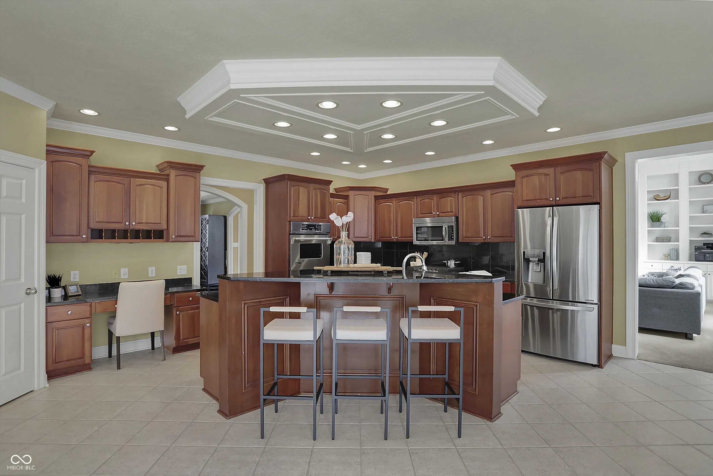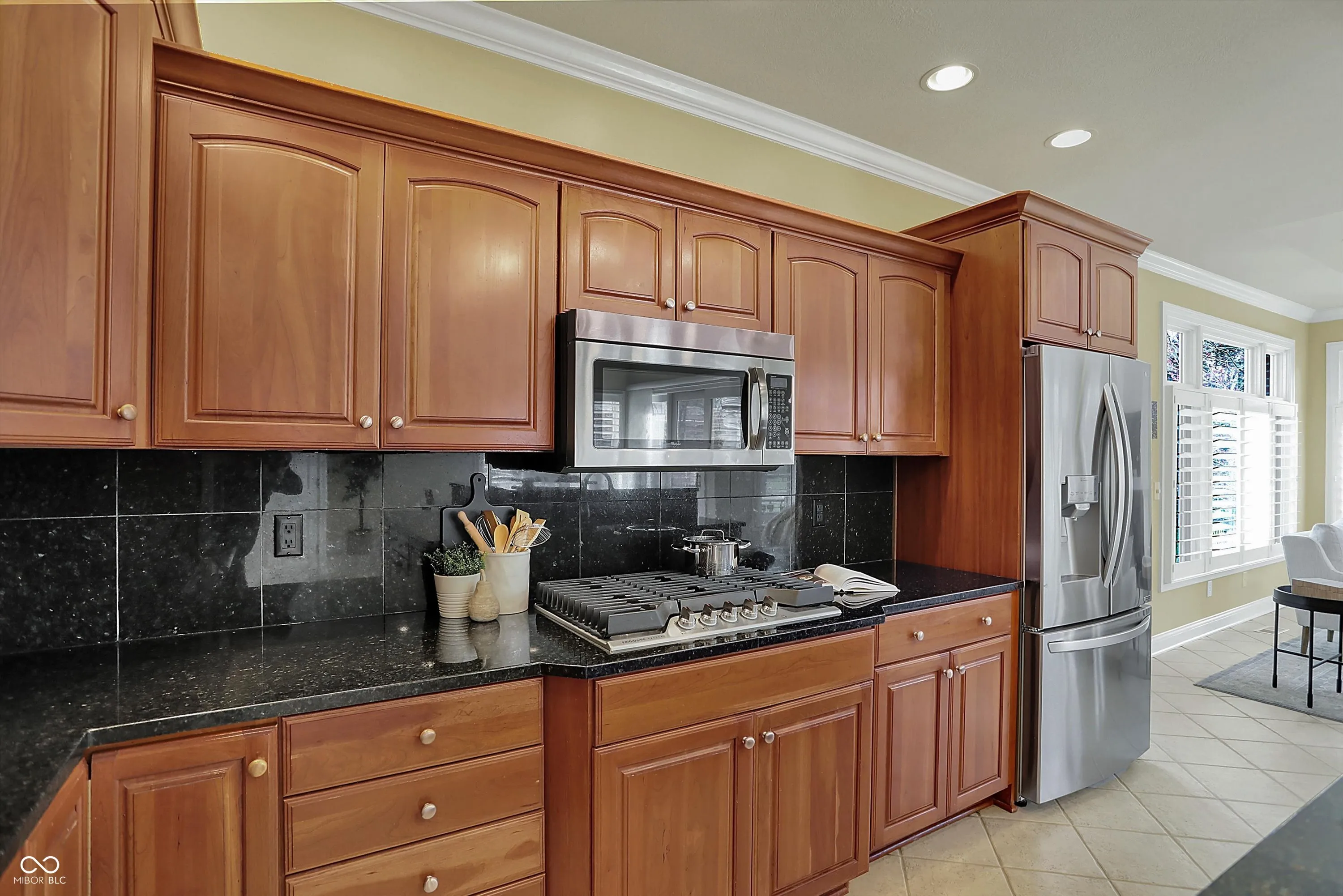 Beautiful custom-built home in west Carmel’s favorite neighborhood! You’ll fall in love with the light-filled floorplan, spacious rooms and soaring ceilings. Impressive details everywhere in this quality construction. Bright open kitchen area functions as the hub for your household with a charming sunroom, large dining nook, plenty of cabinets and oversized island. The gorgeous great room has amazing windows that overlook your inviting backyard! Host your Final Four party in the 2019 remodeled basement! This incredible space features a 124″ screen, 7.1 surround sound, huge wet bar, wow gym, 5th bedroom with full bath. Meticulous homeowners have invested in this home to make it move-in ready for you: newer windows, appliances, water heater, insulation, tech, and 2025 HVAC! Kings Mill is an impeccable community with easy access to 465, Indy, endless shopping and dining – and walking trail to Towne Meadow Elementary!