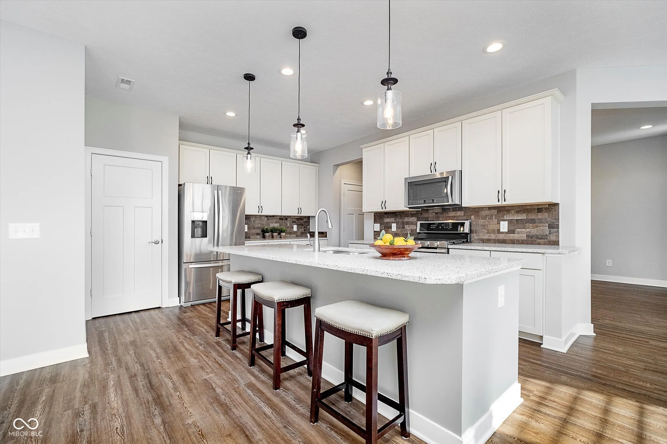 Nestled in the sought-after Maple Villas neighborhood on a larger lot, this beautifully maintained 2-bedroom offers the perfect blend of comfort & modern amenities! Featuring an inviting living area, an open-concept design, & abundant natural light, this home is ideal for both relaxation & entertaining. A den/office is just off the entryway. The stylish kitchen overlooks the Great Room and Dining areas & offers SS appliances, a gas double oven, upgraded cabinetry, pendant lighting & quartz island, making cooking a delight! A custom planning center off the back hall provides a functional and tucked-away workspace, while the vinyl plank flooring & builder upgrades throughout the home add an extra touch. Step outside from the dining area to a private covered patio with tranquil pond & lighted fountain views. The spacious primary suite features a tray ceiling, an ensuite bath complete with a walk-in closet, double sinks, & a tiled step-in shower with a bench. You’ll enjoy the lush landscape with perennials. With lawn care & exterior maintenance taken care of, you can spend more time enjoying the beauty and serenity of your surroundings. Located just minutes from shopping, dining, and the ever-popular Monon Trail and Grand Park, this home offers both convenience and a welcoming community feel. Don’t miss the opportunity to make it yours!