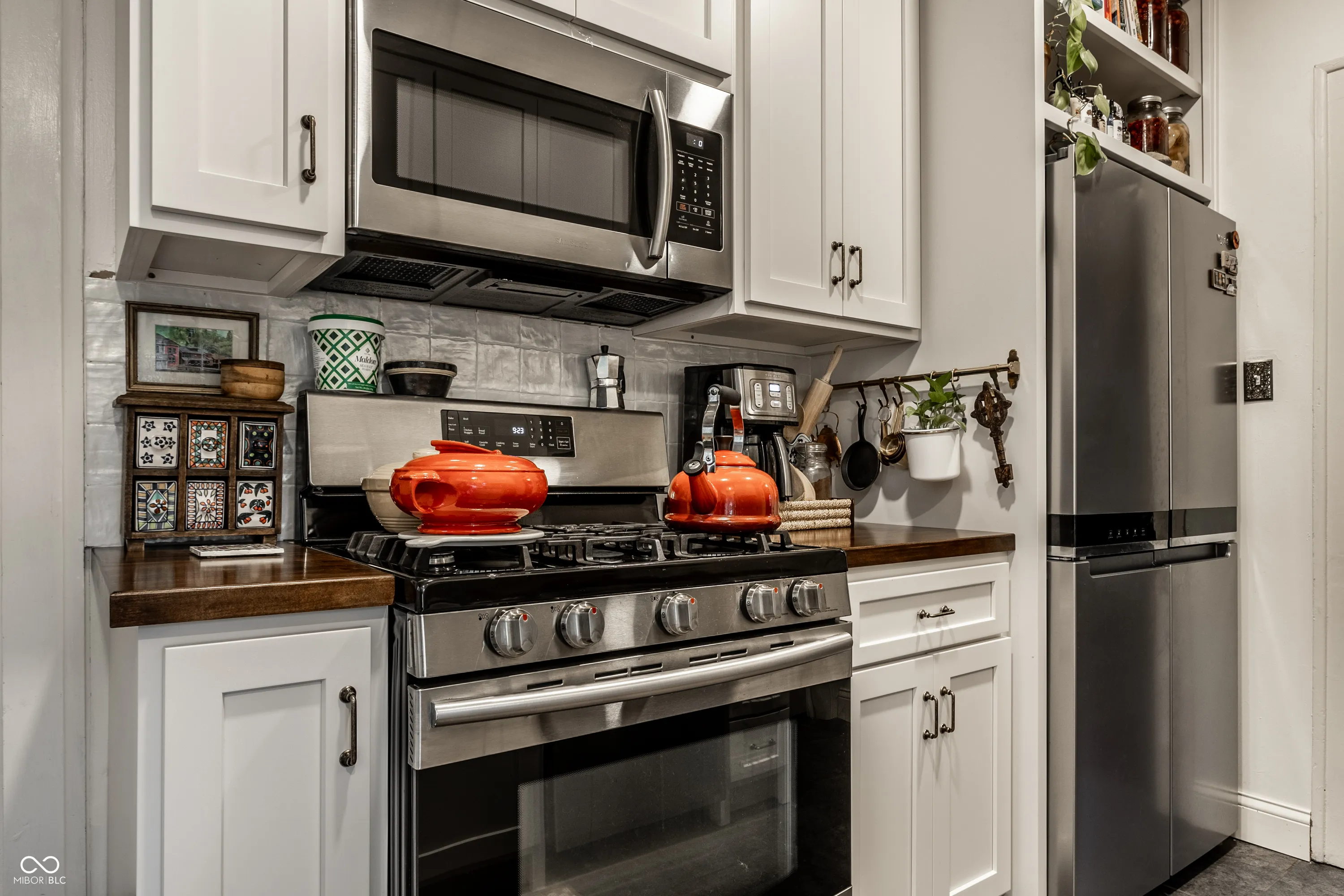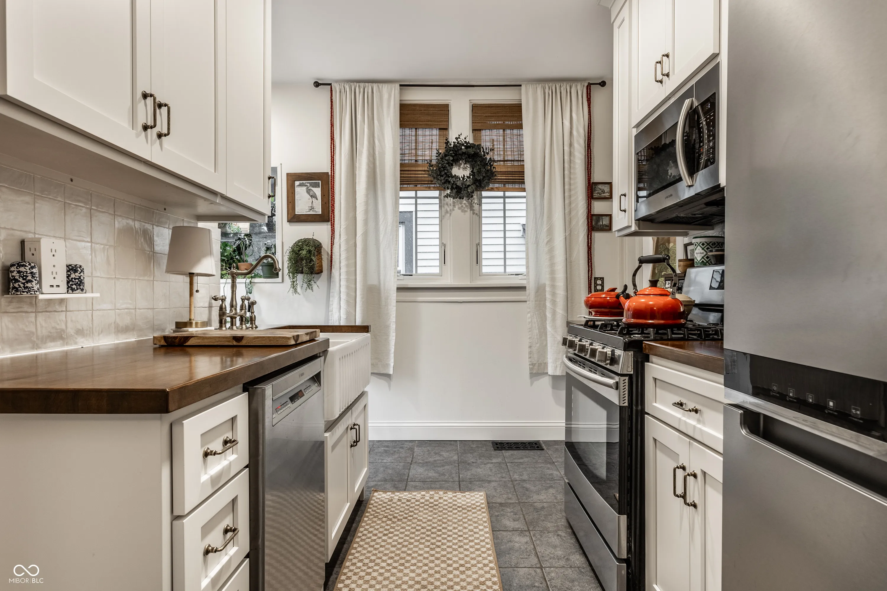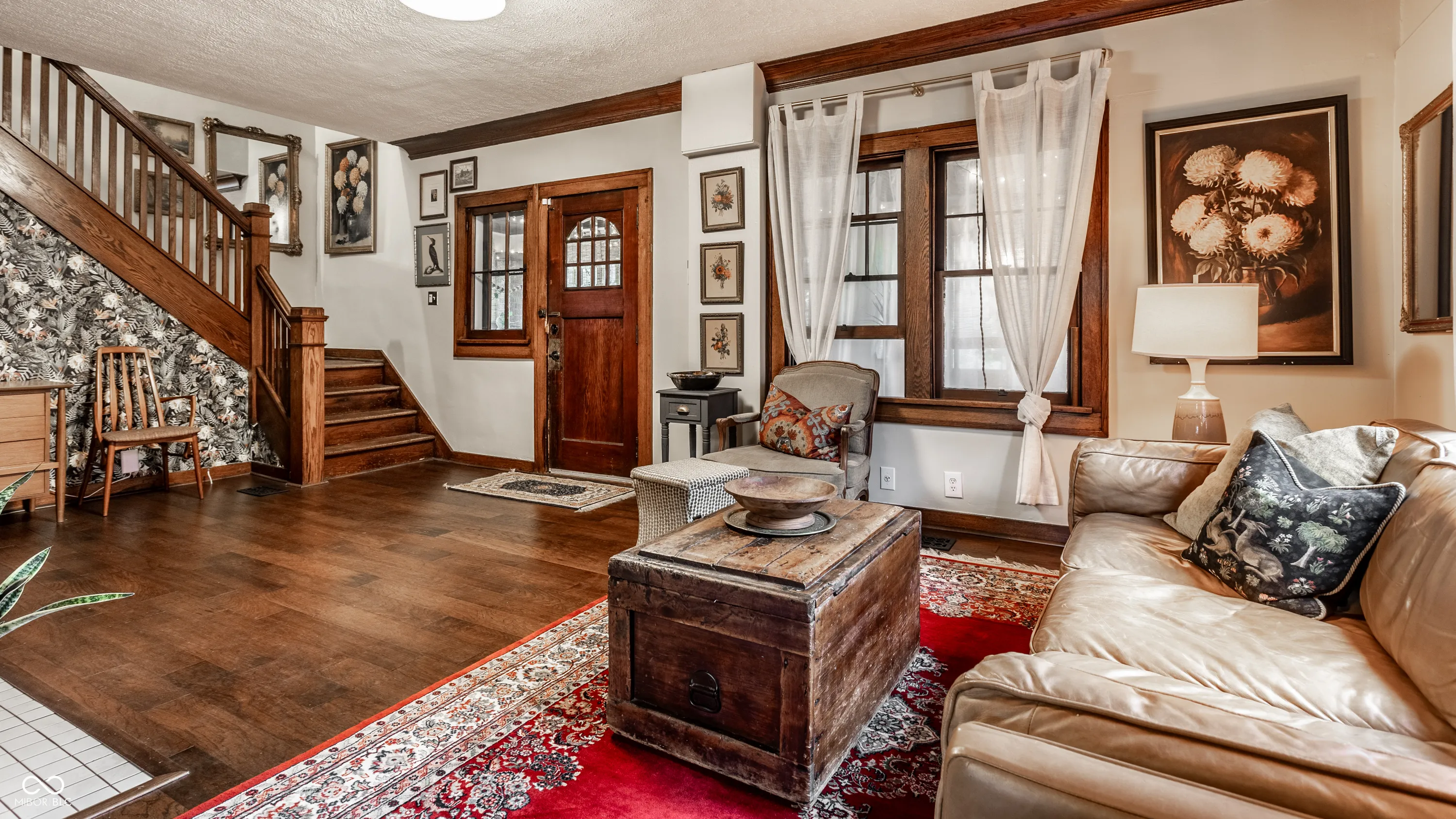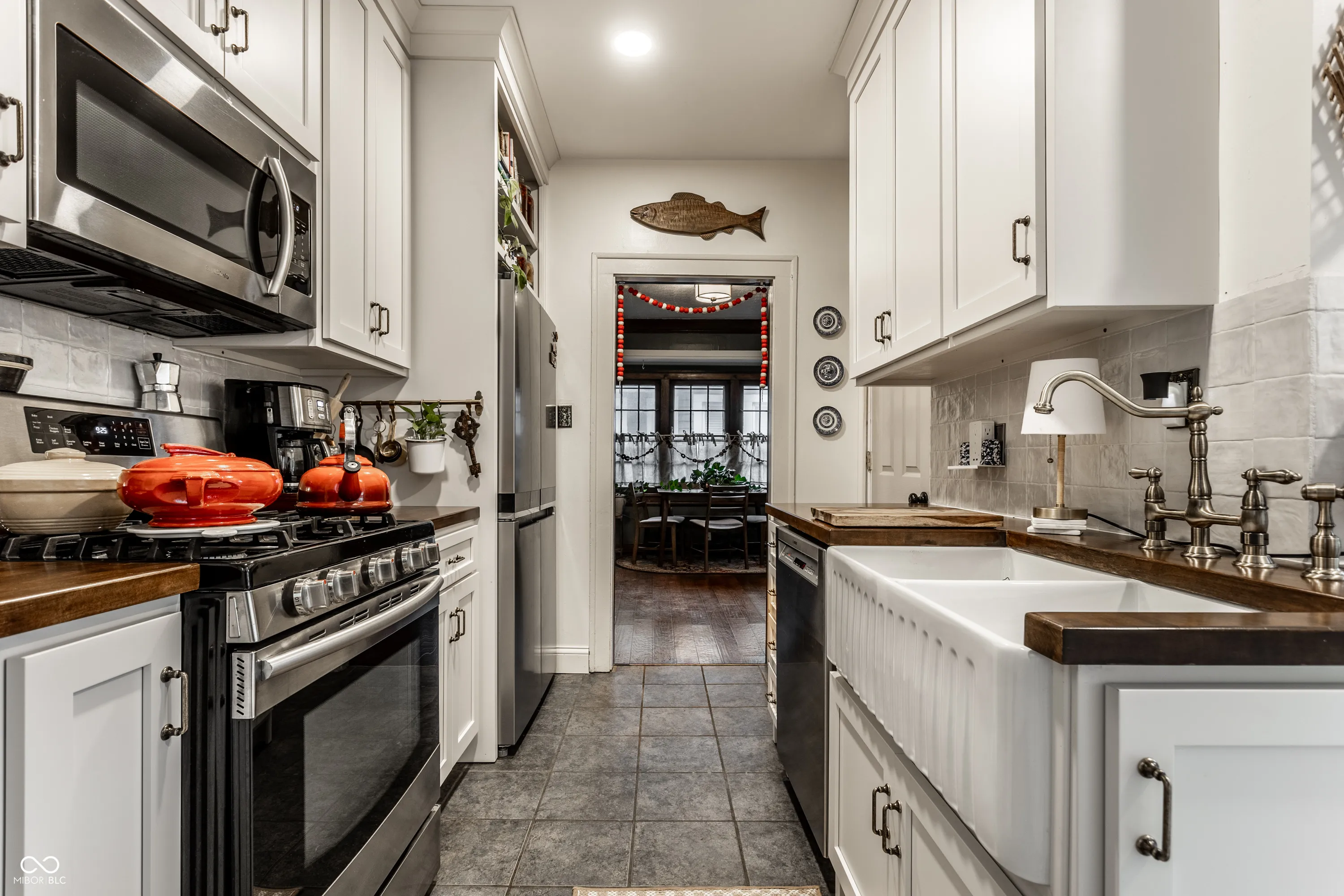 Quintessential Irvington abode on tree lined historic street. Complete with custom kitchen cabinetry, butcher block countertops, ceramic backsplash, farm sink, brass hardware and faucet, the cook can enjoy views of the freshly stamped concrete patio and fire pit through the new french doors to the fully fenced backyard. Don’t miss the sweet half bath with wainscoting details! Handsome engineered hardwoods on the main are complemented by original refinished hardwoods on the upper, plus a newly tiled shower in the primary bathroom (which includes a clawfoot tub). New windows in primary and kitchen installed in May 2024, new water heater installed December 2023. New paint and wallpaper throughout, and a delightful covered front patio just perfect for those transitional seasons. The list goes on, and all walkable to the best of Irvington. Come see!