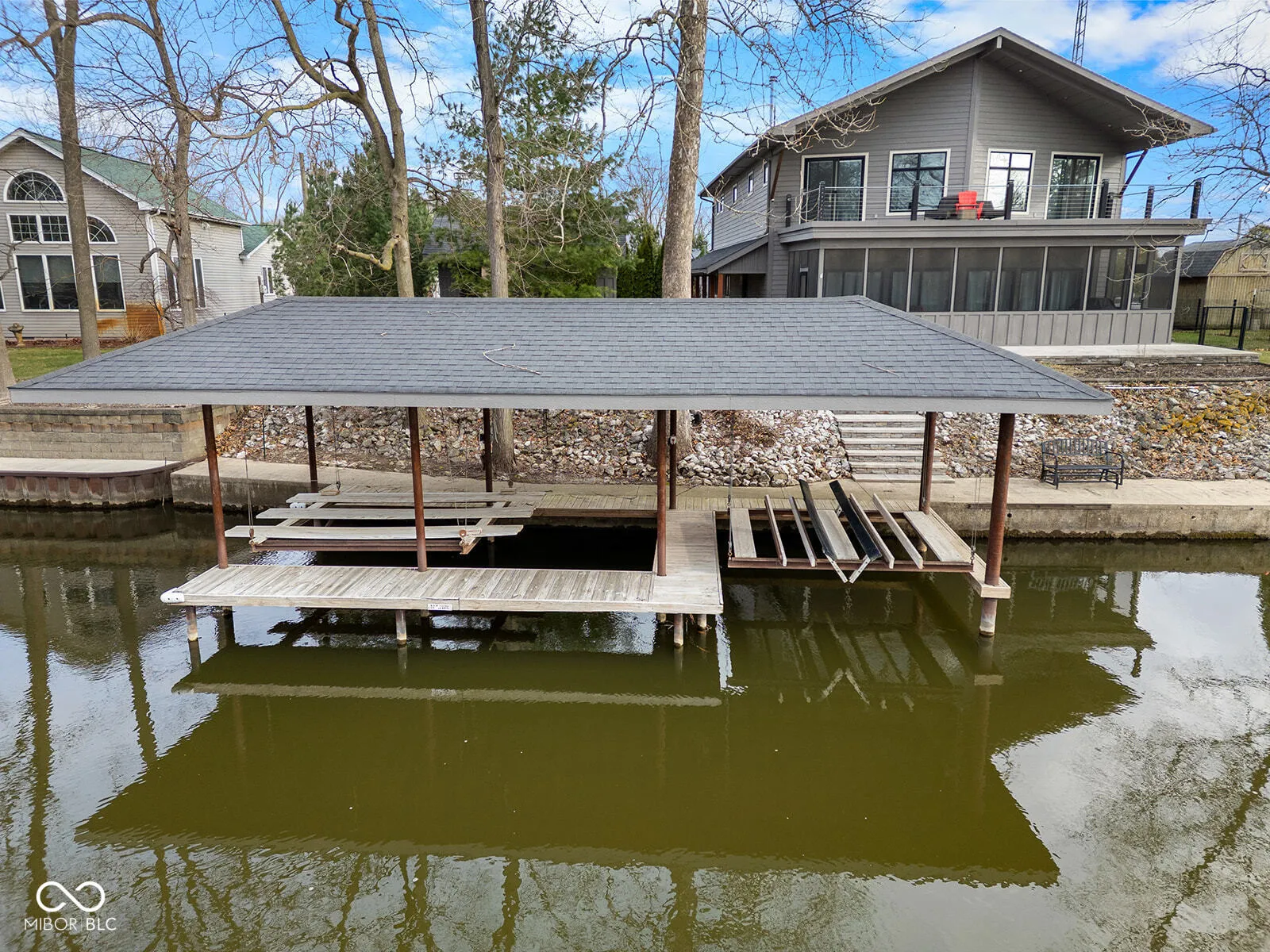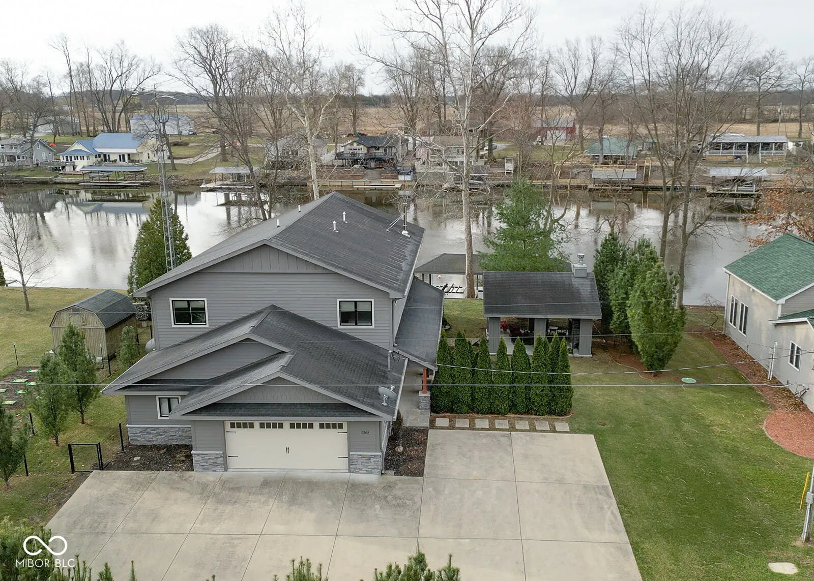 Welcome to your dream waterfront retreat on Lake Shafer in Monticello! This stunning home features 4 spacious upstairs bedrooms with soaring ceilings, including two en suite rooms with sliding doors to a deck overlooking the lake. The first floor boasts beamed ceilings, abundant natural light, a cozy fireplace, a bright kitchen with stainless steel appliances, and hardwood floors throughout. Enjoy generous outdoor living spaces, including a lakeside screened porch, a second-floor balcony, and a sprawling 16×19 covered patio with a stone fireplace-perfect for entertaining. A covered boat lift, double wave runner lifts, and a tandem garage provide ample storage for all your lake toys. Don’t miss this incredible opportunity-schedule your showing today!