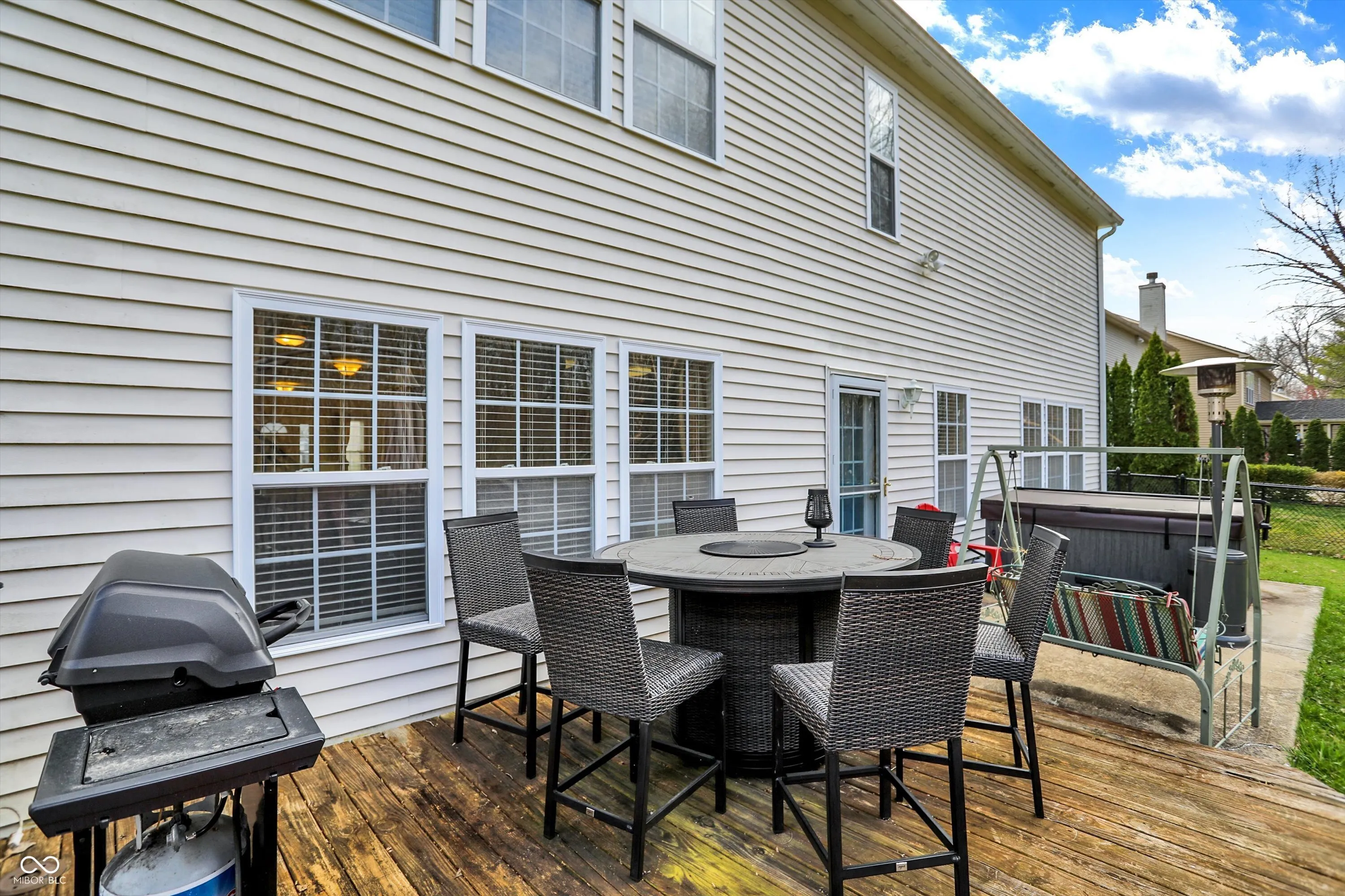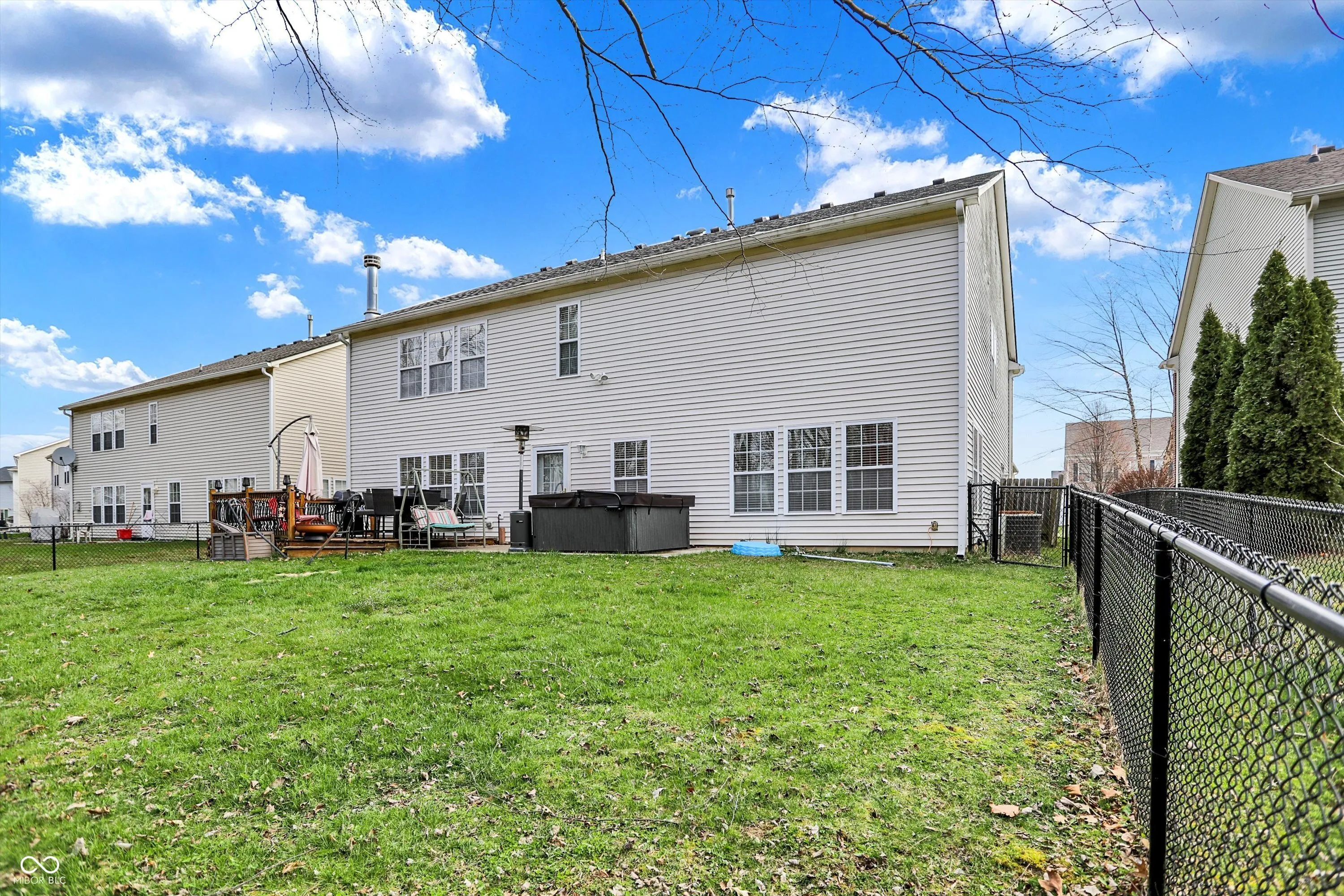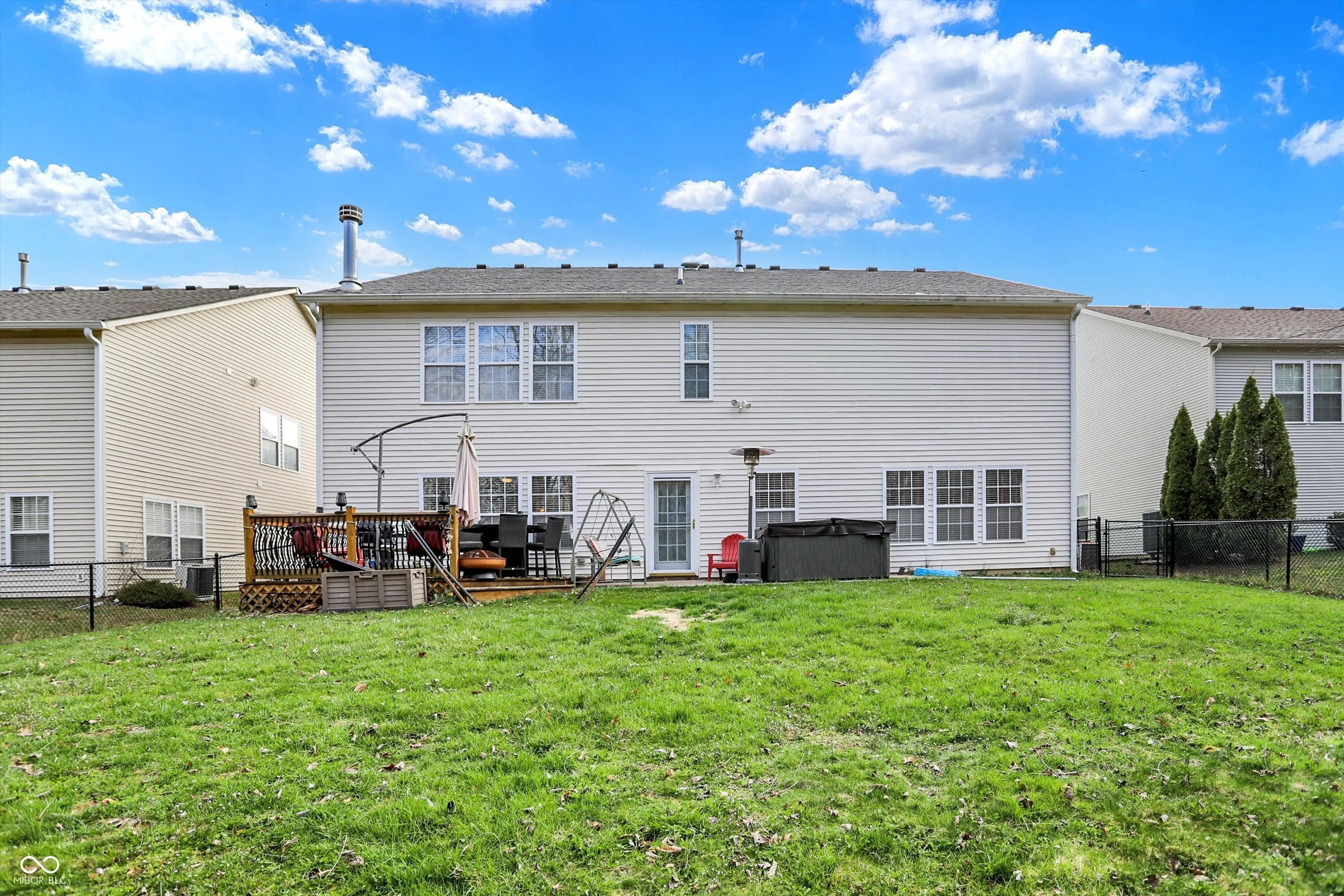 Welcome to this spacious 4,000+ square foot home, offering 5 bedrooms and 4.5 bathrooms in popular Homecoming at University Park in Greenwood. This beautiful property has been thoughtfully updated to offer modern living with plenty of space for your family. The main floor features a private bedroom with an ensuite bath, perfect for guests or multi-generational living. The expansive living areas provide ample room for entertaining, while the open layout ensures easy flow between spaces. Significant upgrades in 2022 include a new furnace and additional ducting with baffles to enhance the upstairs comfort. Two separate thermostats control the upper and lower levels independently, allowing for personalized temperature settings throughout the year. Other recent updates include a new roof in 2023, along with new carpeting and luxury vinyl plank flooring throughout the home. You’ll also enjoy the convenience of new toilets, storm doors, a new garbage disposal, and a brand-new water heater and water softener. The kitchen has been upgraded with a new refrigerator, stove, and dishwasher, while a sleek gas fireplace insert adds warmth and ambiance to the living room. Step outside into your fully fenced backyard and relax in the hot tub, purchased in 2022, or host gatherings in this spacious, wood-lined private retreat. The community provides a wealth of amenities, including a large playground, clubhouse, basketball court, tennis court, and walking trails. The nearby nature park offers a peaceful escape, while the community pool provides the perfect spot for relaxation on warm days.