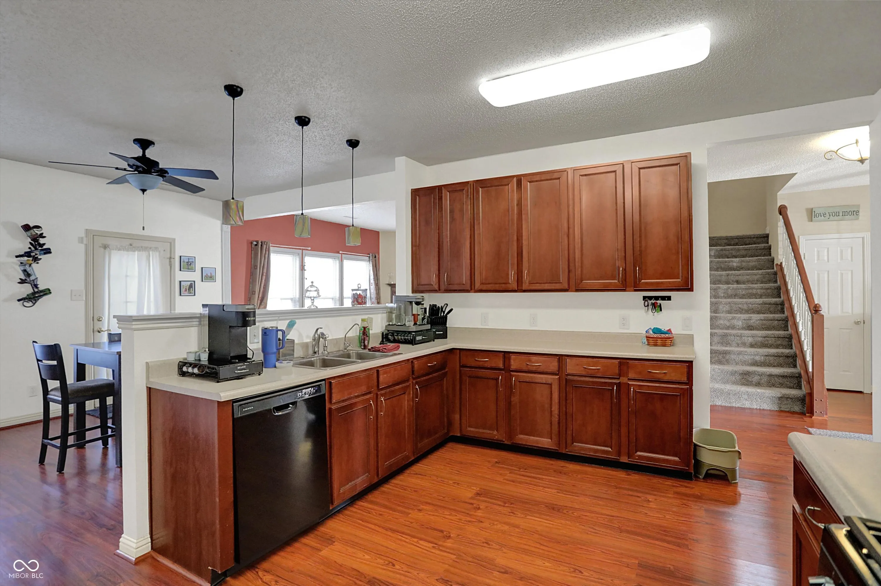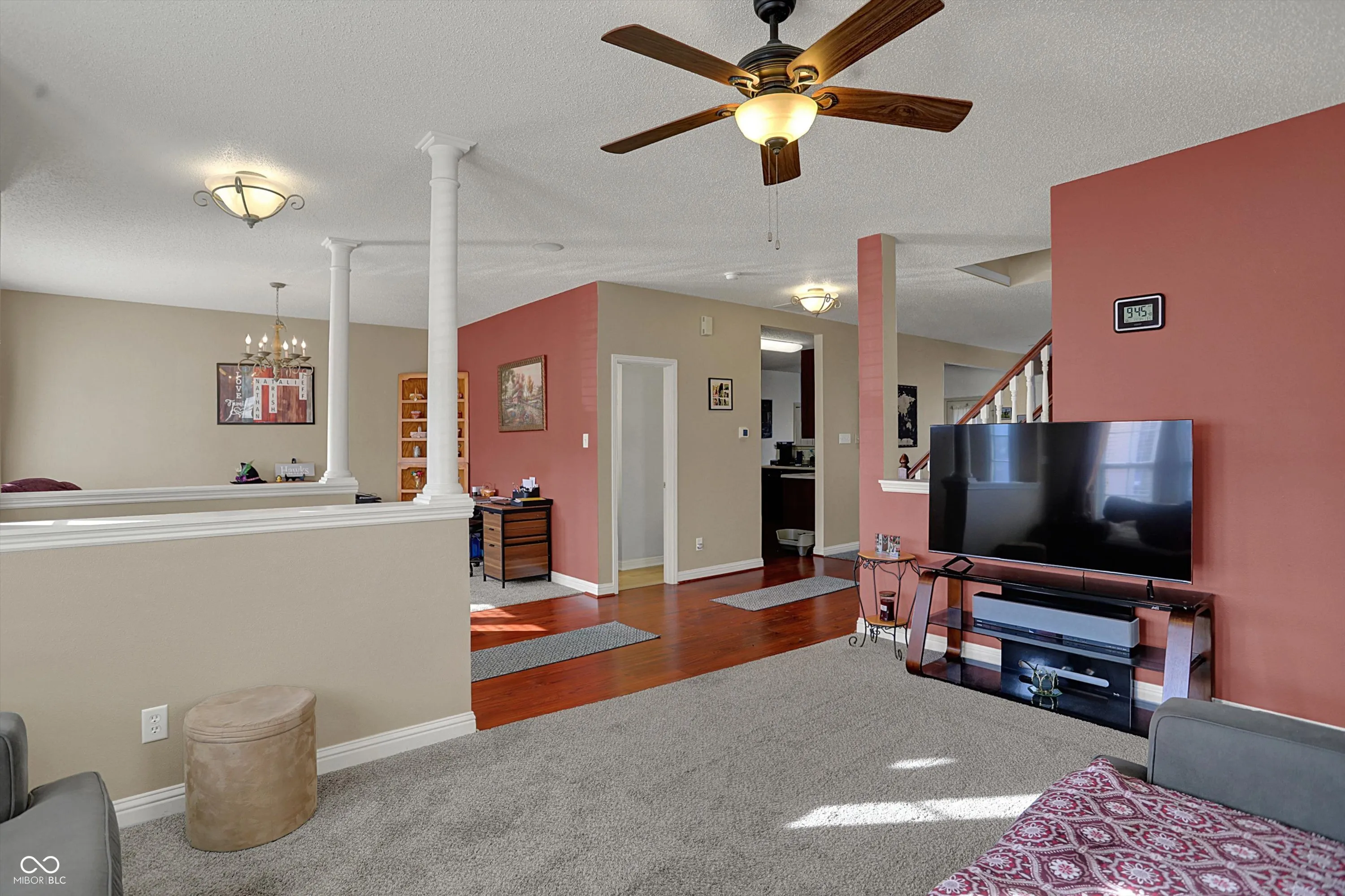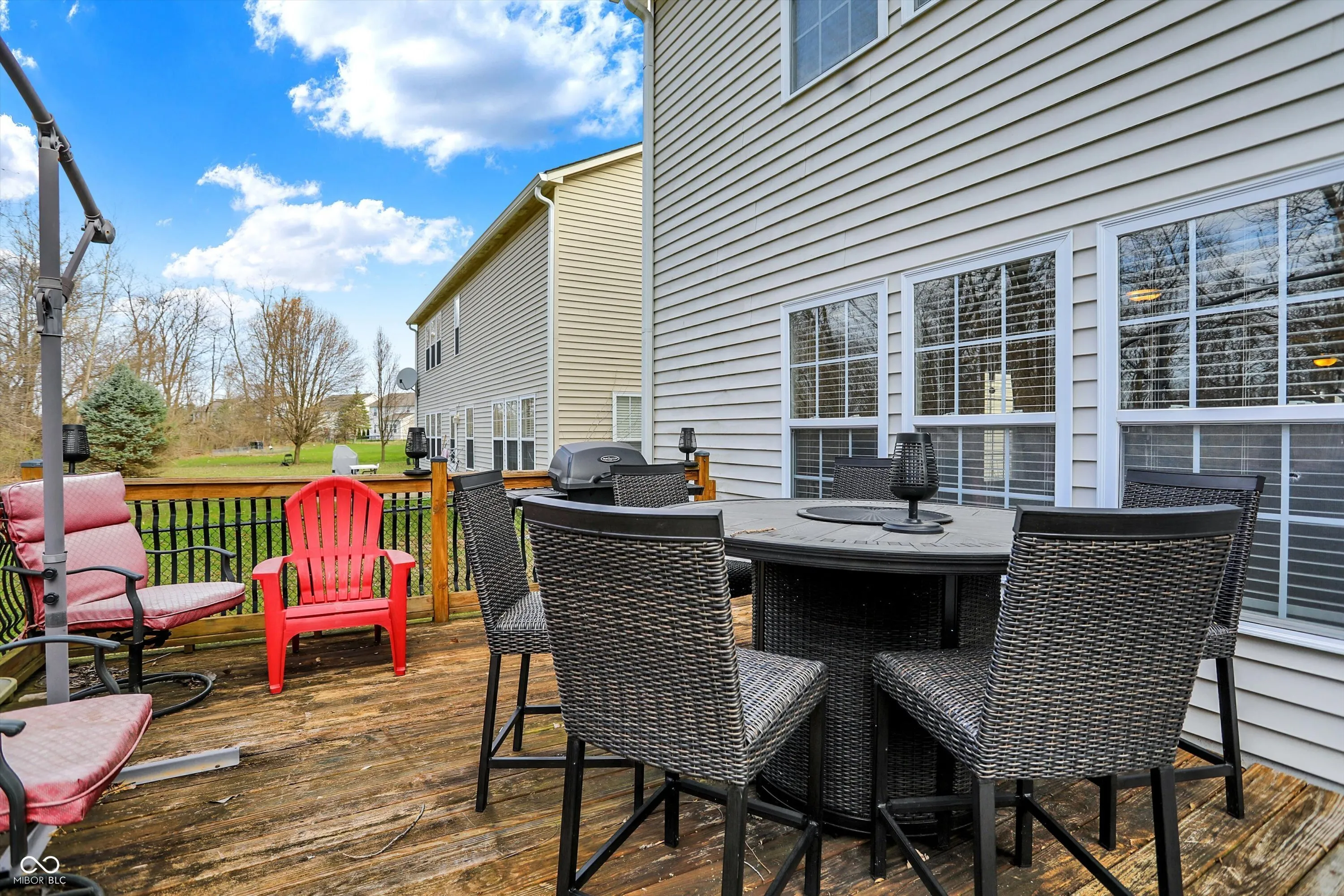 Welcome to this spacious 4,000+ square foot home, offering 5 bedrooms and 4.5 bathrooms in popular Homecoming at University Park in Greenwood. This beautiful property has been thoughtfully updated to offer modern living with plenty of space for your family. The main floor features a private bedroom with an ensuite bath, perfect for guests or multi-generational living. The expansive living areas provide ample room for entertaining, while the open layout ensures easy flow between spaces. Significant upgrades in 2022 include a new furnace and additional ducting with baffles to enhance the upstairs comfort. Two separate thermostats control the upper and lower levels independently, allowing for personalized temperature settings throughout the year. Other recent updates include a new roof in 2023, along with new carpeting and luxury vinyl plank flooring throughout the home. You’ll also enjoy the convenience of new toilets, storm doors, a new garbage disposal, and a brand-new water heater and water softener. The kitchen has been upgraded with a new refrigerator, stove, and dishwasher, while a sleek gas fireplace insert adds warmth and ambiance to the living room. Step outside into your fully fenced backyard and relax in the hot tub, purchased in 2022, or host gatherings in this spacious, wood-lined private retreat. The community provides a wealth of amenities, including a large playground, clubhouse, basketball court, tennis court, and walking trails. The nearby nature park offers a peaceful escape, while the community pool provides the perfect spot for relaxation on warm days.