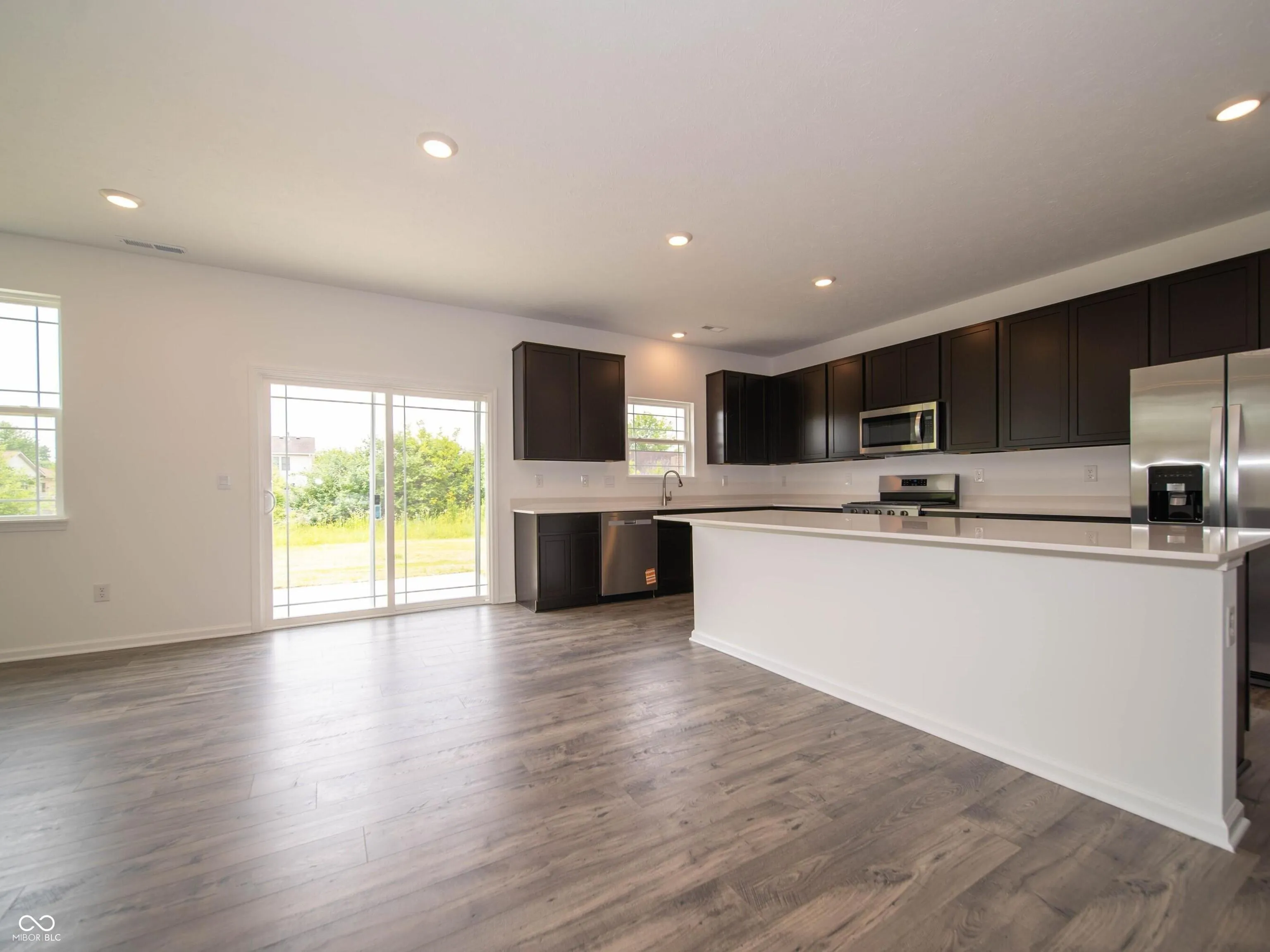 D.R. Horton, America’s Builder, proudly presents the Dayton, in the scenic Saddlebrook Farms community. This impressive 3,388-square-foot home boasts 5 spacious bedrooms and an open, inviting layout perfect for modern living. The main level features an expansive great room, casual dining area, and a well-designed kitchen. The kitchen is a standout, equipped with a large center island, ample countertop and cabinet space, and a generous walk-in pantry with easy access to the dining area. The dark cabinetry and quartz countertops throughout the home add a touch of elegance and sophistication. For added flexibility, the main level includes a versatile flex room, ideal for use as a home office, kids’ playroom, or whatever suits your lifestyle. The oversized bedroom on the main level, complete with an ensuite bathroom, is perfect for guests or multi-generational living. Upstairs, the primary bedroom suite offers a serene retreat, featuring a spacious walk-in closet and a luxurious ensuite bath with a dual-sink vanity, a deluxe shower, linen storage, and a private water closet. A sizable loft overlooks the space, creating a great area for relaxation or entertainment. The secondary bedrooms are generously sized, with ample closet space, while the hall bath includes a dual-sink vanity and private commode and shower areas. Convenience is key with the laundry room located on the upper level for easy access. Every D.R. Horton home is equipped with America’s Smart Home Technology, an industry-leading suite of smart home products that keeps you connected and in control, ensuring peace of mind and convenience for your family. The Dayton is an exceptional home offering both grandeur and functionality, ideal for families looking for space, style, and modern living. Take some time out to enjoy the community walking trails, playground, green space and the pond with a serene fountain.
