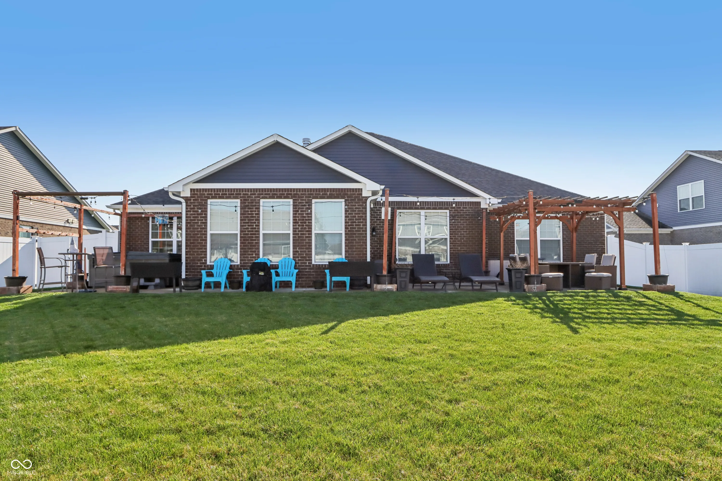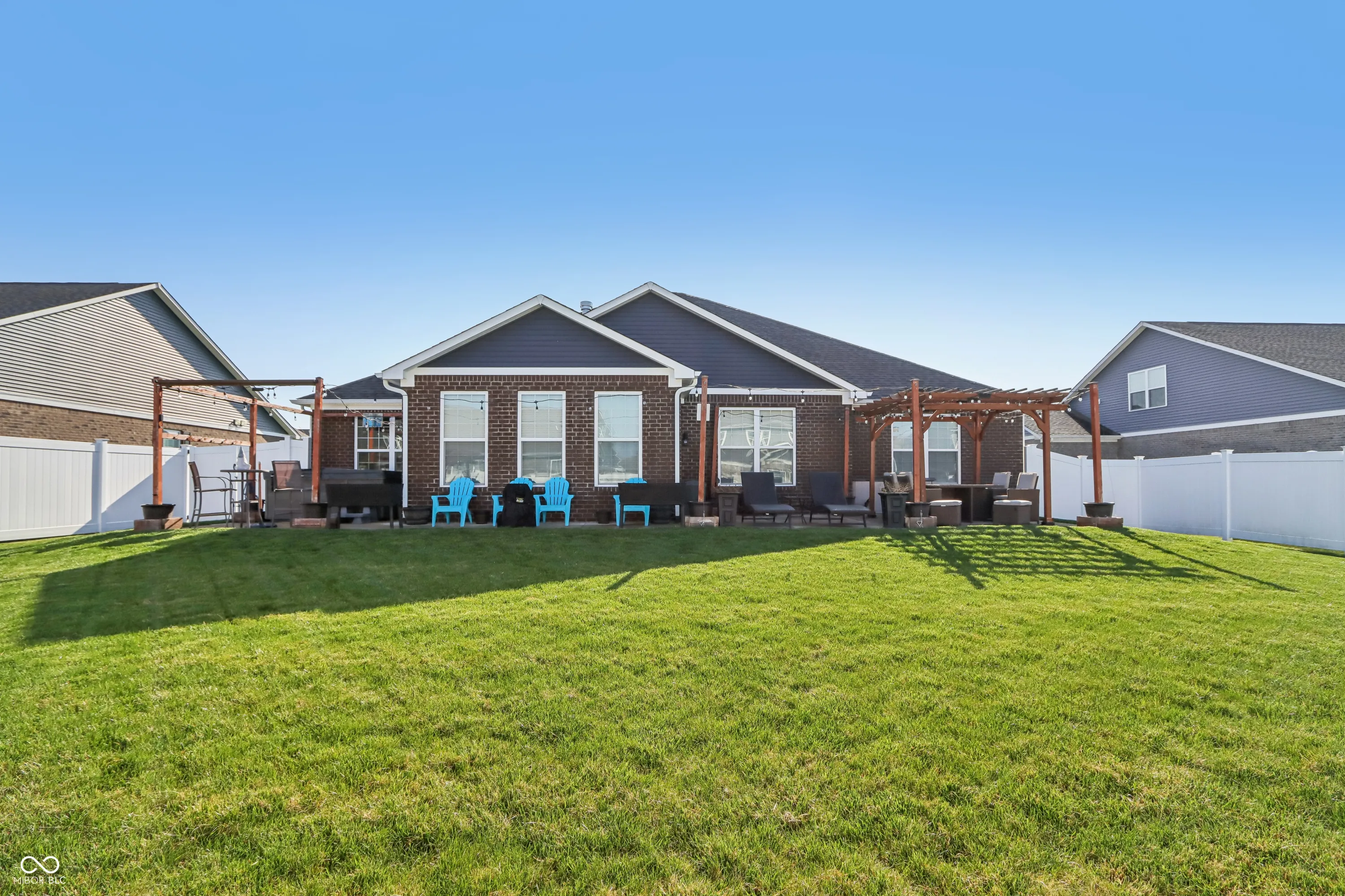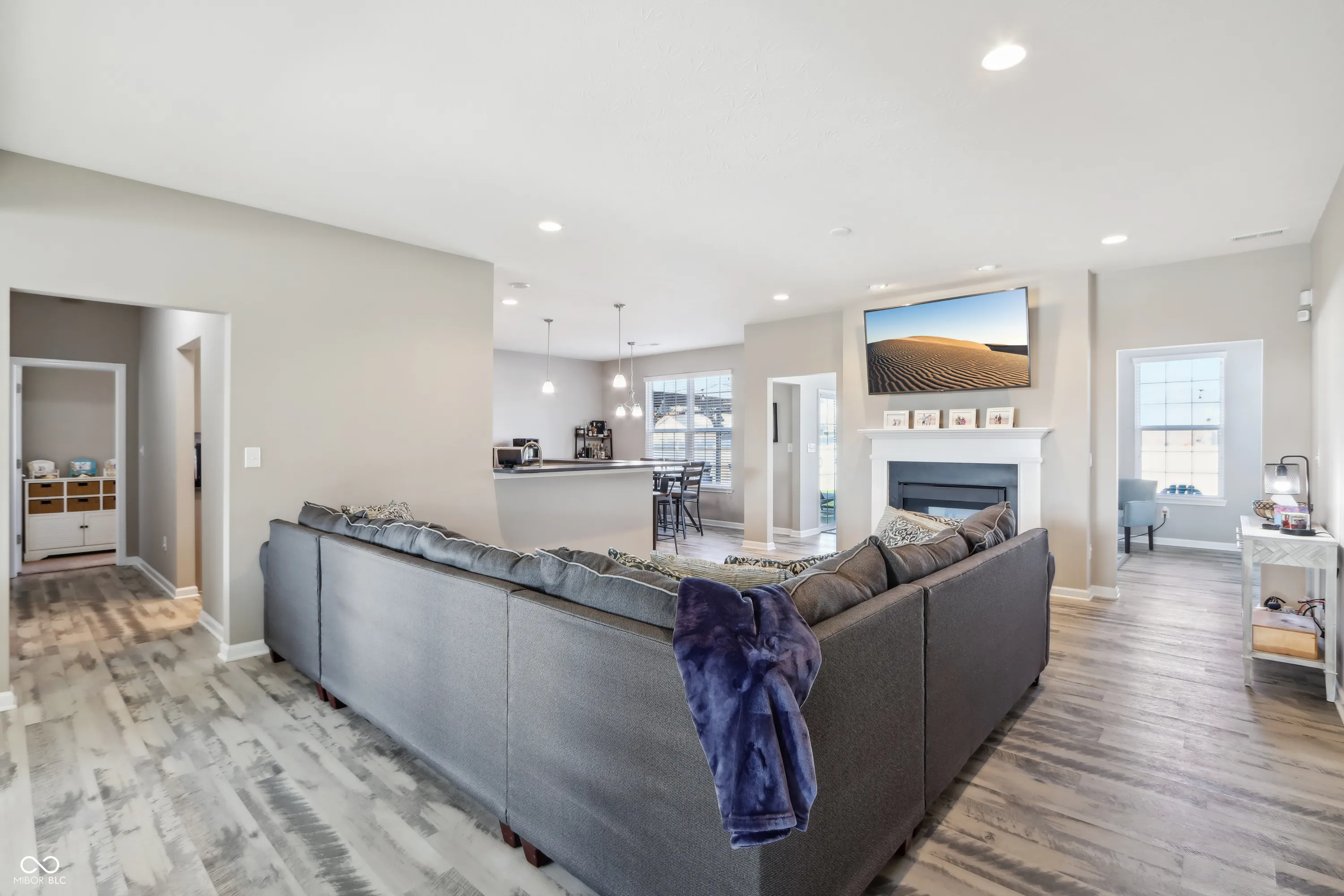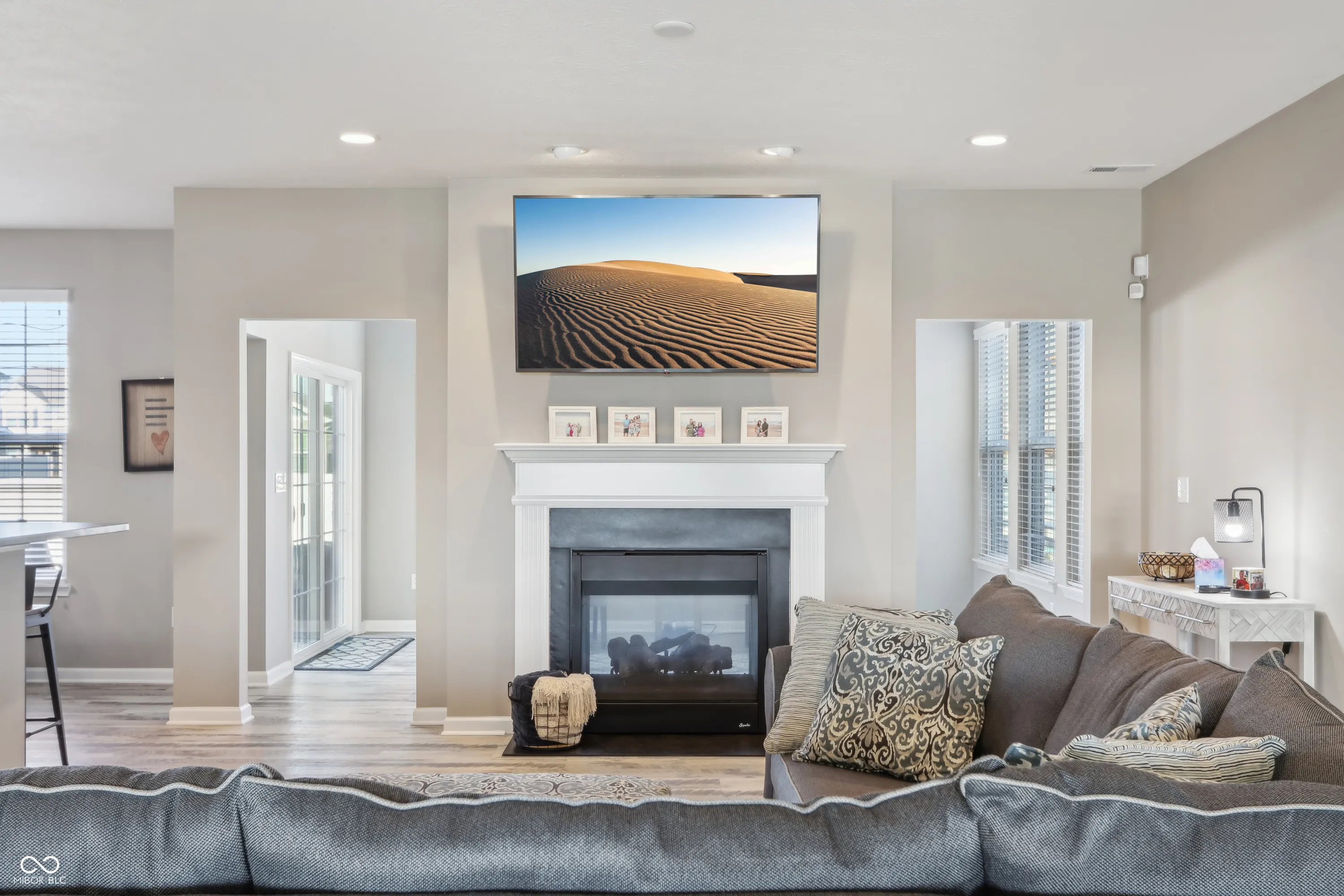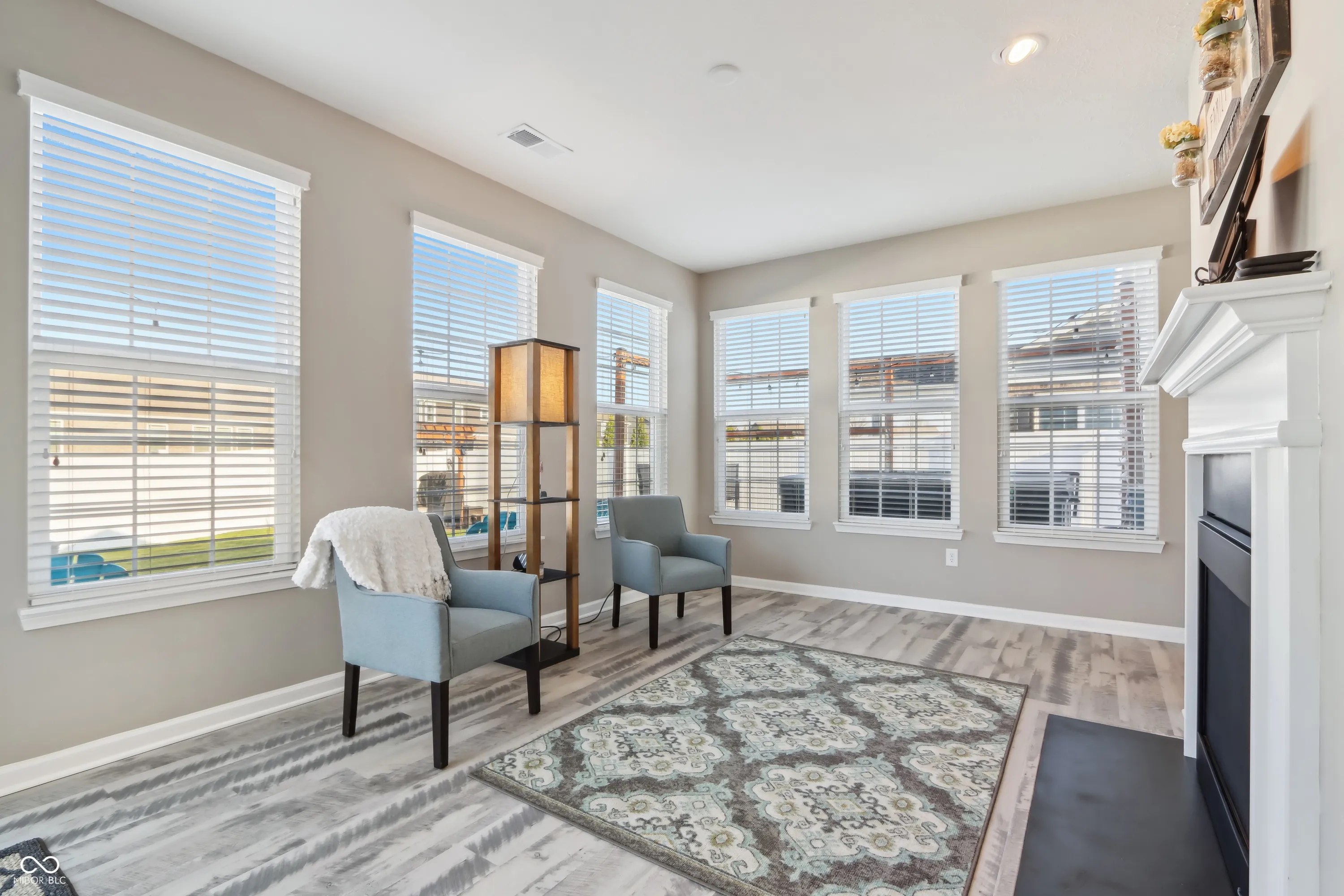 Step into a home that checks all the boxes! This spacious, well-designed one-owner residence offers a smart split-bedroom floor plan with 3 bedrooms, 2 full baths, a private office, and a bright sunroom you’ll never want to leave. The primary suite is a true retreat with a luxurious walk-in shower and an oversized closet that keeps everything organized. Love natural light? Soak it up through upgraded 6-foot windows adorned with custom Zingas blinds, casting a warm glow across the open-concept living area. The double-sided fireplace shared between the great room and sunroom adds cozy charm and a stunning focal point, perfect for entertaining or relaxing. Out back, you’ll find a fully enclosed vinyl privacy fence, a spacious patio for gatherings, and an additional paver patio tucked into the corner for quiet moments or evening firepits. Inside, enjoy low-maintenance LVP flooring throughout the main living areas and 9-foot ceilings that enhance the sense of space. The garage includes built-in shelving that stays, and all bedrooms, the great room, and sunroom are prewired for ceiling fans or ceiling lights. Plus, the buried downspouts help direct water away from the home, just another thoughtful touch in this well-maintained gem. This home is move-in ready and made for living well. Garage features Aladdin Connect wifi garage door openers. Agent Owned