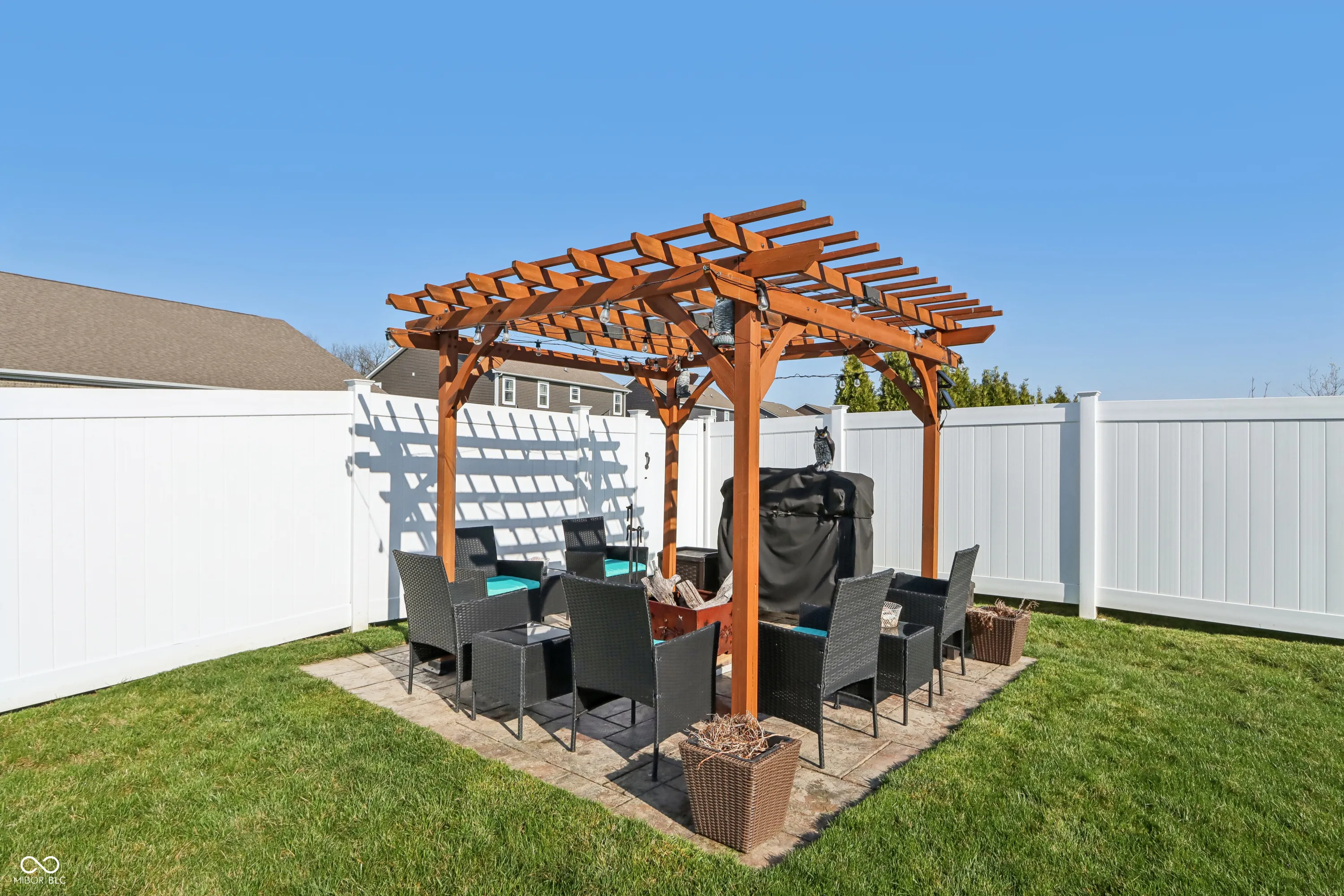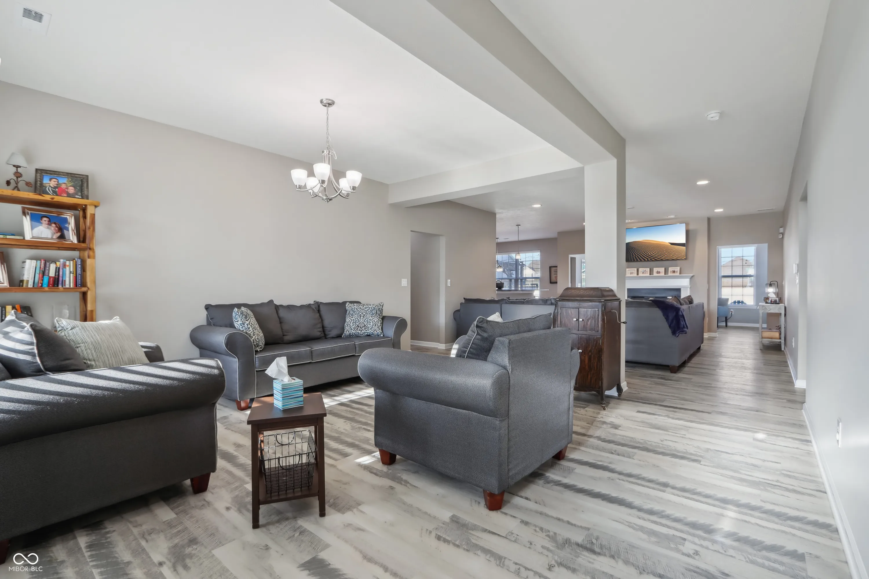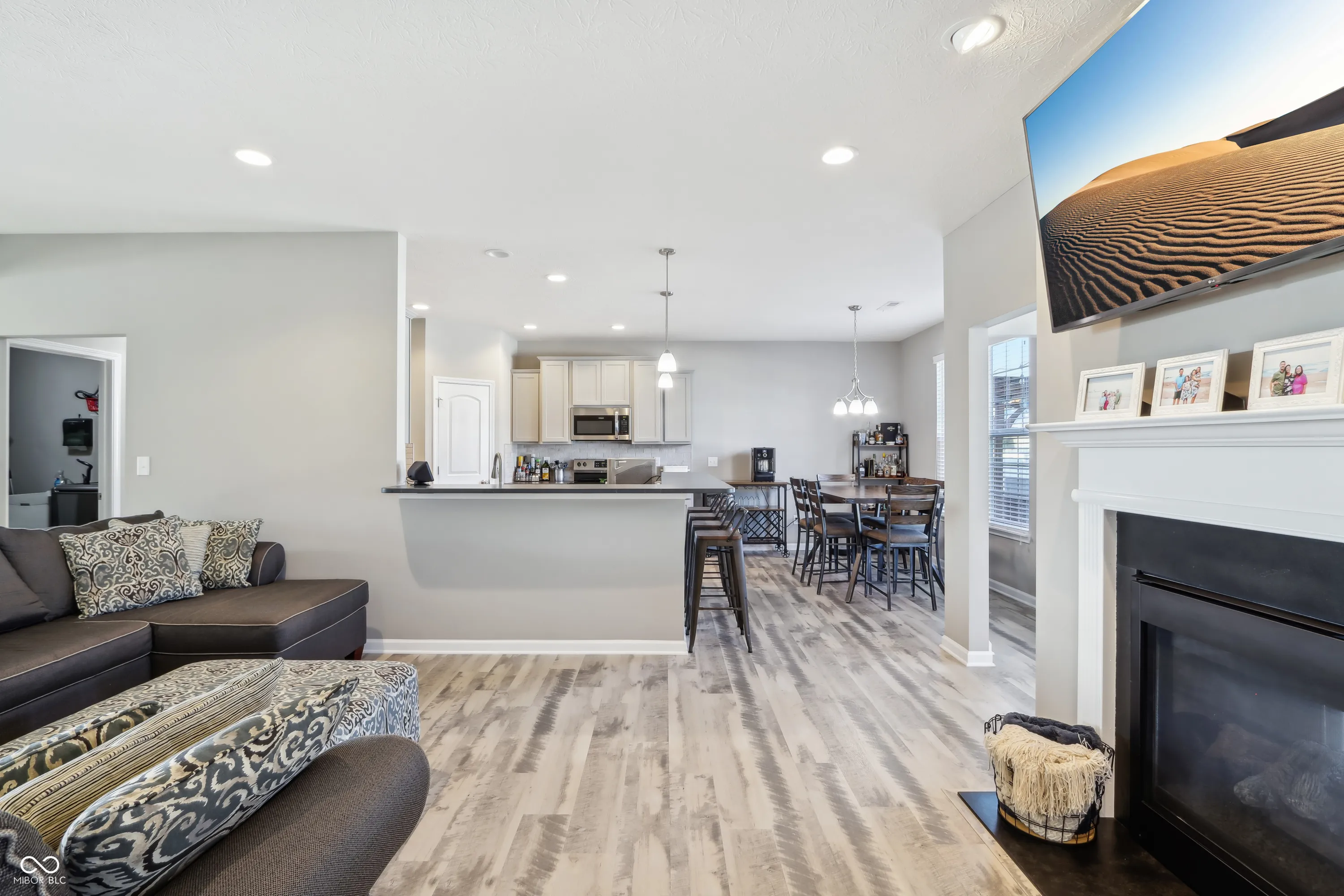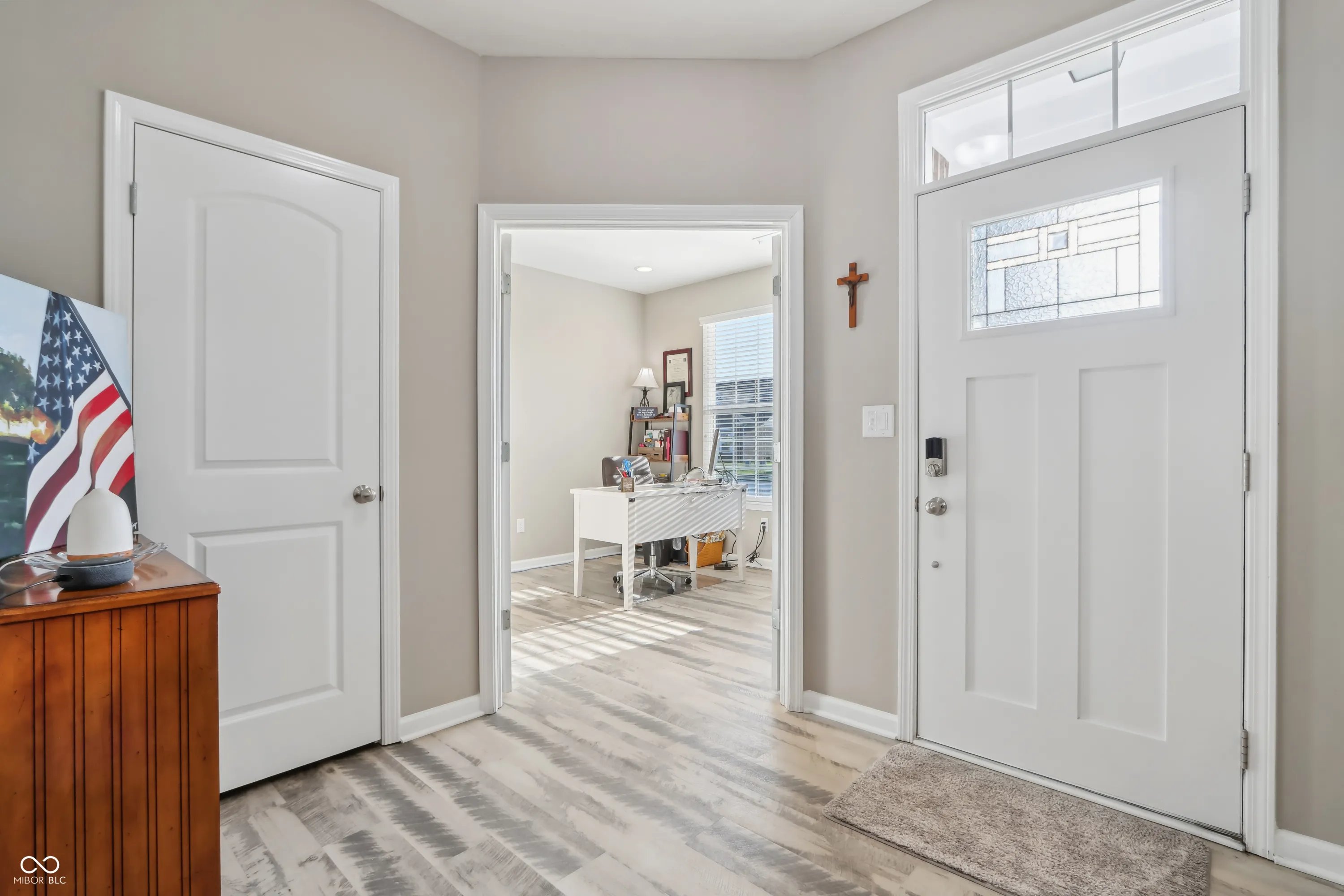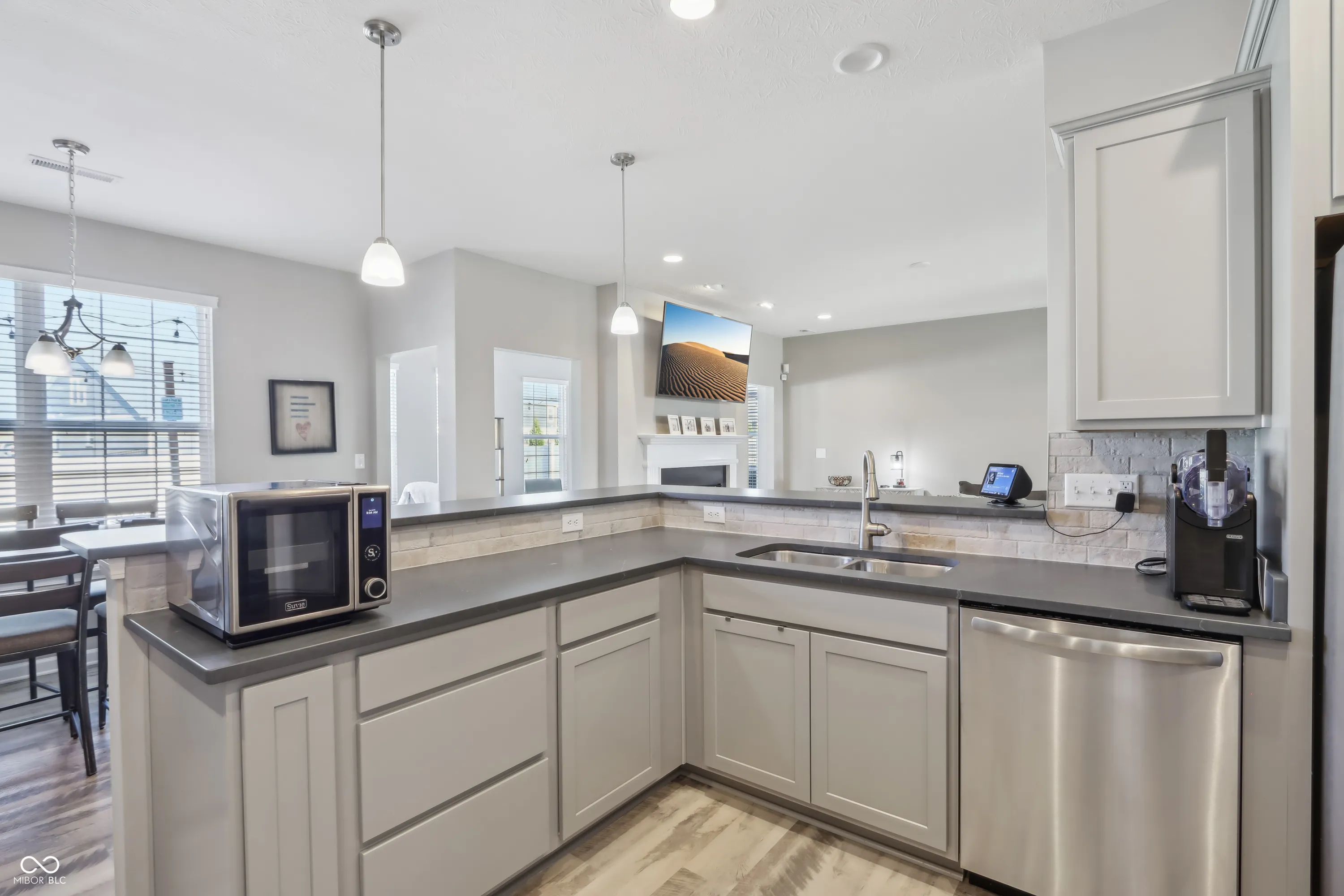 Step into a home that checks all the boxes! This spacious, well-designed one-owner residence offers a smart split-bedroom floor plan with 3 bedrooms, 2 full baths, a private office, and a bright sunroom you’ll never want to leave. The primary suite is a true retreat with a luxurious walk-in shower and an oversized closet that keeps everything organized. Love natural light? Soak it up through upgraded 6-foot windows adorned with custom Zingas blinds, casting a warm glow across the open-concept living area. The double-sided fireplace shared between the great room and sunroom adds cozy charm and a stunning focal point, perfect for entertaining or relaxing. Out back, you’ll find a fully enclosed vinyl privacy fence, a spacious patio for gatherings, and an additional paver patio tucked into the corner for quiet moments or evening firepits. Inside, enjoy low-maintenance LVP flooring throughout the main living areas and 9-foot ceilings that enhance the sense of space. The garage includes built-in shelving that stays, and all bedrooms, the great room, and sunroom are prewired for ceiling fans or ceiling lights. Plus, the buried downspouts help direct water away from the home, just another thoughtful touch in this well-maintained gem. This home is move-in ready and made for living well. Garage features Aladdin Connect wifi garage door openers. Agent Owned
