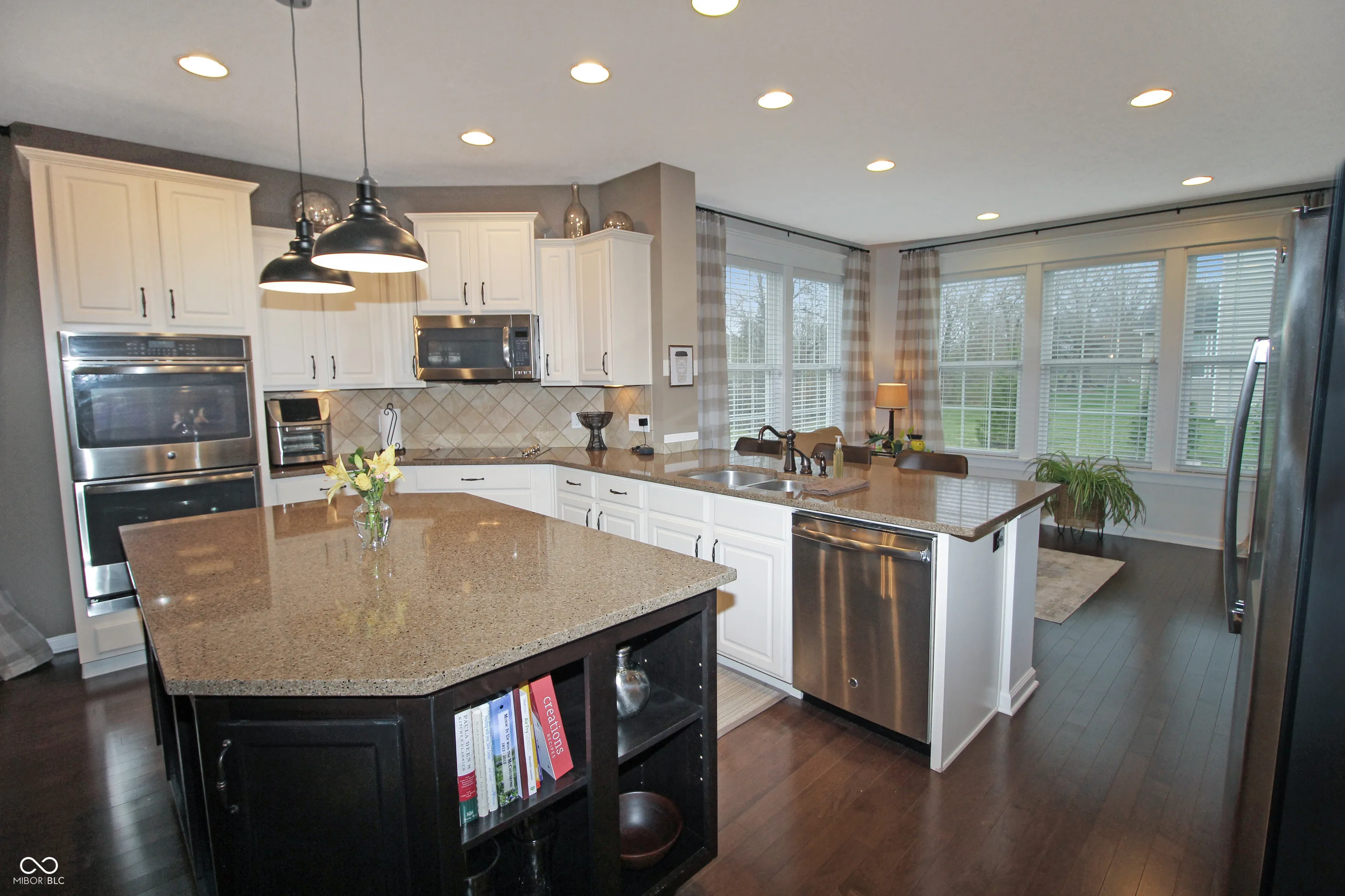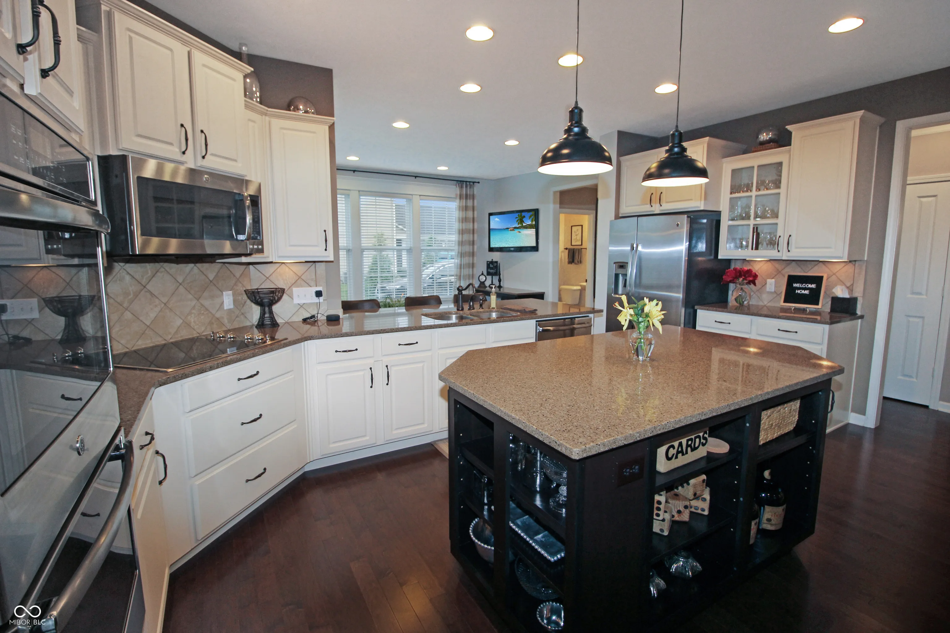 This stunning 2-story former model home in Plainfield boasts a finished basement, perfect for entertainment or a versatile living space. Neat, cool features include charming built-in bunk beds and playful swinging chairs, creating a delightful retreat. Ample storage is available in the concrete crawlspace. Upstairs, you’ll find four generously sized bedrooms, each with walk-in closets. The primary suite offers a luxurious escape, with a serene sitting area and a spa-like bathroom featuring a tiled shower and garden tub. The gourmet kitchen is a chef’s dream, equipped with stainless steel appliances, double ovens, a center island, and flexible dining options. Outdoor living is elevated with a screened-in patio, a relaxing hot tub, and a built-in firepit on an expansive concrete patio, ideal for gatherings. Upstairs laundry adds convenience. “Wow” features throughout the home include distinctive feature walls, built-in bookshelves, extra windows, recessed lighting, and more! This property truly offers a remarkable living experience.