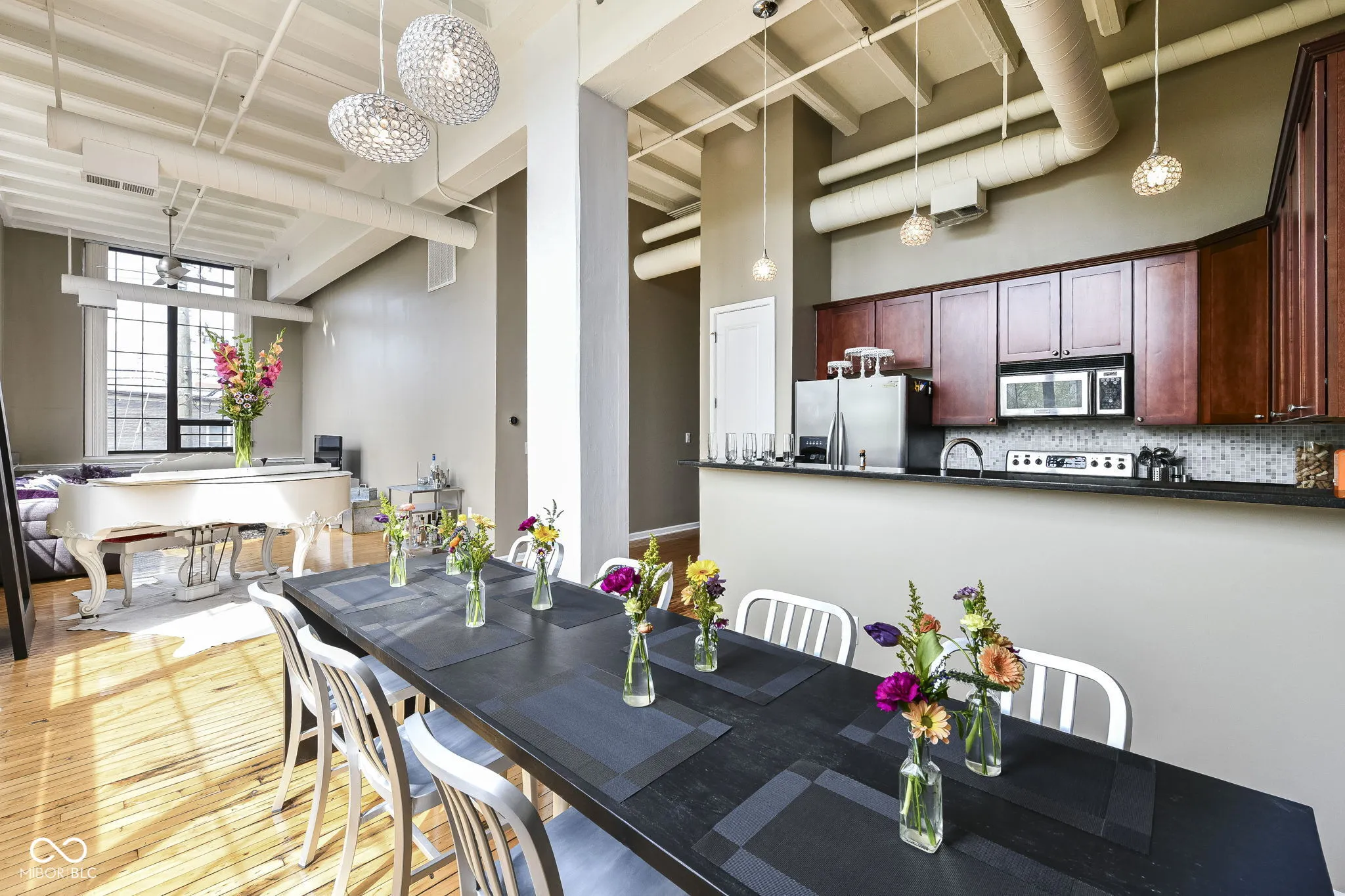 mill no 9 unit 21 is a” condo for all seasons” no matter what time of year, there is always something vibrant happening in the mass ave district… and you don’t want to miss it ! located at the epicenter of indpls’ downtown cultural/business/restaurant/nightlife scene, this rare corner loft condo offers a panoramic wall of city facing windows (absolutely stunning), 14′ industrial concrete ceilings, distressed hardwoods, granite countertops ( yes.. you can see the city skyline as you are cooking or sipping champagne), ample dining space adjoining the great room and a master retreat that can easily accommodate an in-home office. also.. check out the stunning rooftop patio (enjoy sunny days basking rooftop from this easily accessible space.) secure assigned underground parking (#21) plus 1 surface lot space (# 25). it’s time to start living a lifestyle where you can walk anywhere your heart desires… and leave the car behind! schedule your tour of mill # 9 today and soon you’ll be home.
