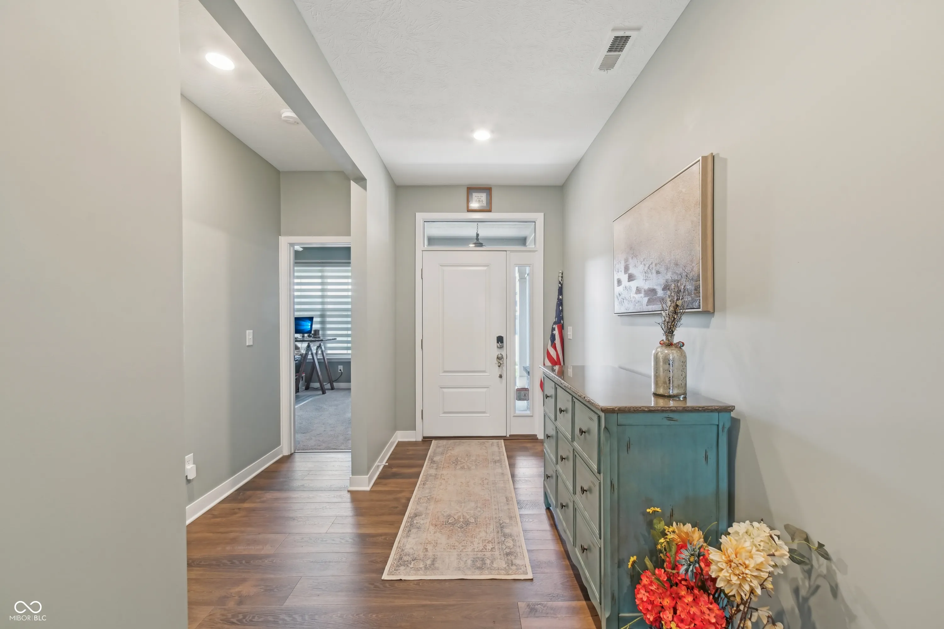 Check out this home that still feels brand new in one of the most sought out areas of town! Right away you’ll notice the pride of ownership with the incredible curb appeal! The engineered hardwood floors, 11 ft ceilings, and open concept floorplan create an inviting atmosphere you’ll want to experience! The foyer leads you to a spacious and yet cozy kitchen and living area in the heart of the home. Adding to the character of the home is the floor-to-ceiling stone fireplace feature and modern lighting. The fireplace is not only beautiful but also functional, with being an upgraded system that can heat the entire house if needed! The kitchen showcases stone countertops, large center island, and a great sized pantry. It flows perfectly with the living room and dining room, creating the space and flexibility you need to host family gatherings or entertain friends. Don’t worry about extra costs with all the kitchen appliances staying, in addition to: washer, dryer, and water softener! The primary suite can be your oasis after a long day, with the split floorplan offering some additional privacy along with a bathroom with double sinks, custom walk-in shower, and walk-in closet! The large covered patio in the backyard is the perfect spot to relax and unwind or host guests. Additionally, storage won’t be an issue with the 3-car garage and built-in cubbies and a boot bench just inside the door. This home is in excellent condition and is truly move-in ready–don’t miss this opportunity!