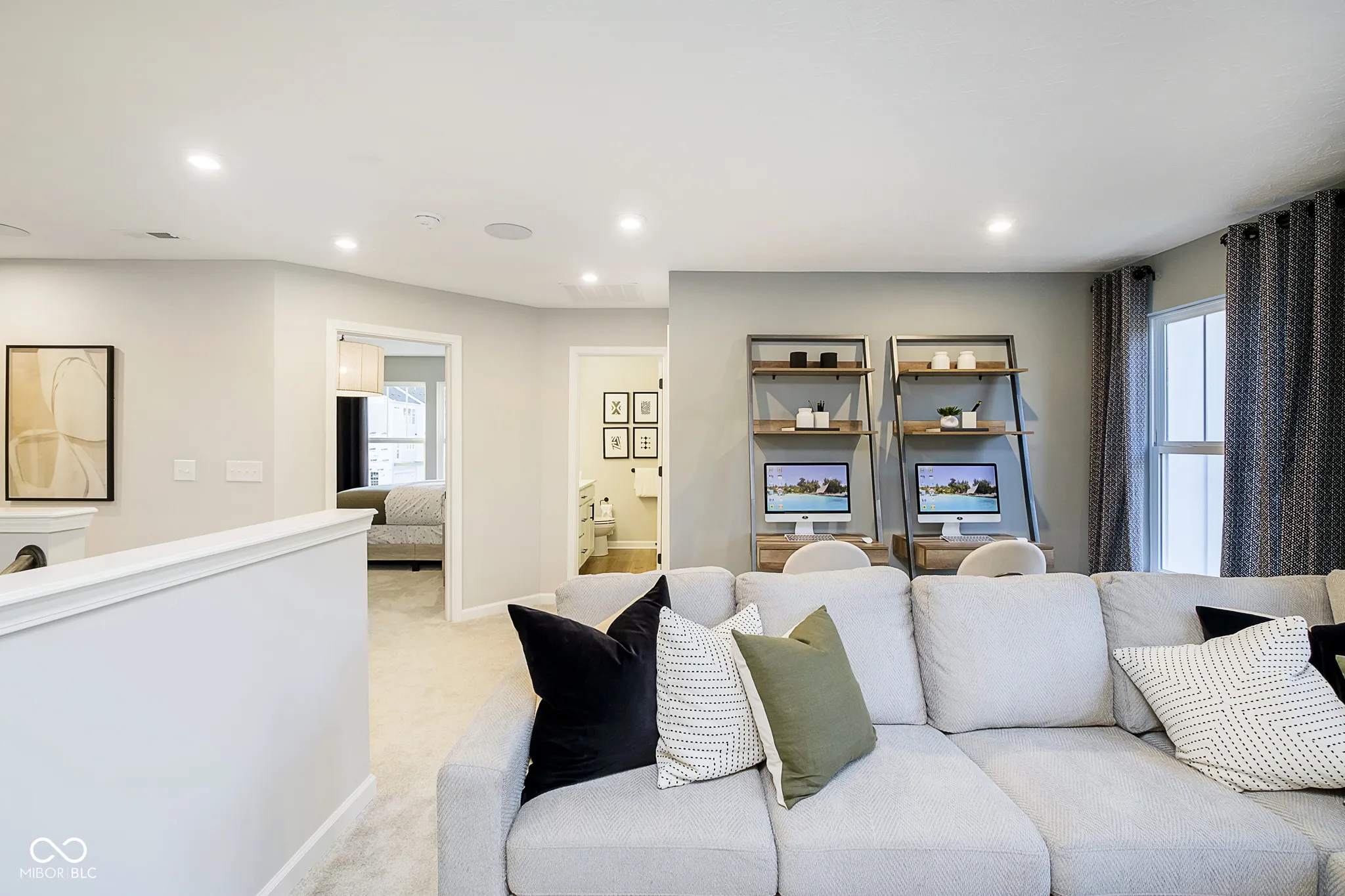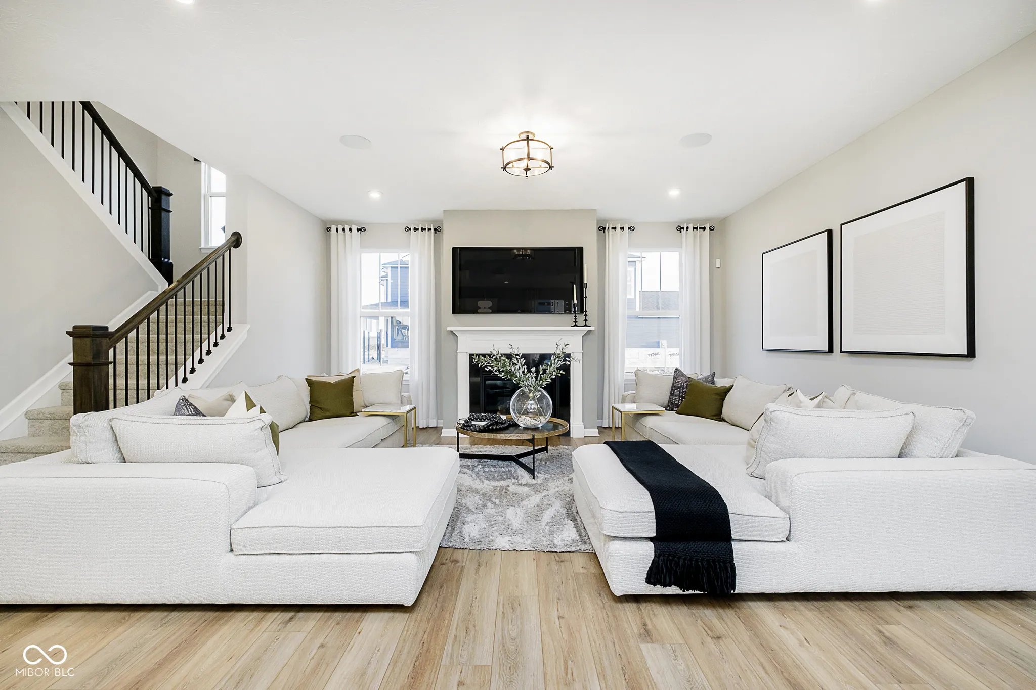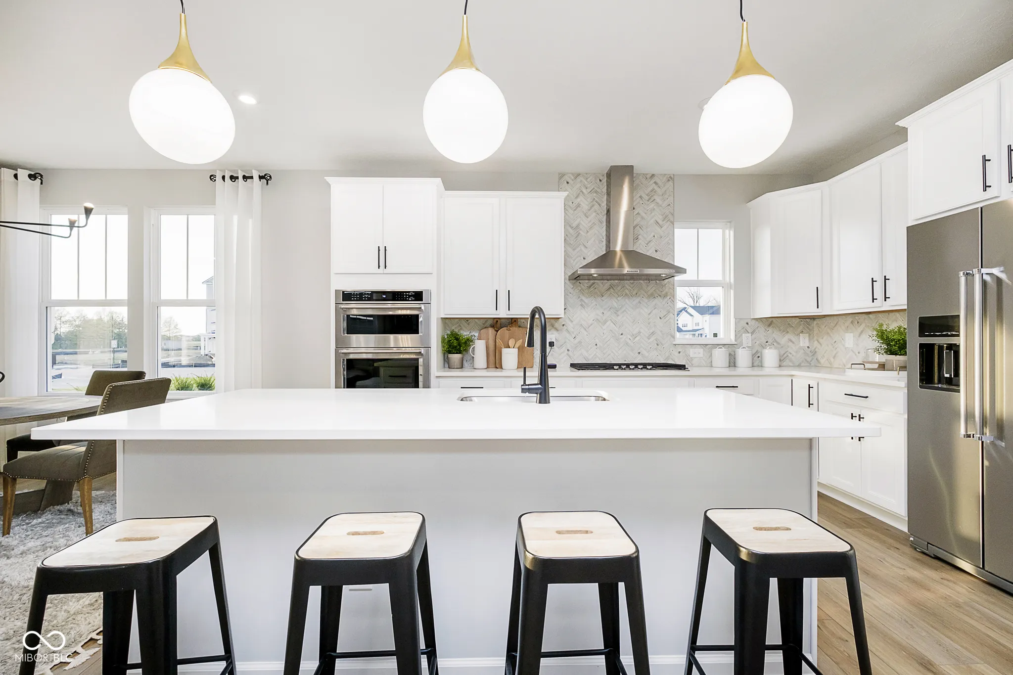 Welcome to this stunning former model home in Ambleside by Pulte Homes, featuring the inviting Portland floor plan. Step inside to discover a main level designed for both comfort and functionality. Enjoy the warmth of the fireplace in the spacious gathering room, perfect for relaxing or hosting guests. The formal dining room provides an elegant space for meals, while the flex room, complete with doors, offers a quiet retreat for work or hobbies. At the heart of the home is the gourmet kitchen, a true chef’s dream. Featuring quartz countertops, a built-in wall oven and microwave, a 36″ gas cooktop, a 36″ vented hood, and 42″ white cabinetry, this kitchen is as functional as it is stylish. Step outside to a covered patio for year-round outdoor enjoyment. Upstairs, you’ll find three generously sized bedrooms and a versatile loft, perfect for additional living or office space. The owner’s suite is a true sanctuary with its tray ceiling, oversized shower, large closet and plenty of room to unwind. The unfinished basement offers endless possibilities for future customization and includes a convenient bath rough-in. Additional highlights include an extended garage for extra storage or workspace and yard irrigation system. This top West Carmel location is minutes to everyday conveniences, shopping, dining and entertainment along US-31, Clay Terrace and Michigan Road with easy access to I-465 via US-31 and US-421.