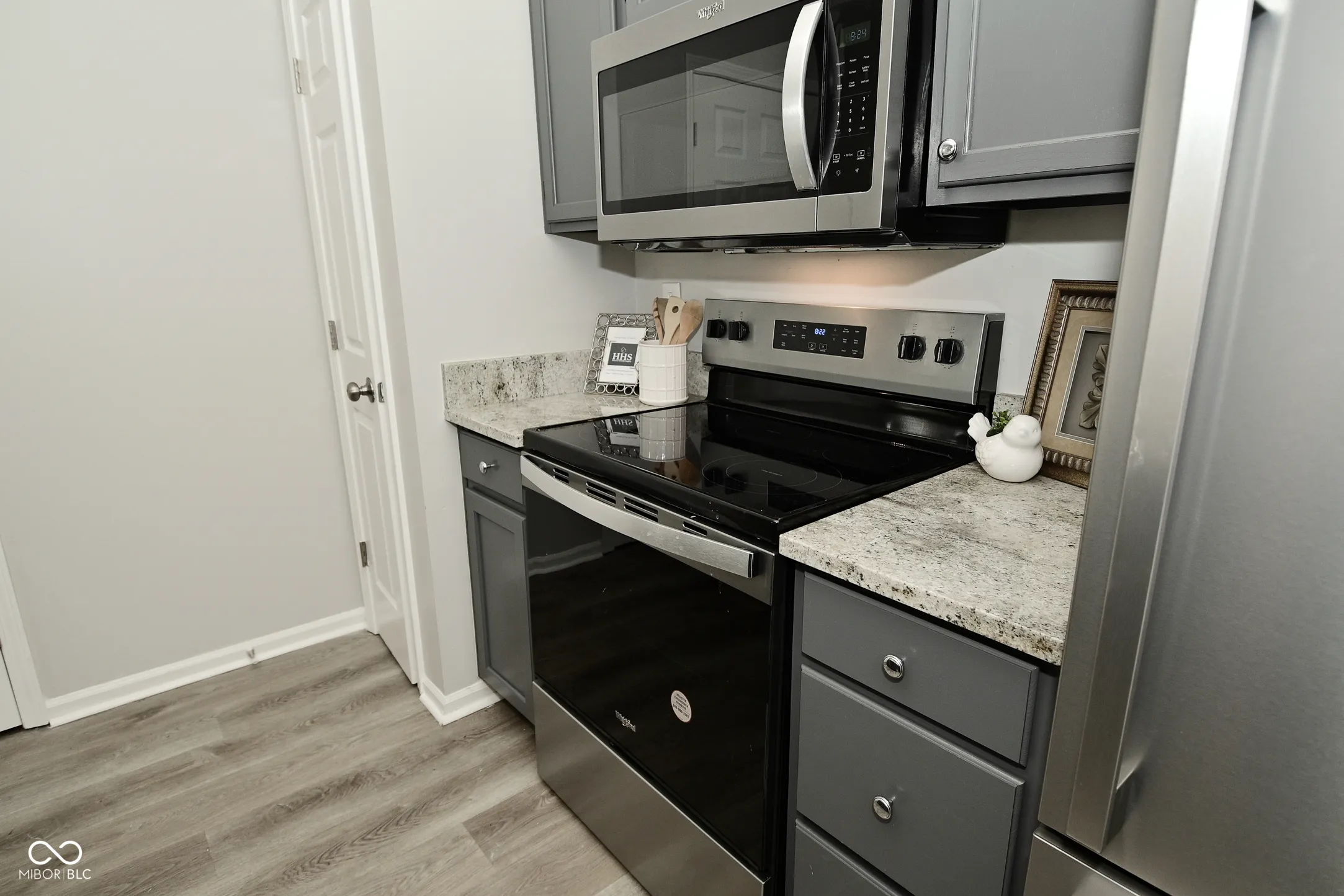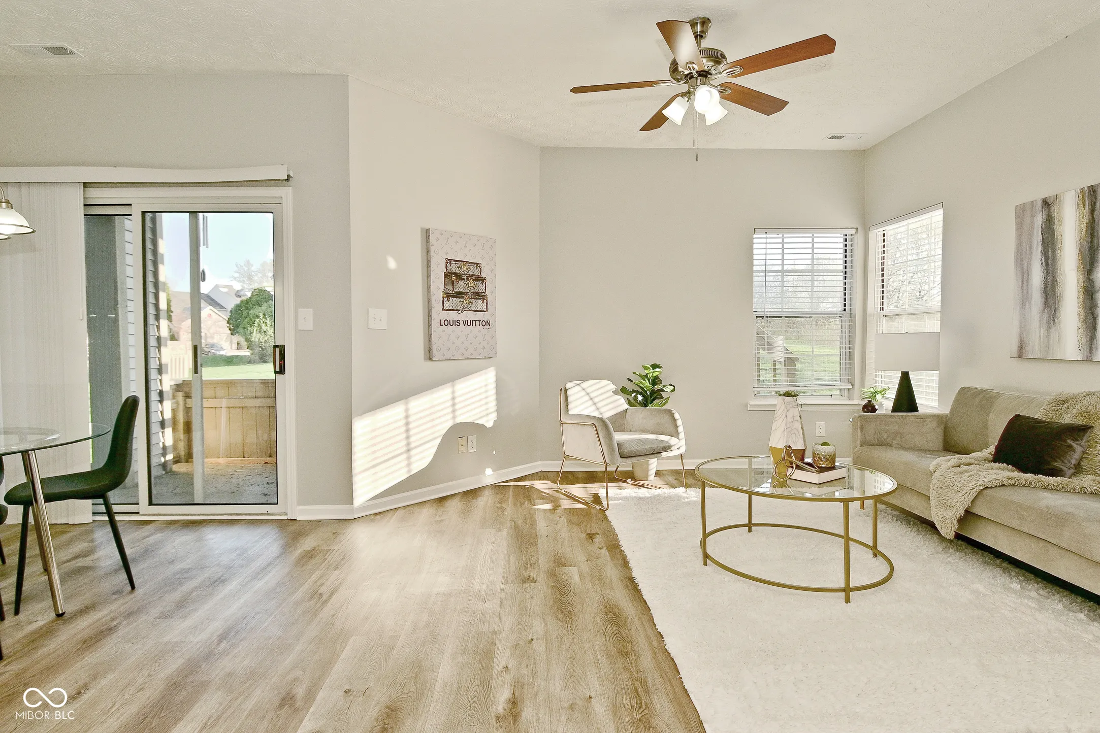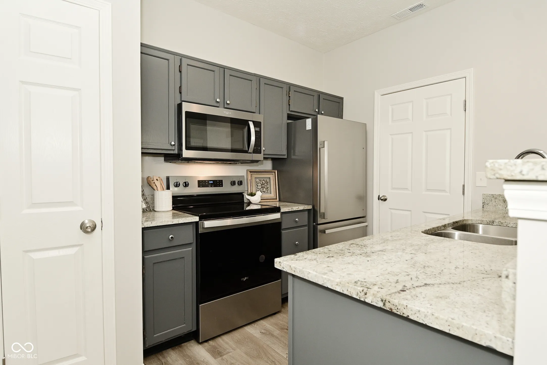 Cozy awaits you in this charming west side condo! This unit offers main level living with raised 9 foot ceilings and a completely updated interior. Upon entry, the living space is open concept, with the spacious living room open to the dining area. The kitchen is updated with a suite of stainless steel appliances, granite countertops, refreshed cabinets, and a pantry for additional storage. The laundry closet is located just off the kitchen. Both bedrooms have brand new carpet and the entire unit has been freshly painted in neutral gray. The primary bedroom has elegant French doors and an ample walk in closet. The bathroom features a walk in shower with a grab bar for greater accessibility. The fiberglass water heater was installed in 2024, furnace & AC 2020 & have been serviced by current owner. The unit also comes with a storage unit on the covered patio, 1 car garage, and a reserved parking space. There’s nothing left to do here except move right in!