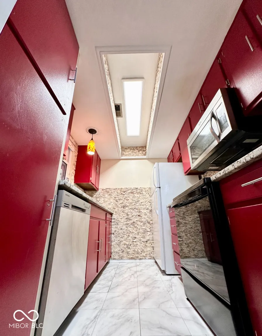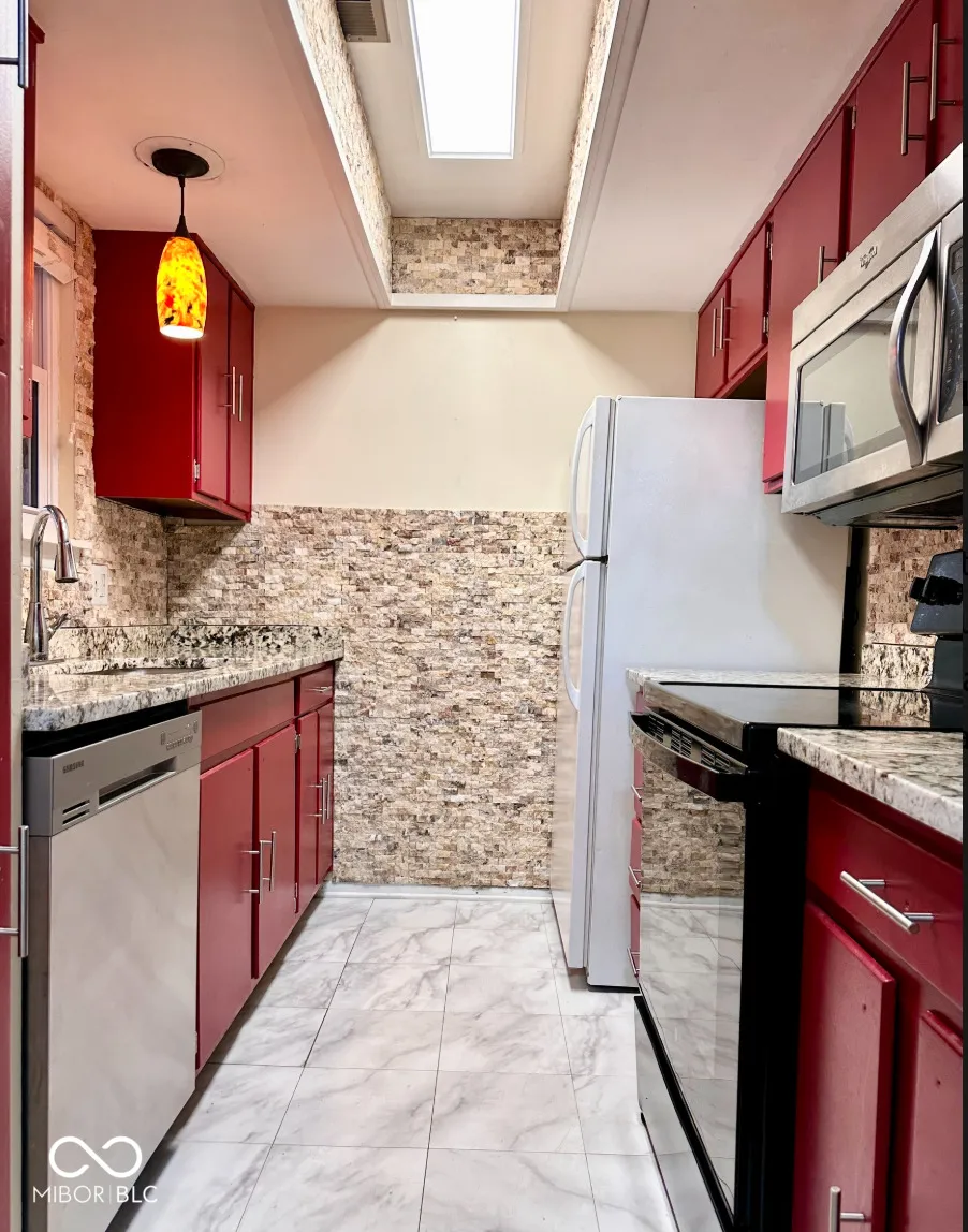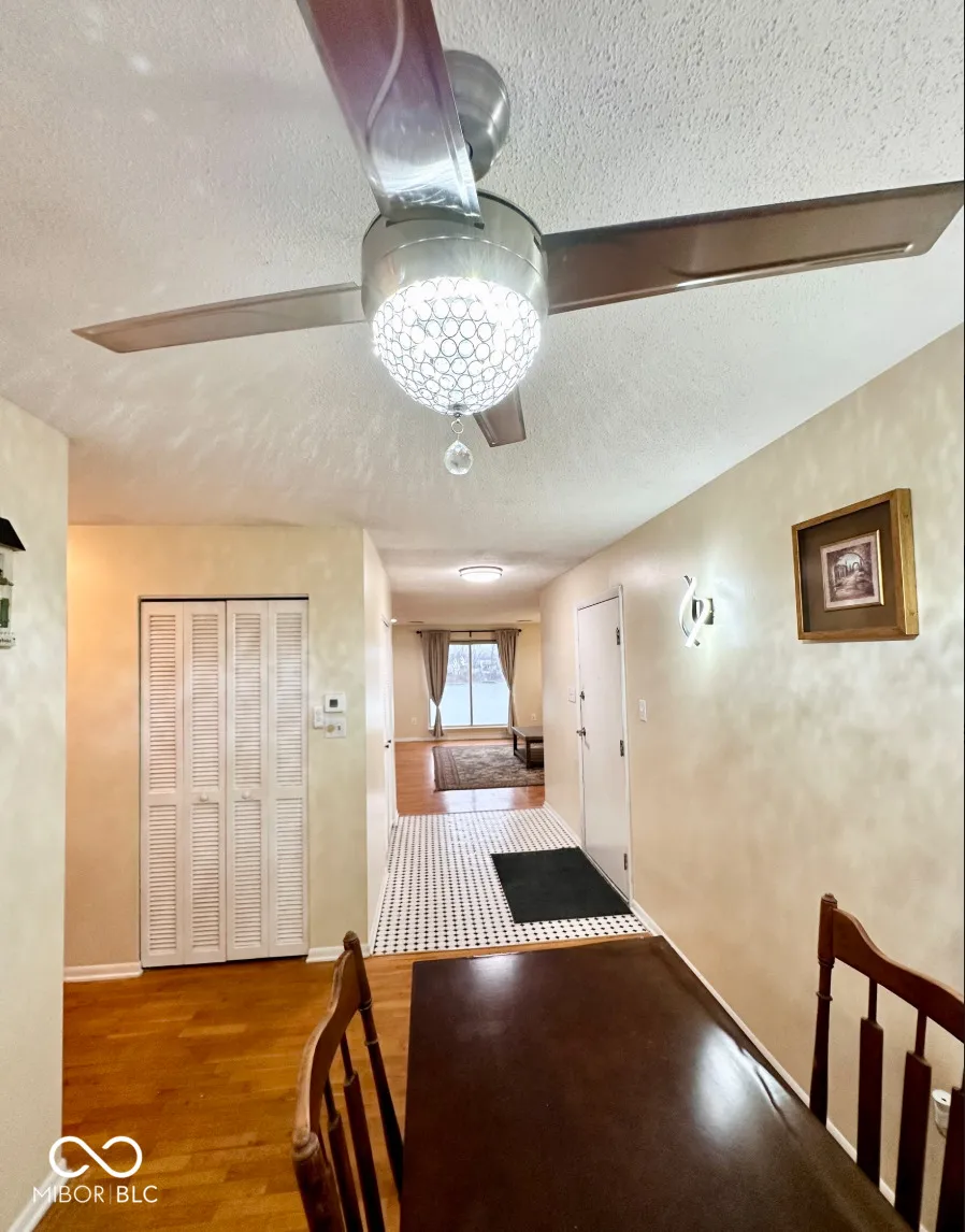 Don’t miss this affordable condo with stunning penthouse views of a sprawling lake just steps from your door, complete with private docks-perfect for boating, swimming, or enjoying the scenic walking trail along the water! The spacious open great room offers flexibility for a seating area, office space, and captivating lake views. Relax on the screened-in porch, ideal for morning coffee or evening sunsets. The large owner’s bedroom boasts lake views and two large closets with built ins for ample storage. You’ll love the hardwood floors throughout! The remodeled kitchen provides plenty of cabinet and counter space with all appliances included. The freshly tiled bathroom features granite counters, tile flooring, a windowed tub/shower combo, and a linen closet. Rent includes the HOA, which covers your water & sewer. For extra convenience, two storage closets are located just outside the front door, and the condo includes a covered carport (#167). All this, just minutes from downtown Indy and shopping-an unbeatable combination of comfort and location!”