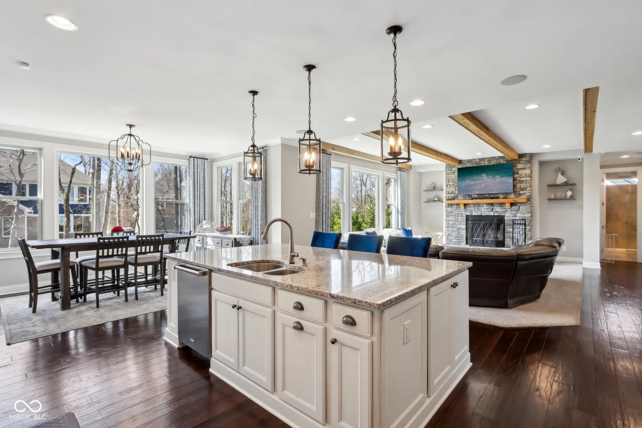 Nestled in the heart of The Woods of Thorpe Creek, this stunning home offers an open floor plan filled with an abundance of natural light, creating a warm and inviting atmosphere. The incredible kitchen boasts high-end finishes, Wolfe range & double-oven, ample counter space, and a spacious island-perfect for cooking, entertaining, and gathering. A main-level guest bedroom provides comfort and flexibility, while the finished basement with a wet bar is an entertainer’s dream. Step outside to enjoy the screened-in back porch and fenced-in backyard, offering privacy and a perfect space for relaxation or outdoor fun. Conveniently located just 7 minutes from I-69 and Hamilton Town Center and 10 minutes from Geist Reservoir, this home blends luxury, comfort, and accessibility in a sought-after community. Don’t miss the opportunity to make it yours!