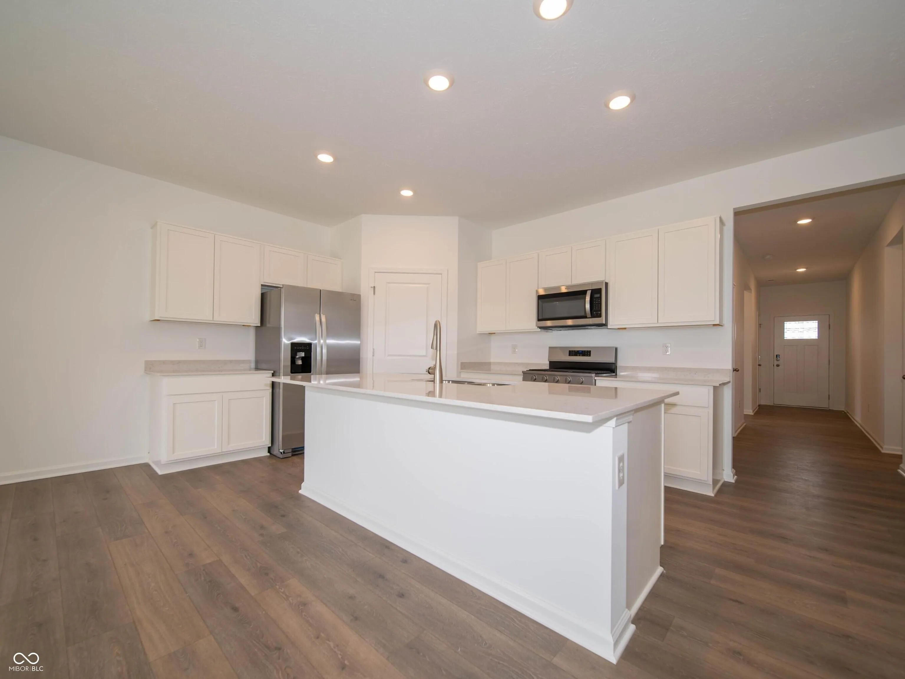 D.R. Horton, America’s Builder, presents the Chatham plan in Saddlebrook Farms North. This spacious, single-level home offers 4 bedrooms and 2 baths within an open living layout and is situated on a pond view home site. The main living area features solid surface flooring throughout, ensuring easy maintenance and a sleek, modern feel. Three generously sized bedrooms are located at the front of the home, while the private fourth bedroom-featuring a large walk-in closet and luxury bath-is situated at the back for added privacy. The kitchen is a standout with its large built-in island and elegant white cabinetry, perfect for both meal prep and entertaining. Throughout the home, you’ll find quartz countertops for a polished look. For outdoor enjoyment, the home features a spacious covered back patio, an ideal place for gathering with family and friends. As with all D.R. Horton homes, this home comes equipped with America’s Smart Home Technology, including a smart video doorbell, smart Honeywell thermostat, Amazon Echo Pop, smart door lock, Deako light package, and more, making this home both stylish and connected. Take some time out to enjoy the community walking trails and the expansive green space. This ideal location offers new homes in Johnson County and the peacefulness of a small town and the convenience of living near major roads, shopping, dining and entertainment.
