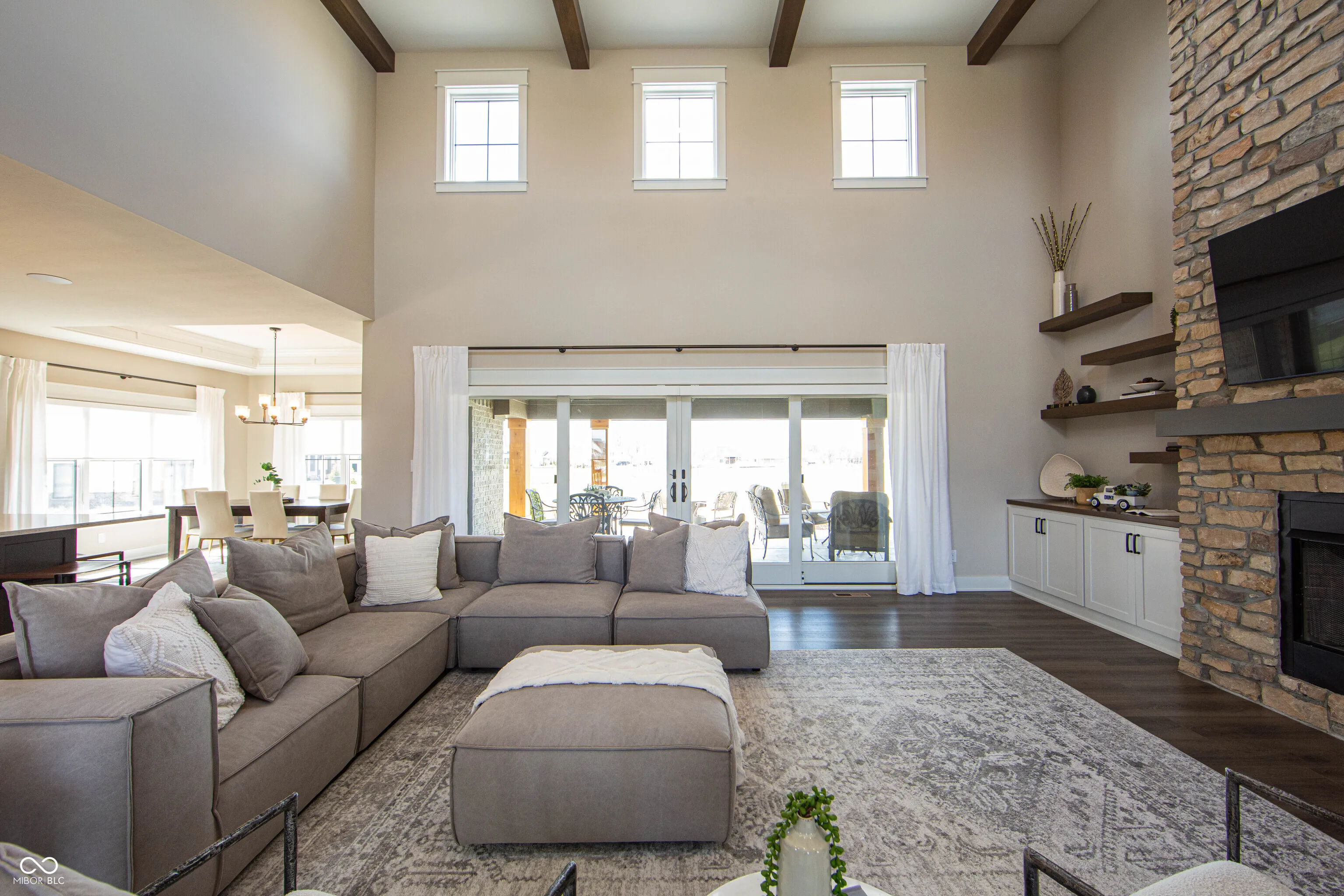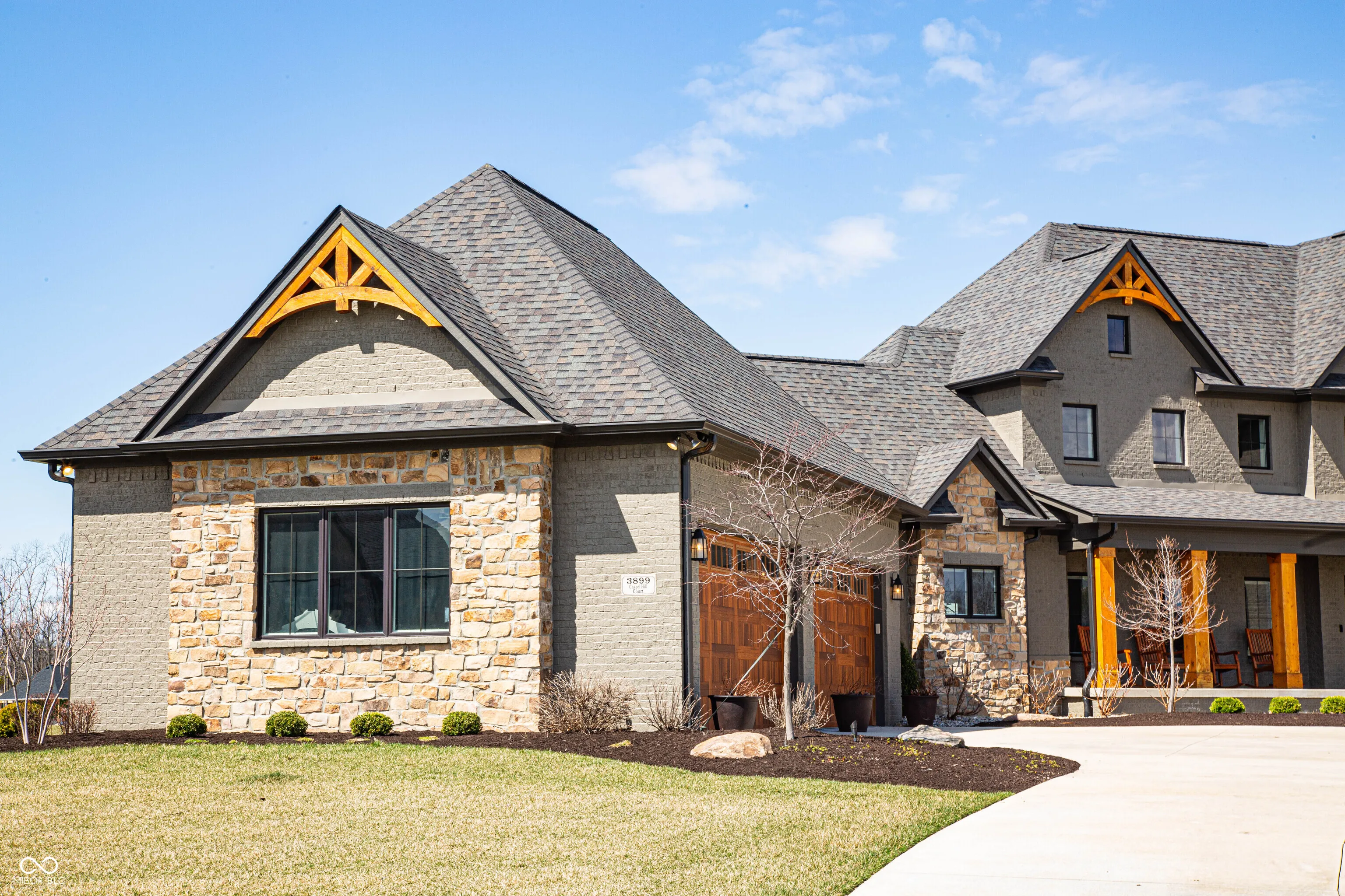Welcome to 3899 Chapel Hill Court-a custom Duke Homes built masterpiece nestled within the prestigious Aberdeen community. This 5-bedroom, 4.5-bathroom residence spans nearly 5,800 square feet on a generous 1.46-acre lakeview lot, offering refined living in a wellness-focused, gated enclave. Crafted in 2021 as the Model Home of the Community, this never been lived in estate boasts soaring ceilings, a beautiful floor to ceiling stone fireplace, and a four-car garage, blending modern design with timeless elegance. The gourmet kitchen is a chef’s dream, featuring premium appliances, custom cabinetry, walk-in pantry and an expansive quartz countertop island perfect for entertaining. Light-filled living spaces flow seamlessly, offering warmth and sophistication at every turn. Enjoy the tranquility of the primary suite on the north wing of the home. The inviting primary bath includes a custom walk-in tiled shower, freestanding tub and oversized walk-in closet. Downstairs, the fully finished basement reveals a stunning grotto-style wet bar, family entertainment area and more, creating the ultimate space for hosting or unwinding. Aberdeen is Indiana’s first Wellness Lifestyle Community, designed to foster connections with nature and neighbors. Residents enjoy amenities such as a working farm, two miles of nature trails, lakeside parks, and a planned community center featuring a coffee shop, fitness space, and golf simulator. With its commitment to wellness and community, Aberdeen offers a lifestyle beyond the ordinary. Experience the perfect blend of luxury and tranquility at your new Dream Home-where exceptional living meets a vibrant, nature-inspired community.