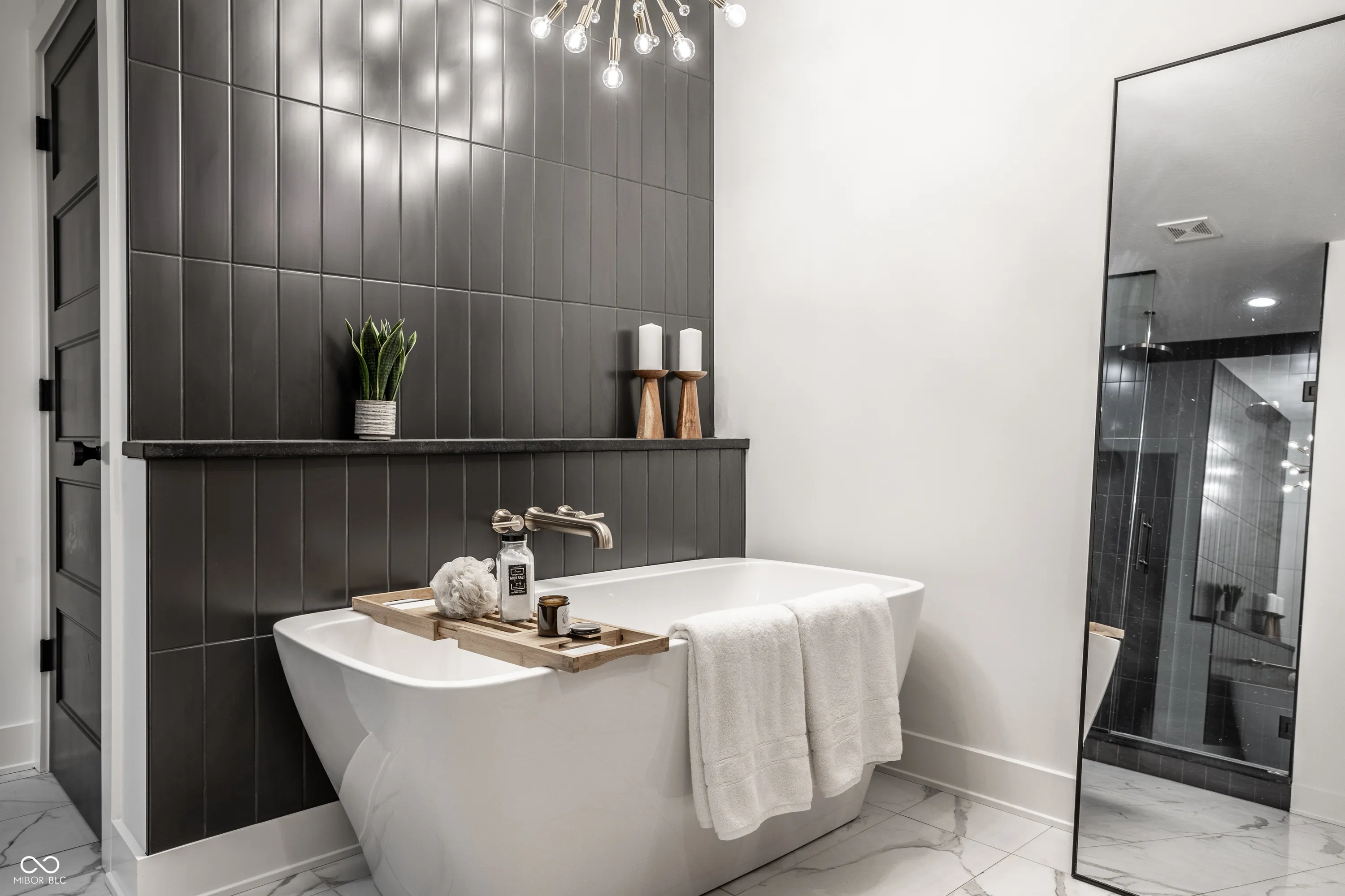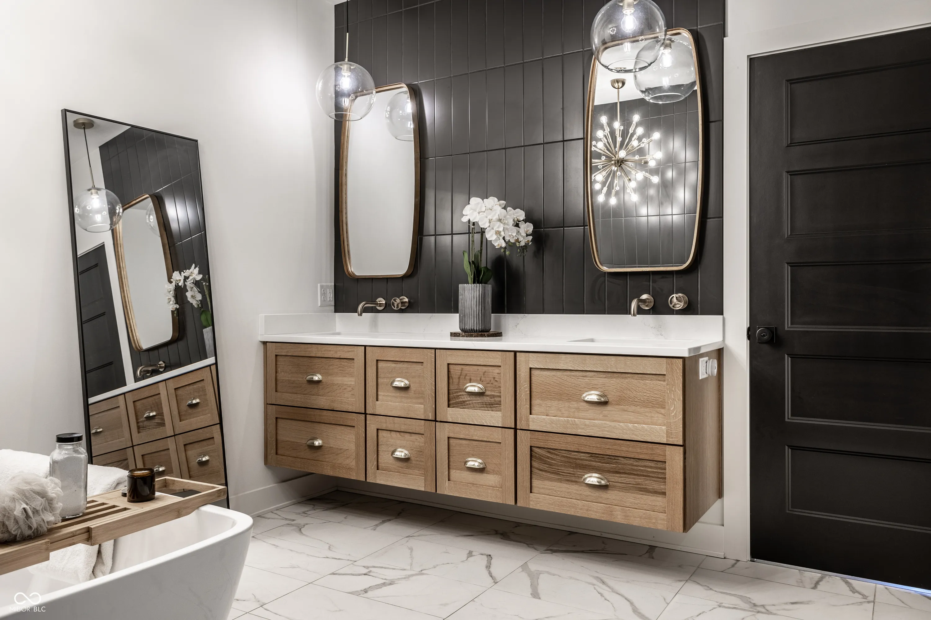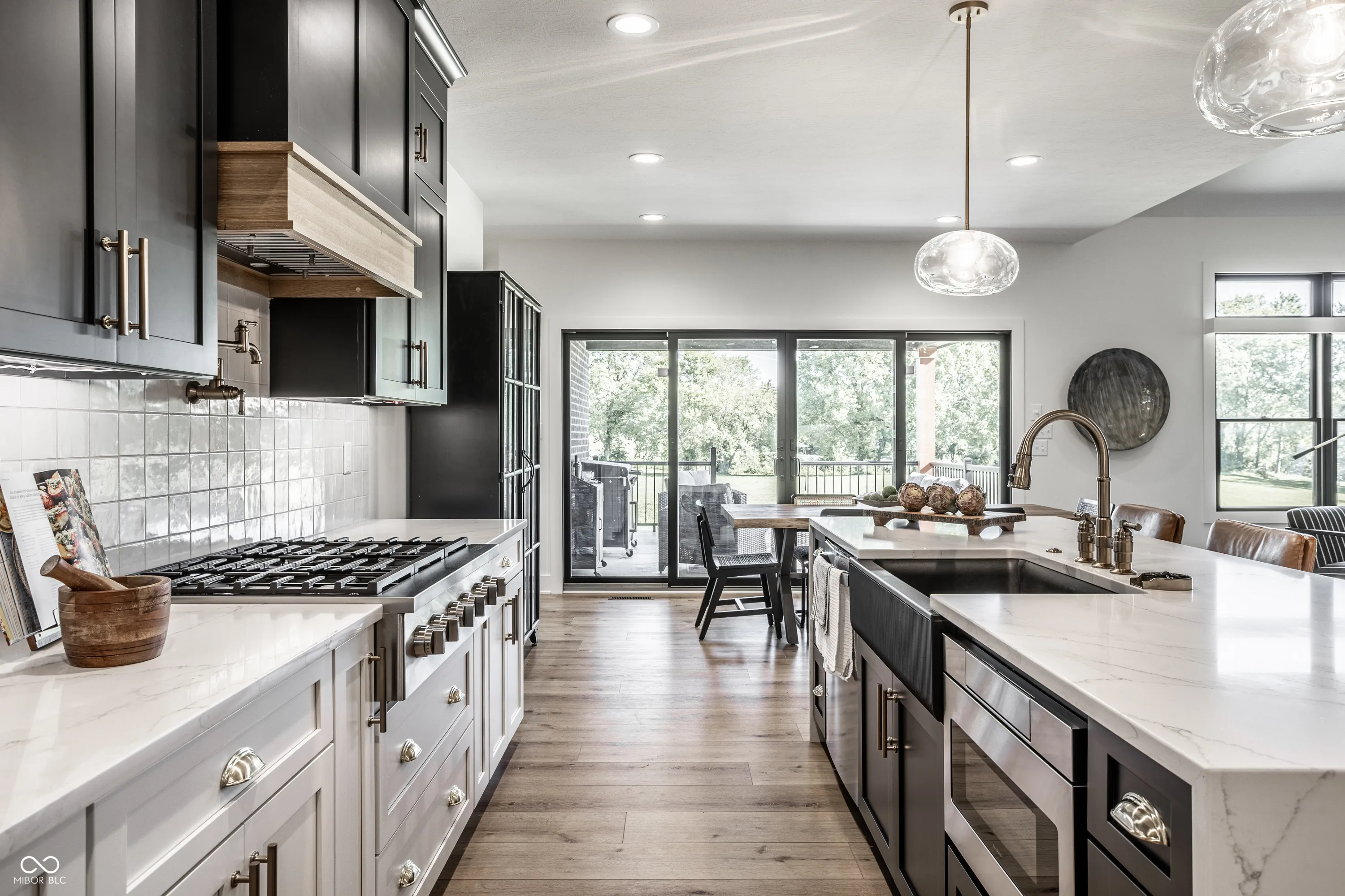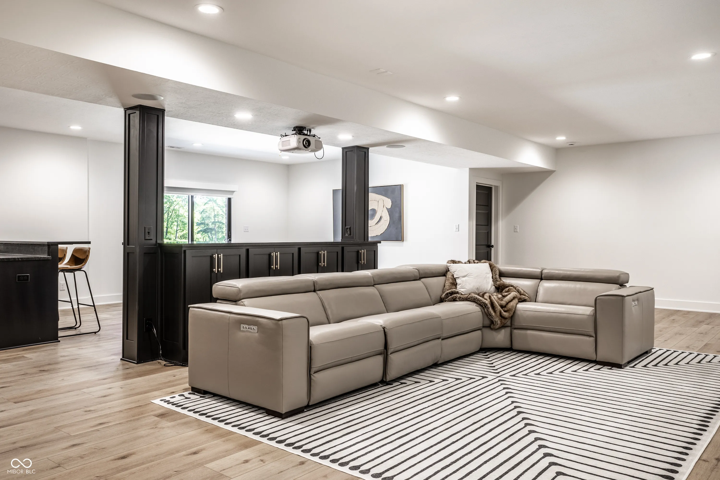 Welcome to an extraordinary modern estate in the prestigious Center Grove School District. This stunning 2023-built residence, set on a sprawling 6-acre property directly across from Center Grove High School, offers an exquisite blend of elegance and timeless design. As you approach the home, a custom 5-foot-wide pivot front door welcomes you, leading into a cozy, moody office with floor-to-ceiling custom built-ins and a breathtaking view of your front acreage, creating an inspiring workspace. The heart of the home features custom white oak cabinets and a unique arched pantry door, adding a touch of sophistication to the modern kitchen. The open-concept great room, adorned with a linear fireplace and large sliders, flows seamlessly onto a beautiful patio with a custom wood-paneled ceiling adding a distinctive charm. The primary suite is a true sanctuary offering a modern spa-like bathroom with a soaking tub under a chandelier, an oversized shower with dual shower heads, and a rain shower, providing ultimate relaxation. The harmonious blend of white, black, and oak tones throughout the home creates a beautiful and modern aesthetic. Descending into the walk-out basement, this expansive area includes a large entertainment space with a projector that stays with the home, perfect for movies and sports, a complete bar area, and a sizeable patio for outdoor enjoyment. Combined with the whole house speaker system, this estate is entertainment-central! Not to mention over 1,000 sq ft of unfinished space to add a gym, 5th bedroom, etc! The four-car garage offers an EV charger, ample space for vehicles and storage, and is ideal for car enthusiasts or large families. Don’t forget about the custom dog wash area in the garage as well! The expansive 6-acre property is like nothing else. Its the one you’ve been waiting for! Pictures 54-61 are virtual reality renderings of possibilities, not present and not included in sale.