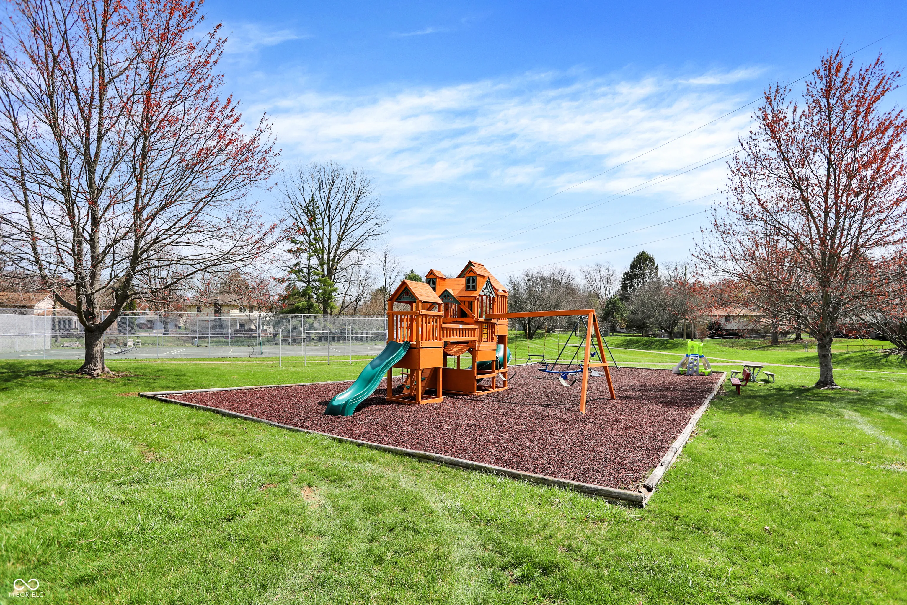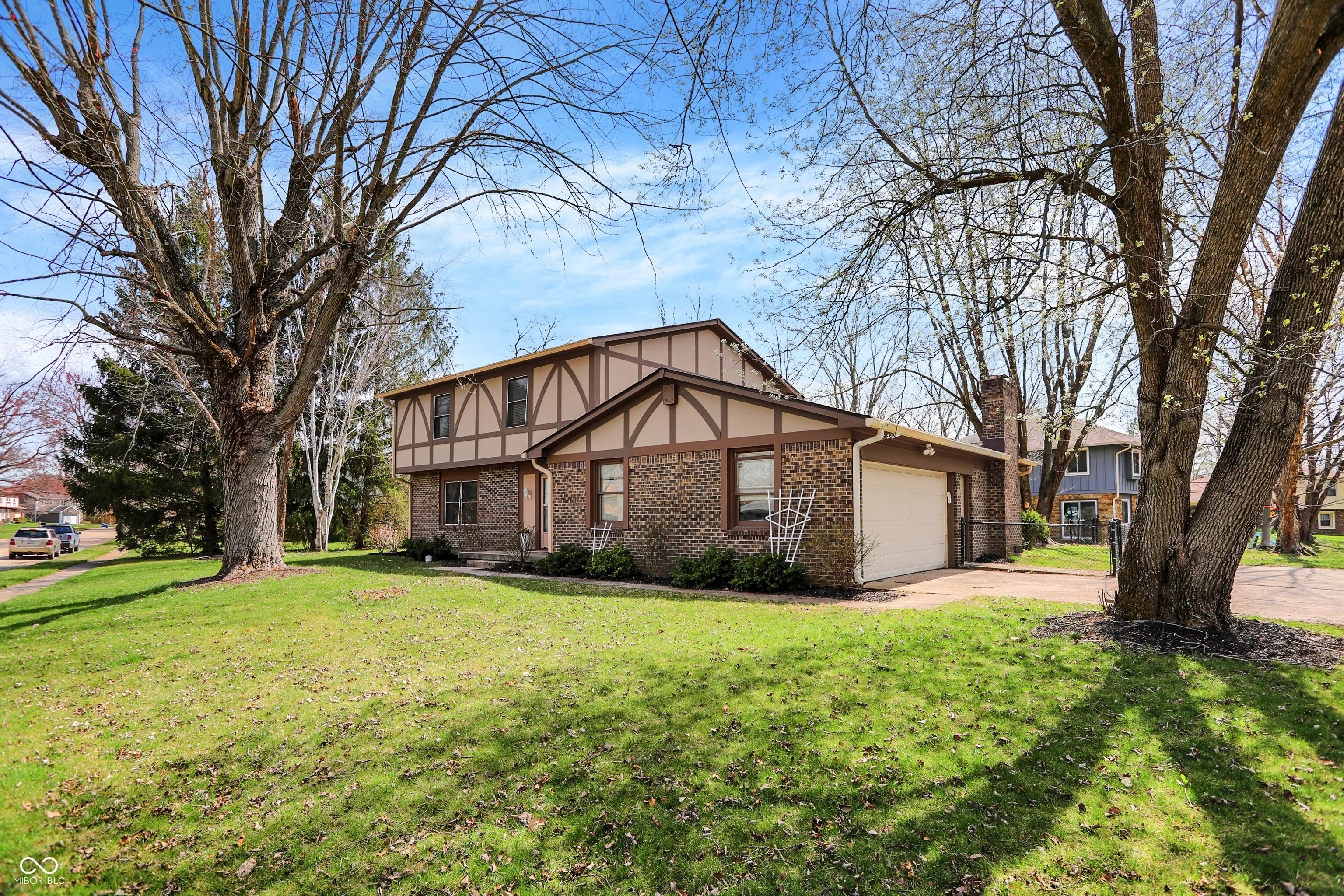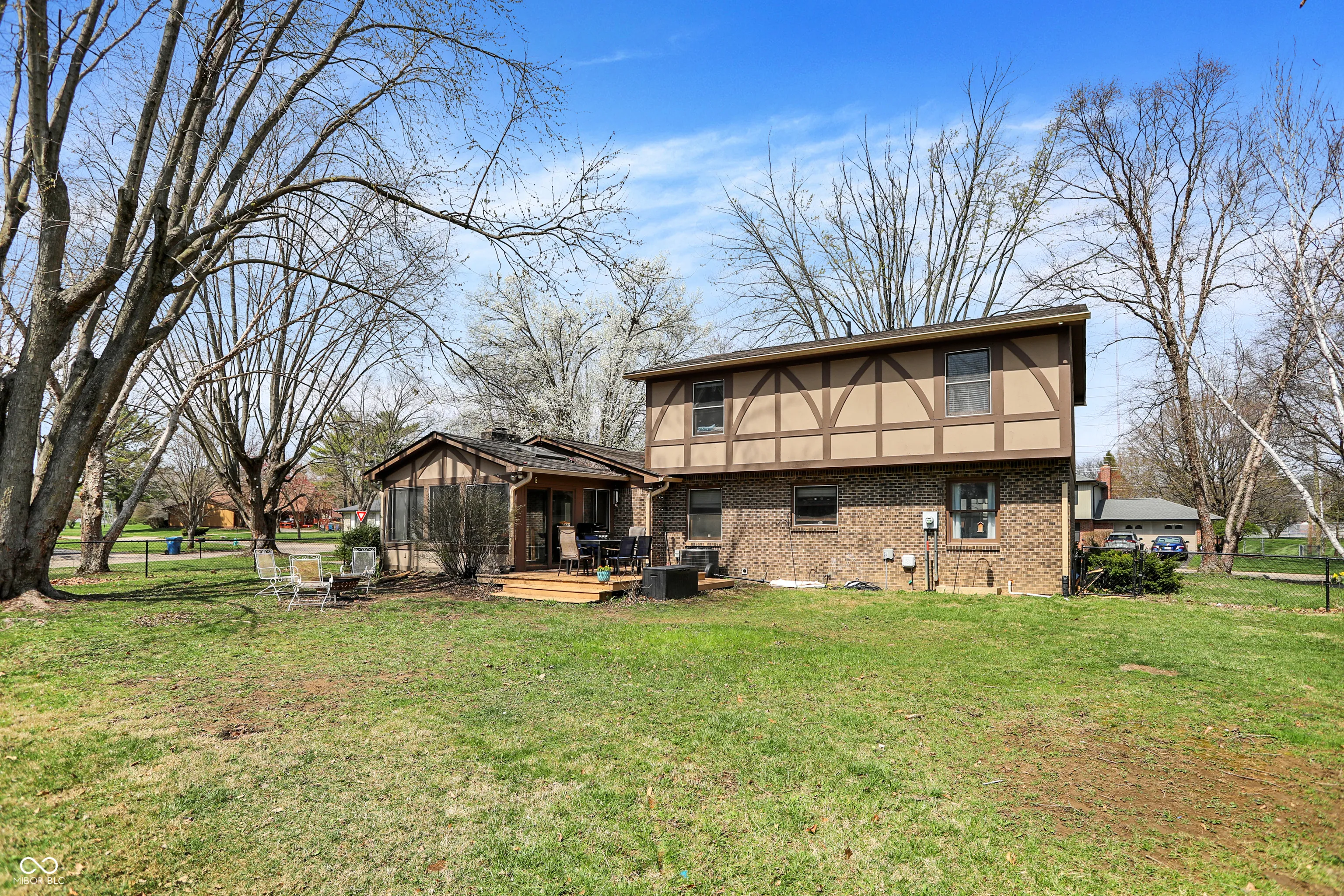 Wonderful 4BR/2.5BA Tudor style home situated on a large corner cul-de-sac lot in Washington Township! Spacious living room opens to the formal family dining room with chair rail, crown molding and farmhouse chandelier. Charming kitchen features stainless steel appliances, large pantry and eat-in breakfast nook. Enjoy evenings in the wonderful family room with cozy fireplace and built-in bookshelves. Plenty of space for entertaining in the gorgeous three seasons sunroom which features a vaulted ceiling and built-ins. Wide refinished staircase leads upstairs to 4 amply sized bedrooms. Primary bedroom suite has walk-in closet, second additional closet and private ensuite bathroom with updated vanity, flooring & lighting. Second full bathroom has been updated with classic subway tile surround with modern fixtures. RARE finished basement features new flooring and plenty of space for a theatre room, home gym, play space and more. Spacious laundry room and bonus room both have extra storage space. Lovely fenced-in backyard with custom deck provides a private oasis for fun and relaxation. Two car attached finished garage features even more storage space and convenient service door. Fantastic neighborhood amenities including clubhouse, pool, walking trails, playground, and pickleball/tennis court. Fabulous location near shopping, dining, hospital, and quick access to I-465. This home features modern comforts with classic charm in a secluded gem of a neighborhood that’s near it all. Welcome home!