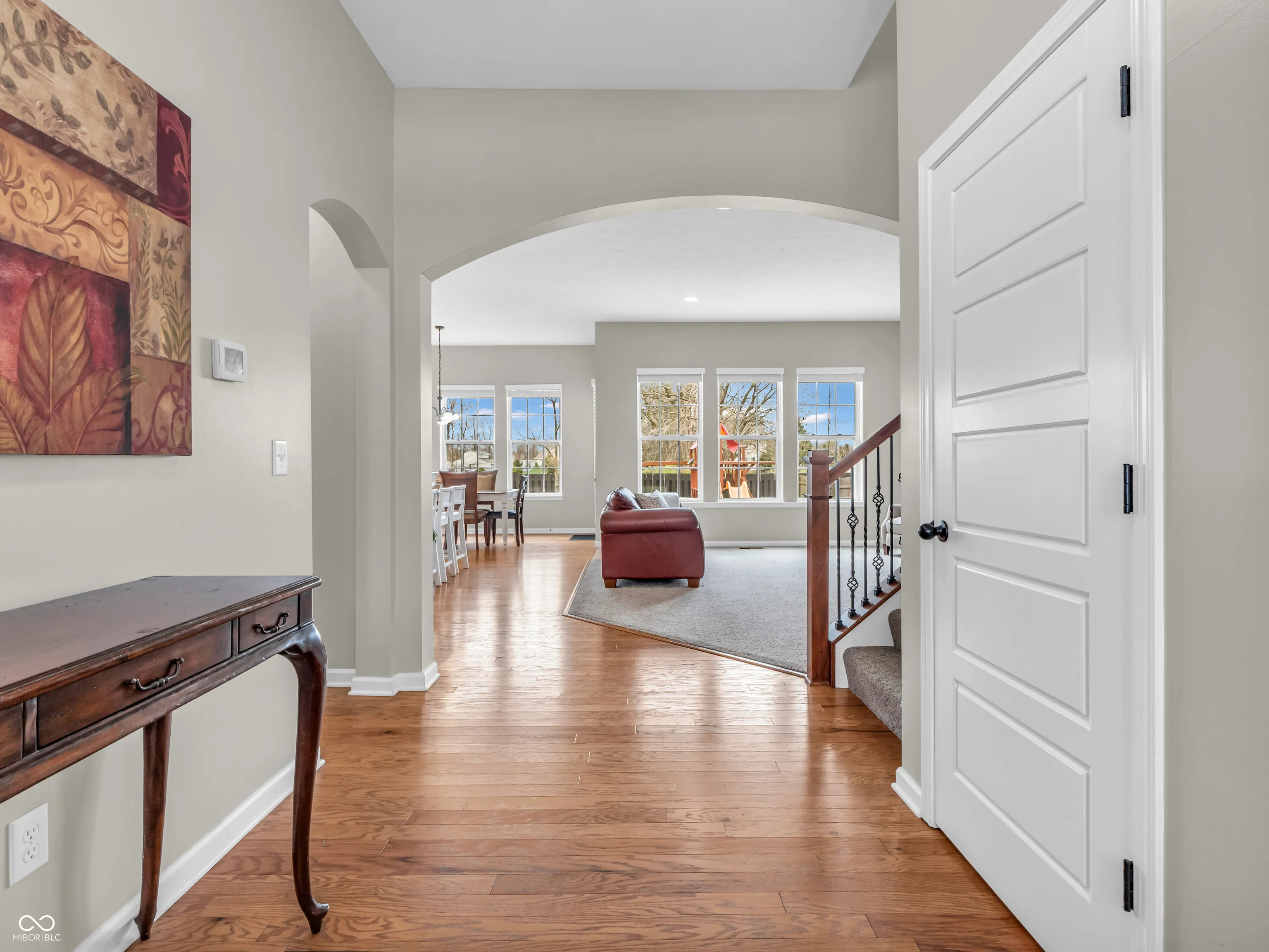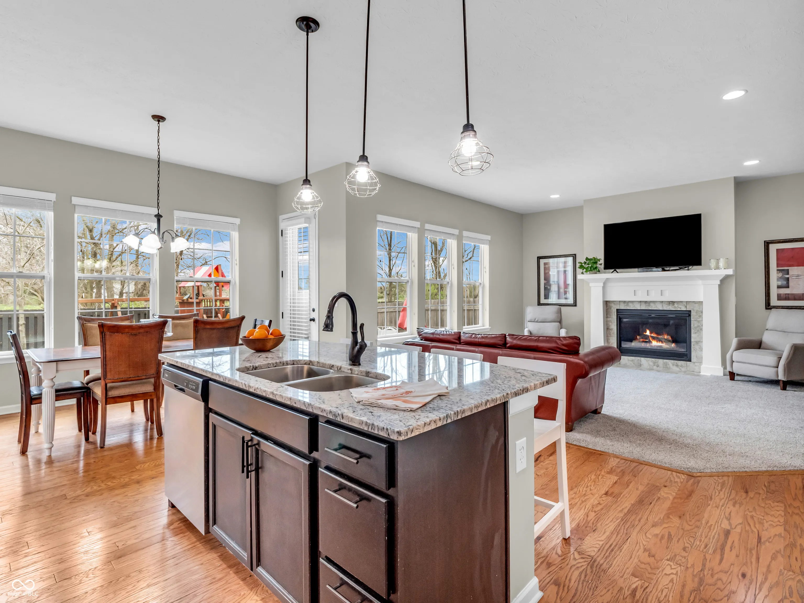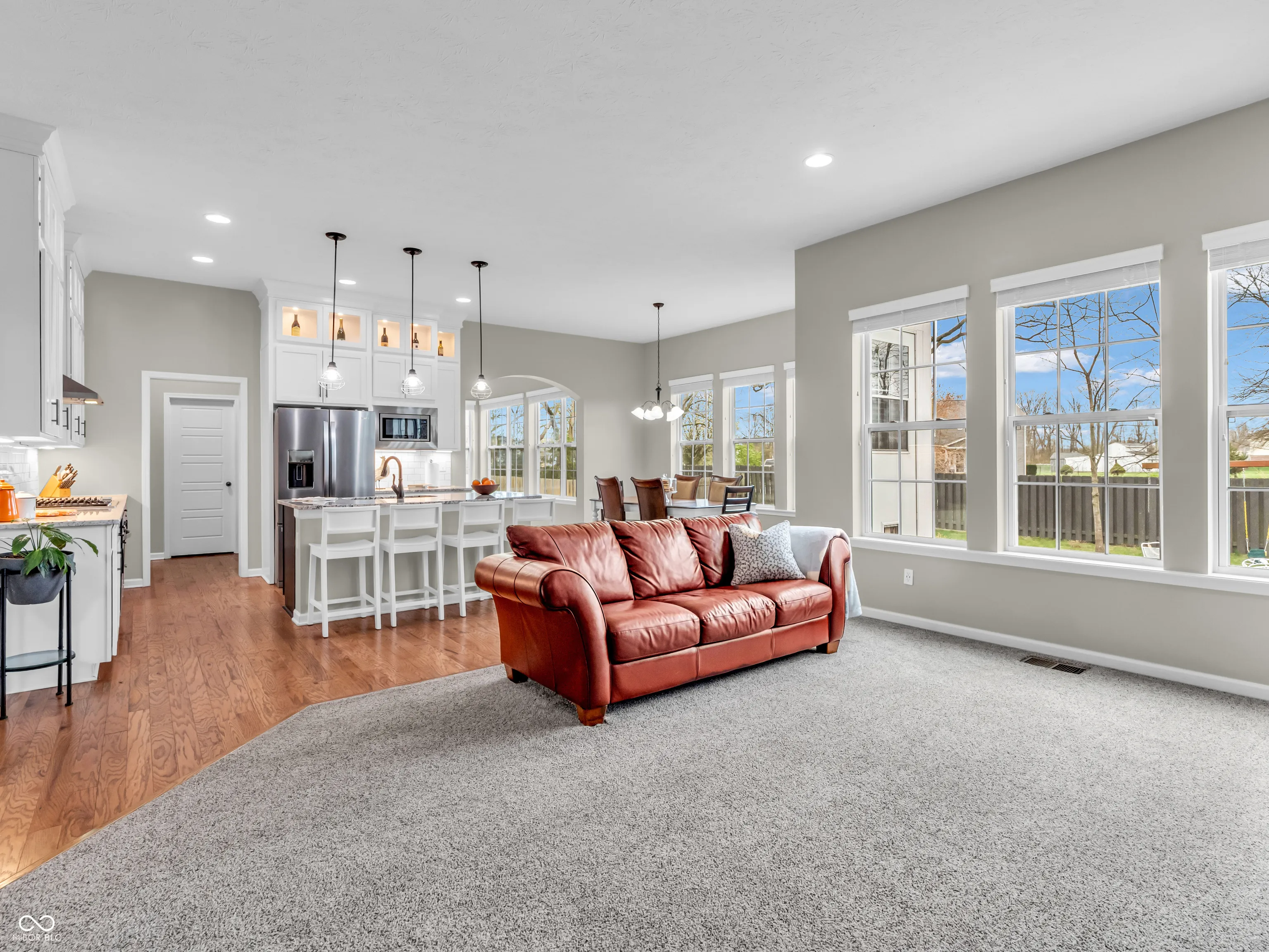 Step into this beautifully crafted Estridge-built home in the highly desirable Anderson Hall community-where timeless design meets modern comfort. The heart of the home is a chef-inspired kitchen featuring granite countertops, tile backsplash, ceiling-height cabinetry with lighted uppers, and a spacious walk-in pantry with custom shelving. Flooded with natural light and elevated by rich hardwoods and 10′ ceilings, the open layout seamlessly connects the kitchen to the breakfast room, sunroom, and inviting great room with gas fireplace-ideal for entertaining or simply relaxing at home. A dedicated first-floor office with plush carpeting offers the ideal work-from-home retreat, while upstairs, 4 light-filled bedrooms provide peaceful private spaces. The updated laundry room adds everyday elegance with custom cabinetry, a utility sink, stylish tile backsplash, and sleek flooring. Don’t miss the spacious 3-car garage, large back hall storage closet and custom boot bench with cubbies! Downstairs, the finished basement is a true extension of the home, complete with 9′ ceilings, a stylish wet bar, built-ins, a full bath with walk-in shower, a fifth bedroom, and a flexible exercise area. (New tankless water heater in 2024!) The covered front porch is ideal for morning coffee or evening sunsets. Out back, enjoy the patio and fenced yard against the peaceful backdrop of a nearby horse farm. Anderson Hall residents enjoy exclusive access to community amenities, including a pool, clubhouse, and playground-all just minutes from shopping, dining, and vibrant downtown Fishers. 10603 Hinterland Drive is the perfect blend of luxury, coziness, and convenience. Welcome home!
