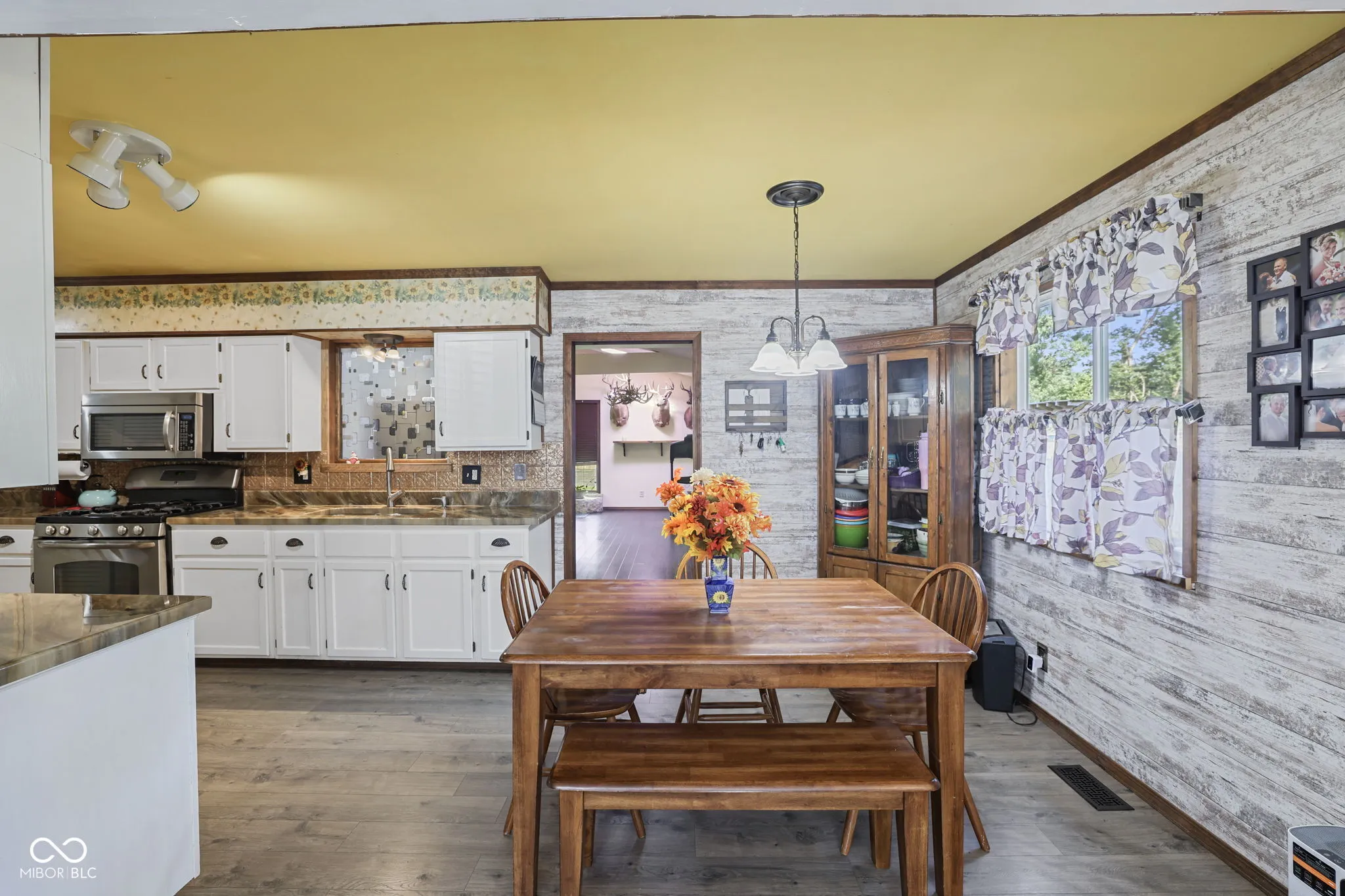 Nestled at the end of a quiet dead-end street, this immaculate 3-bedroom, 2-bath home sits on three spacious lots, offering privacy, space, and plenty of charm. With numerous updates already completed, this home is move-in ready and full of features to love. Step inside to a cozy living room that flows into a beautifully updated kitchen featuring under-cabinet lighting, ample countertop space, and stainless steel appliances that remain with the home. The large back family room boasts a stunning masonry wood-burning fireplace, vaulted ceilings, and skylights, creating a warm and inviting atmosphere perfect for gatherings. Out back, enjoy a large deck ideal for entertaining, a fully fenced backyard, and two mini barns for all your storage needs. The detached garage has been thoughtfully converted into a workshop, accompanied by a 2-car carport and a blacktop driveway. Another highlight includes a brand-new metal roof installed in June 2025, offering peace of mind for years to come. Don’t miss this rare find that combines comfort, updates, and space.