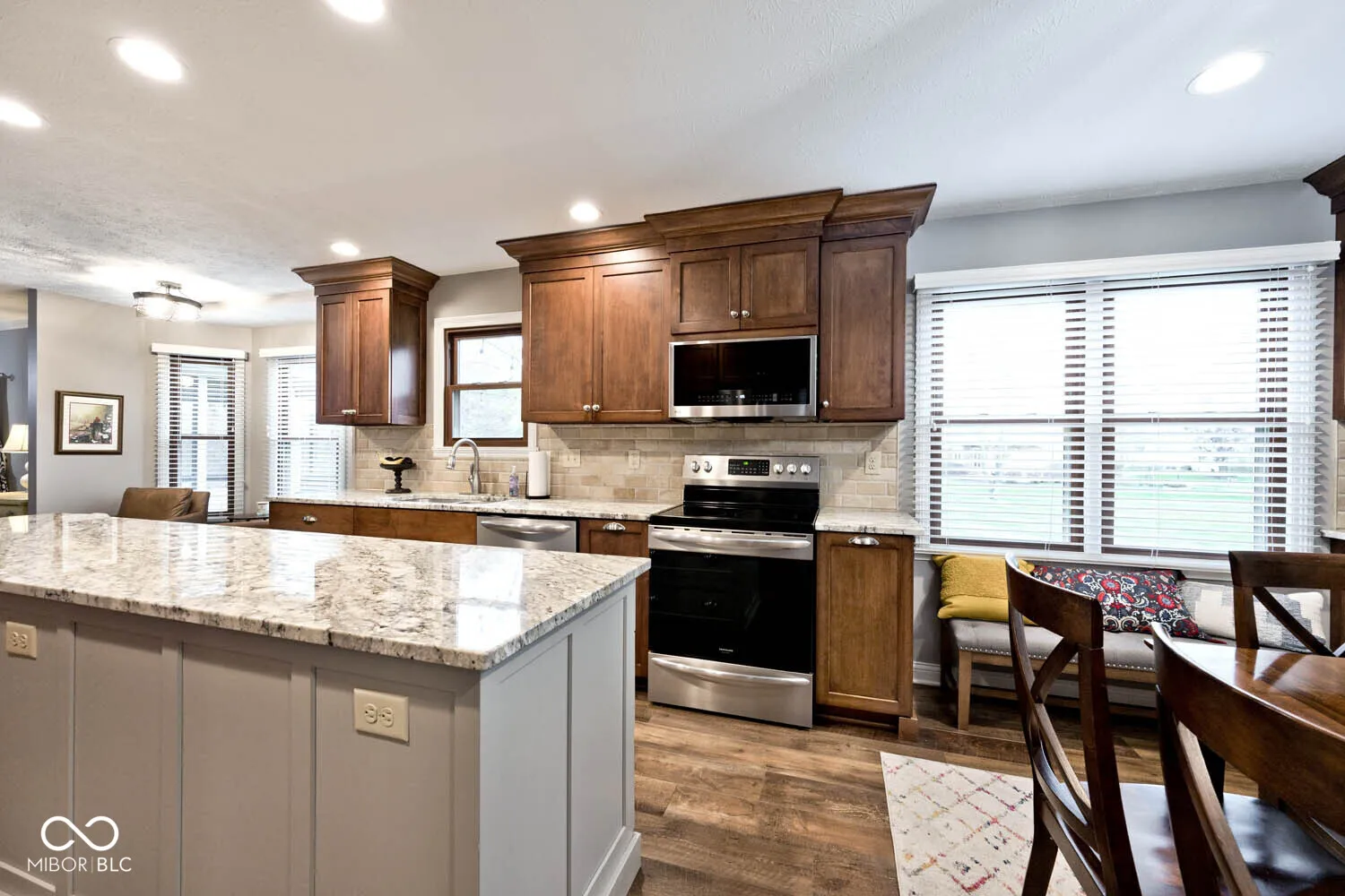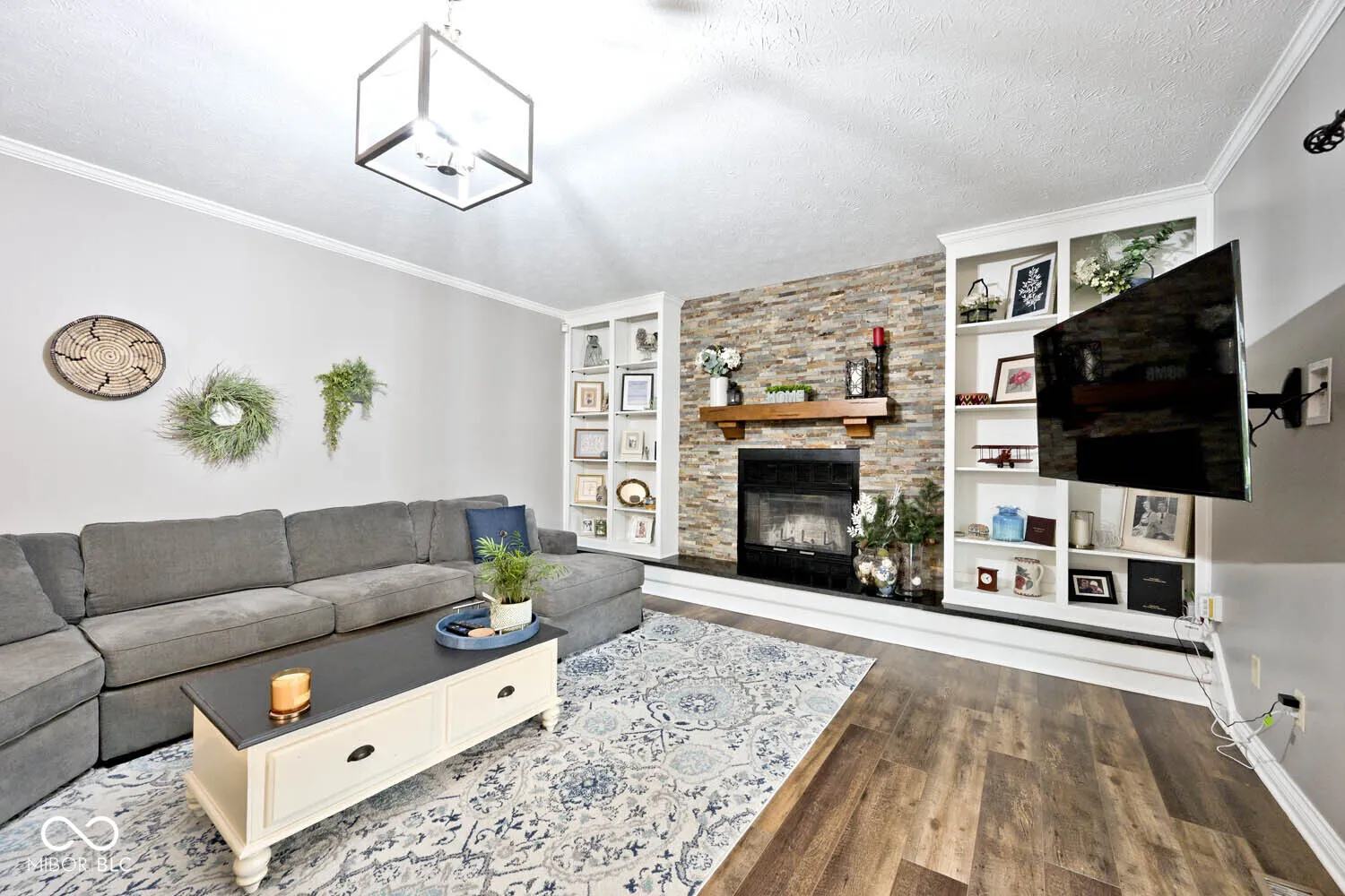 Beautiful Custom-Built, 4 Bedroom Home in the Desirable Moorings Neighborhood. This Attractive Brick and Fiber Cement Siding Home Sits on a Sizeable, Appealing Lot, featuring a Spacious Screened Porch with Lighting and Ceiling Fan, an Aggregate Patio that is Fantastic for Entertaining, Plenty of Grassy Area for Family and Sporting Activities, and also a Back Yard Basketball Court! Once You Enter the Home, You’ll Notice the Open Concept and See Many of the Recent Interior Updates. Some that Stand Out are the Complete Kitchen Remodel in 2019, Featuring Custom Amish Cabinets and Island, Granite Kitchen Counters with Tile Backsplash, Stone Fireplace with New Mantle, Custom Black Stone Hearth, Luxury Vinyl Plank Flooring on the Entire First Level, New Light Fixtures and Canned Lights on Much of Main Level, Custom Wood Blinds Throughout the Home, and Whole House Interior Painting. On the 2nd Level, 4 Spacious Bedrooms with Ceiling Fans Await, as well as Primary Bathroom Updates such as New Paint, Newer Double Vanity with Granite Top, and an Enlarged Primary Shower with Newer Tile Walls & Floors! In Addition, the Updated Hallway Full Bathroom Received a $15,000 Update in 2016. Enjoy the Partially Finished Basement, with a 23′ by 13′ Carpeted Bonus Room with a Closet, Daylight Window, and also the Laundry/Utility Area on the Other Side of the Basement, which has a Huge Amount of Storage Area. Many Additional, Important Upgrades to the Home Include: New Concrete Driveway, Front Porch and Front Steps, and Complete HVAC System (2024), Aggregate Concrete Custom Patio (2023), Front Door, Sliding Patio Door, Garage Service Door (2017), and All New Windows & Screens (2010). Enjoy the Community Pool, Tennis/Pickleball Courts, and Kayaking and Fishing on the 7 Acre Community Lake. Easy Access to Walking Paths by Geist Reservoir, and a Nearby Drive to The Yard at Fishers District, Castleton, Restaurants and Shopping on 96th Street, and I69/I465. Come See This Wonderful Home!