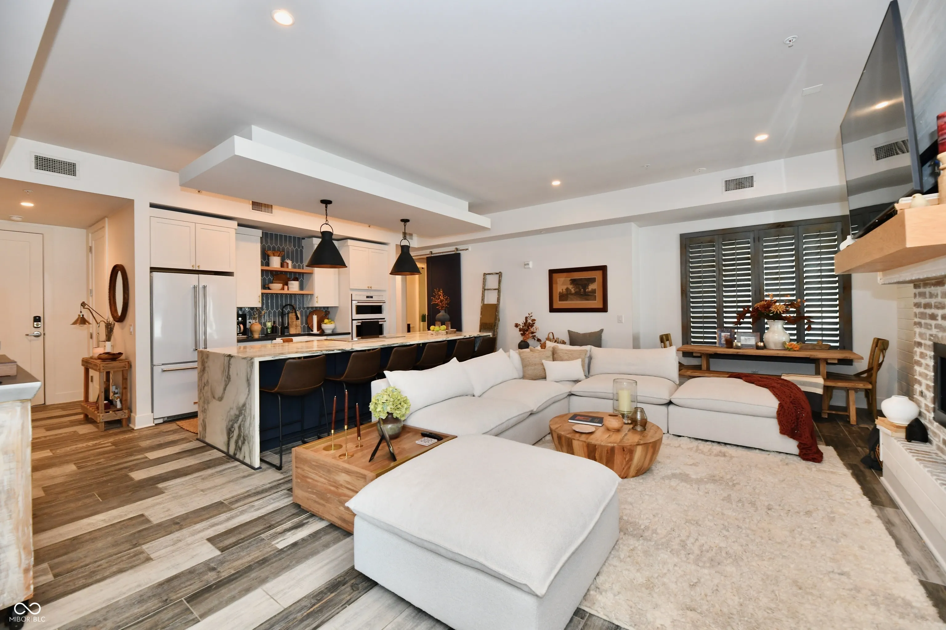 Location, Location, Location! Two parking spaces so you never have to park on the street again! Don’t miss this classy, gorgeous 2 bedroom 2 bath condo on Park Ave. Windows galore, two balconies, gas fireplace, waterfall island with seating for 6 and high-end white Kitchen Aid appliances, new tile backsplash and counters. Reclaimed wood shutters offer privacy in living space. Primary bedroom has its own balcony, large walk-in with 3 levels of closet design to maximize storage. Primary bath offers dual sink vanity and huge tile shower. Guest bedroom with large walk-in closet. Laundry is located across from master and has sink and storage cabinet. Lower HOA fees. Walk to Mass Ave restaurants and Coke Bottling. Sidewalks, streetlights, secure building and parking make this one not to miss!