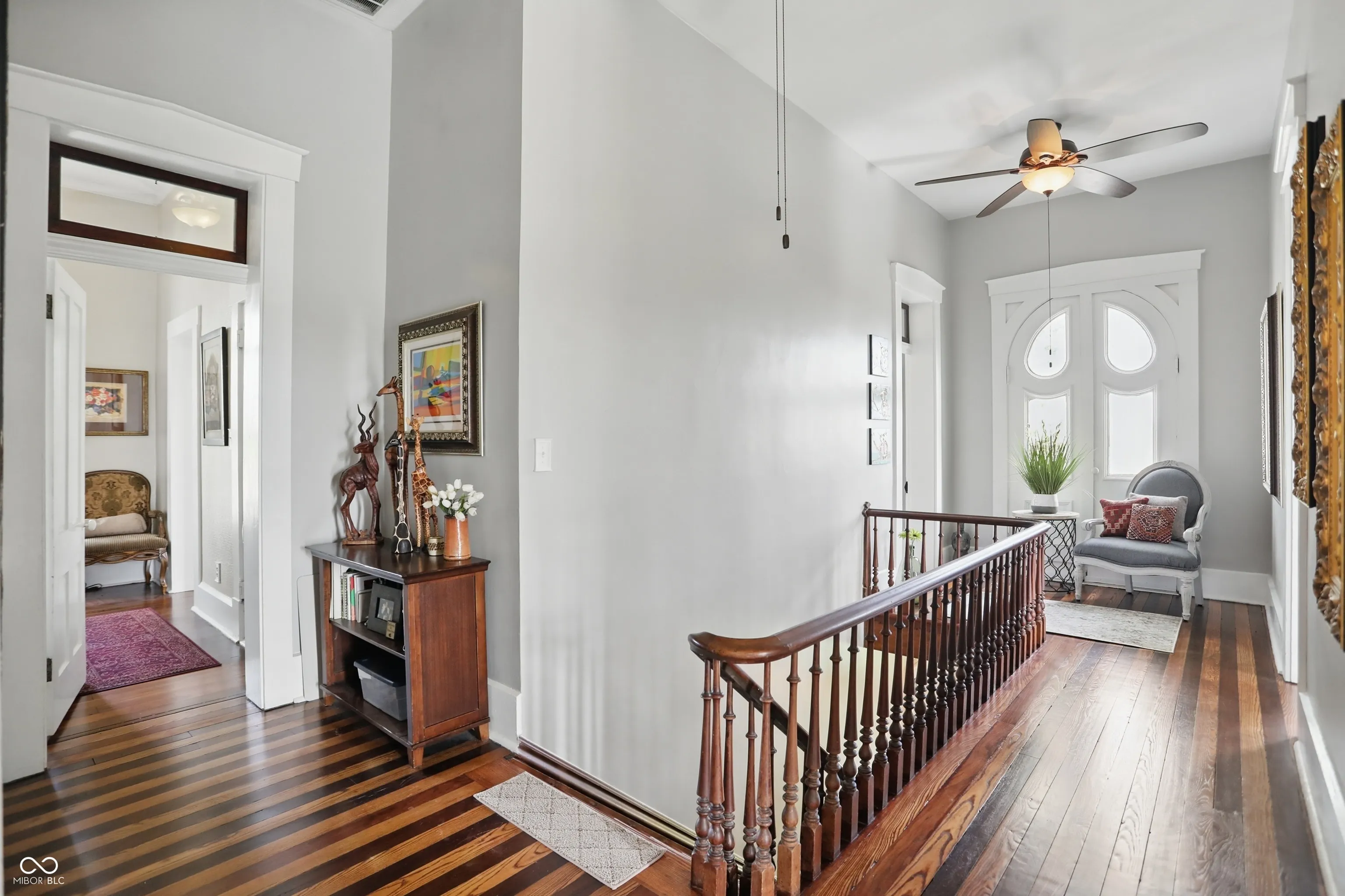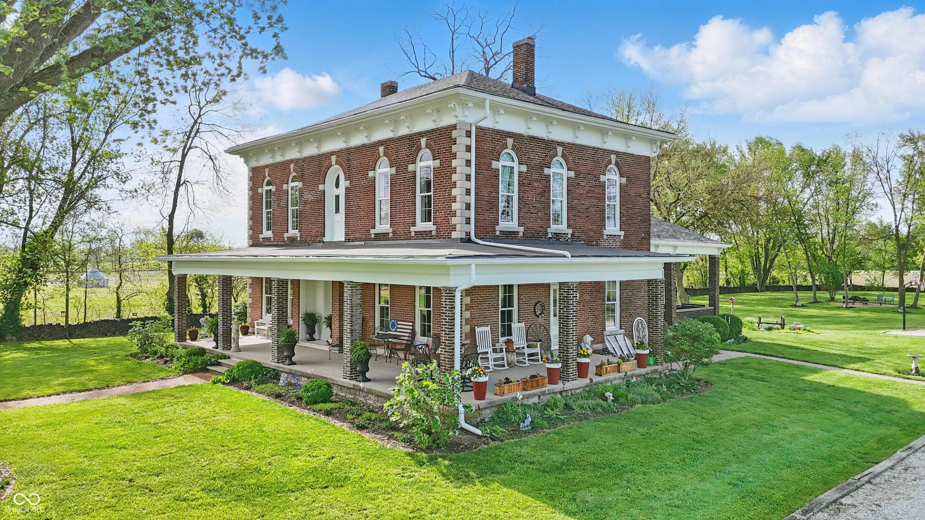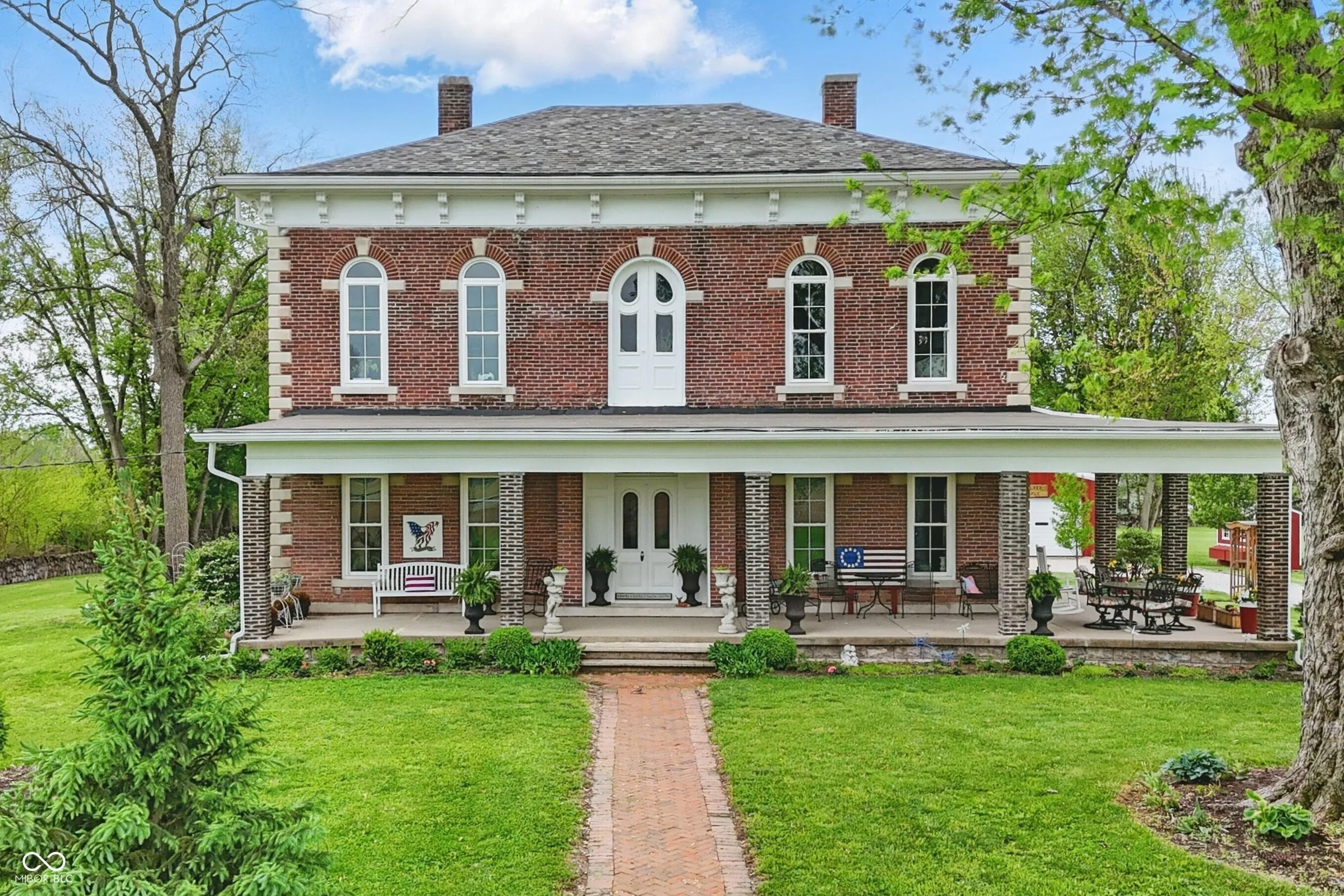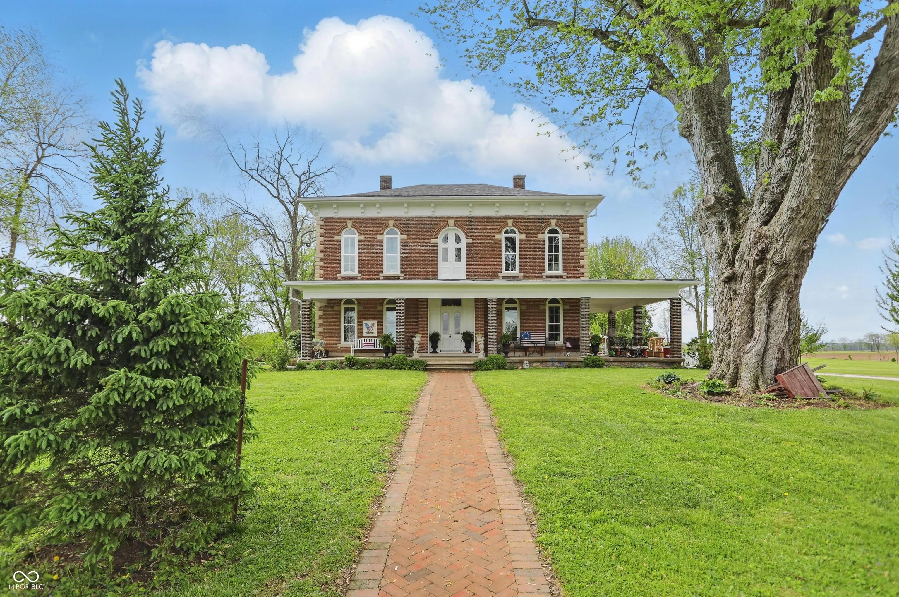 Step into one of Indiana’s most distinctive homes-an authentically restored Italianate masterpiece that blends timeless craftsmanship with modern comfort. Built with double layers of solid brick on both the interior and exterior, this architectural gem showcases soaring ceilings, original poplar hardwood floors, and exquisite woodwork throughout. Rare tigerwood floors-crafted from ash and cherry-adorn the main level and upstairs hallway, fully restored to their original beauty. A Juliet door with teardrop windows adds historic charm upstairs, while wood from a former octagon barn has been repurposed throughout the home, both inside and out. Intricate trim around the doors and windows reflects a level of artistry rarely seen today. The kitchen is a centerpiece, featuring exposed brick, reclaimed barn wood, and a passthrough to the dining room. A sun porch off the kitchen offers a peaceful space surrounded by large windows. The reclaimed wood-built pantry continues the rustic elegance with barn wood shelving. Outside, enjoy four unique gardens-vegetable, herb, flower, and a tranquility garden-along with a custom firepit area made from the same reclaimed wood. There’s even a charming chicken coop/potting shed. Fruit trees (apple, peach, pear, cherry, plumcot), plus raspberry and blackberry bushes, offer seasonal harvests. A new patio bordered by herbs invites outdoor dining and relaxation. A restored brick path leads to the front door, and a custom wood fence, built from trees harvested on-site, ties the landscape together. The basement includes multiple rooms for crafts, canning, and storage. Recent updates include a new roof, gutters, windows, and doors, as well as upgraded plumbing, electrical, lighting, and a high-efficiency water heater. Two geothermal systems and two private wells ensure energy-efficient, sustainable living. This is not just a home-it’s a piece of Indiana history brought beautifully back to life.