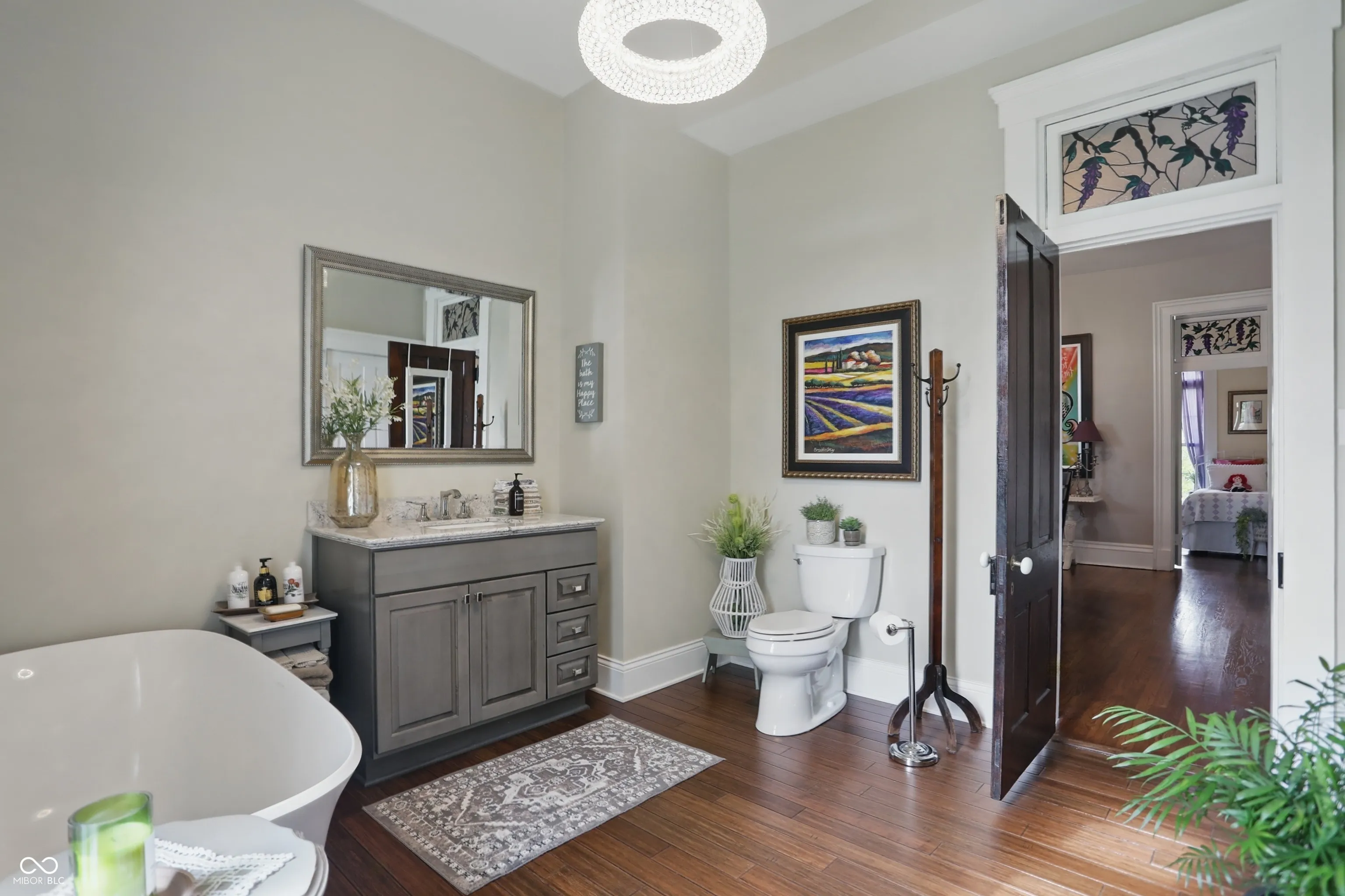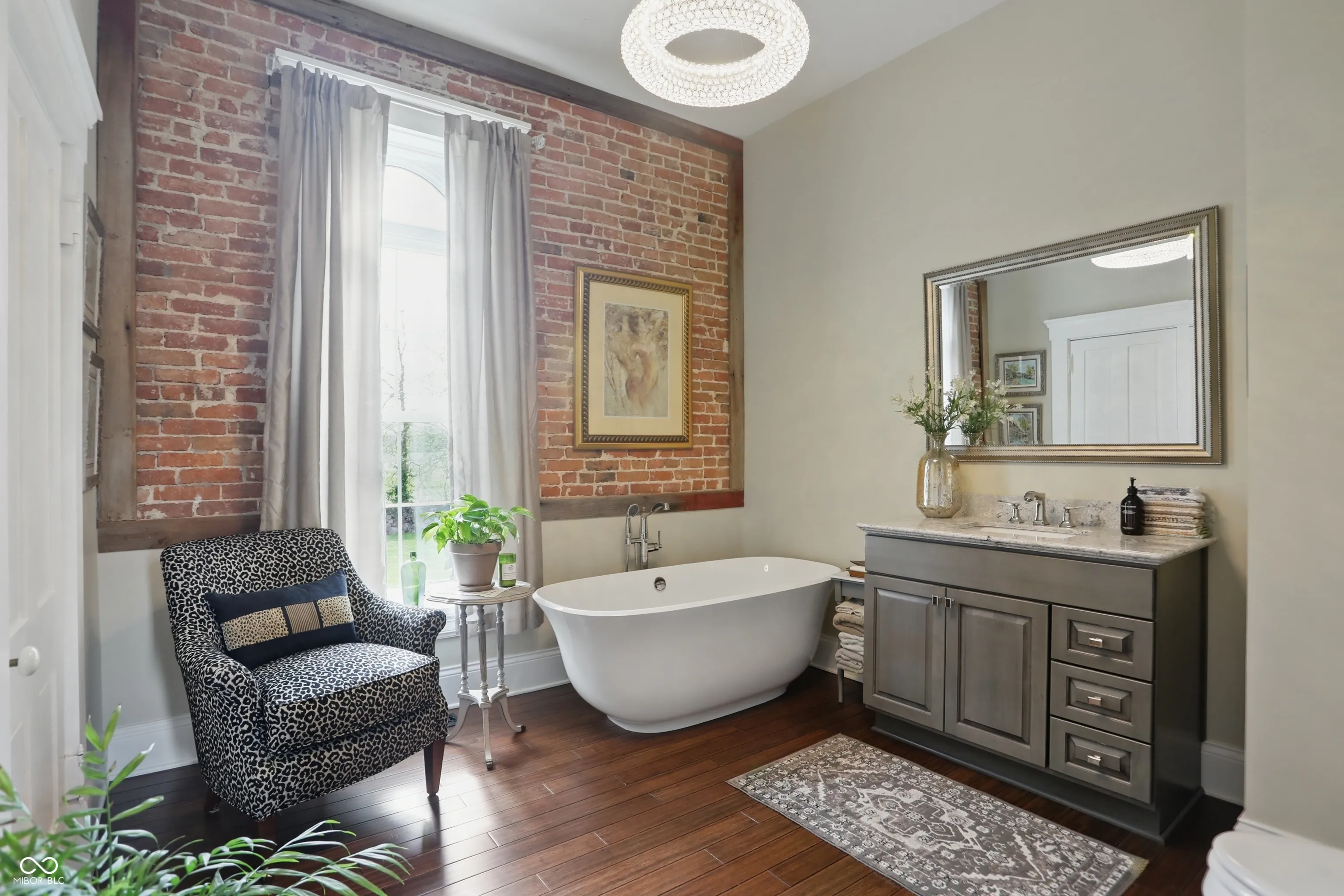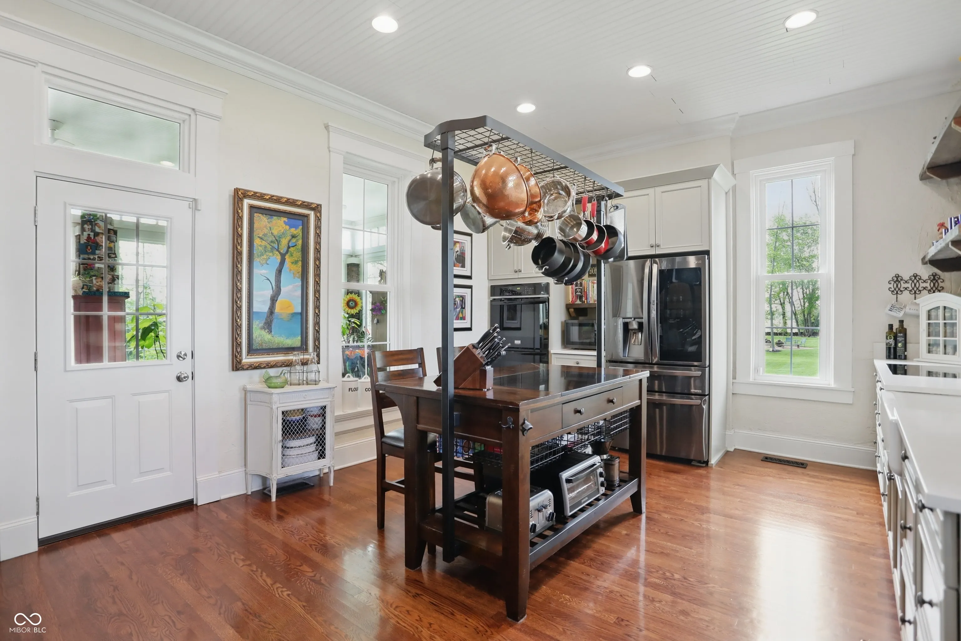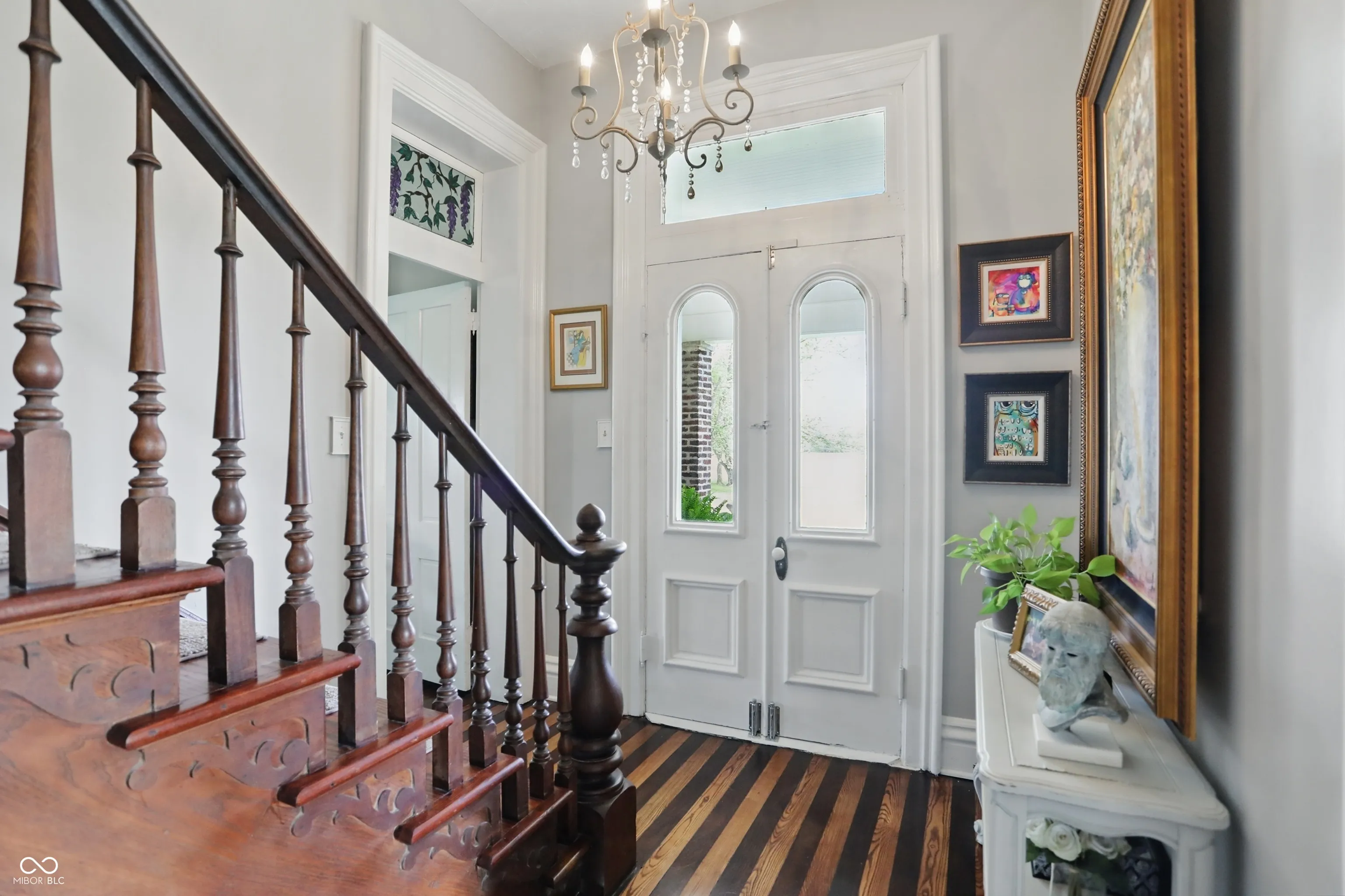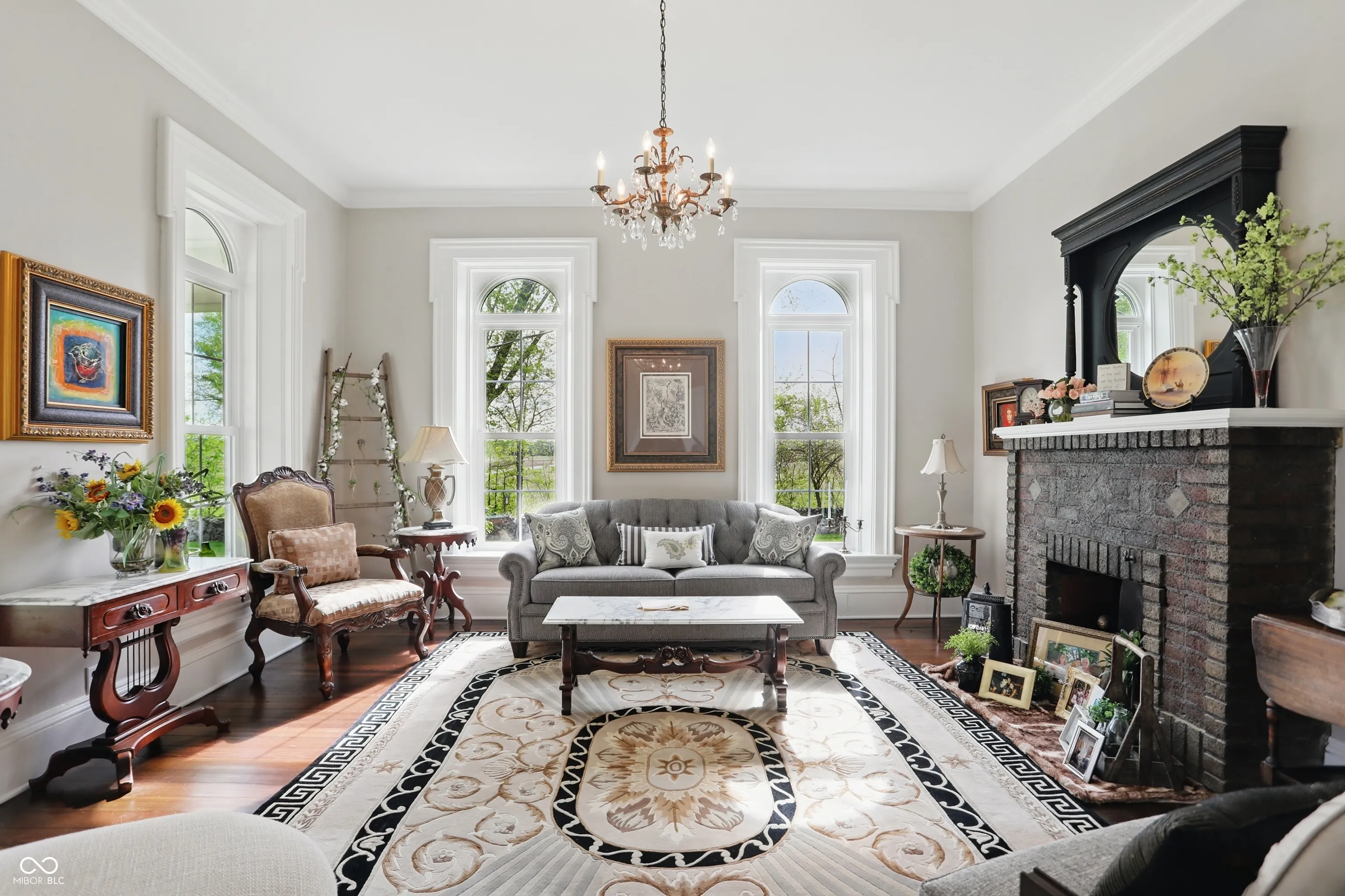 Step into one of Indiana’s most distinctive homes-an authentically restored Italianate masterpiece that blends timeless craftsmanship with modern comfort. Built with double layers of solid brick on both the interior and exterior, this architectural gem showcases soaring ceilings, original poplar hardwood floors, and exquisite woodwork throughout. Rare tigerwood floors-crafted from ash and cherry-adorn the main level and upstairs hallway, fully restored to their original beauty. A Juliet door with teardrop windows adds historic charm upstairs, while wood from a former octagon barn has been repurposed throughout the home, both inside and out. Intricate trim around the doors and windows reflects a level of artistry rarely seen today. The kitchen is a centerpiece, featuring exposed brick, reclaimed barn wood, and a passthrough to the dining room. A sun porch off the kitchen offers a peaceful space surrounded by large windows. The reclaimed wood-built pantry continues the rustic elegance with barn wood shelving. Outside, enjoy four unique gardens-vegetable, herb, flower, and a tranquility garden-along with a custom firepit area made from the same reclaimed wood. There’s even a charming chicken coop/potting shed. Fruit trees (apple, peach, pear, cherry, plumcot), plus raspberry and blackberry bushes, offer seasonal harvests. A new patio bordered by herbs invites outdoor dining and relaxation. A restored brick path leads to the front door, and a custom wood fence, built from trees harvested on-site, ties the landscape together. The basement includes multiple rooms for crafts, canning, and storage. Recent updates include a new roof, gutters, windows, and doors, as well as upgraded plumbing, electrical, lighting, and a high-efficiency water heater. Two geothermal systems and two private wells ensure energy-efficient, sustainable living. This is not just a home-it’s a piece of Indiana history brought beautifully back to life.
