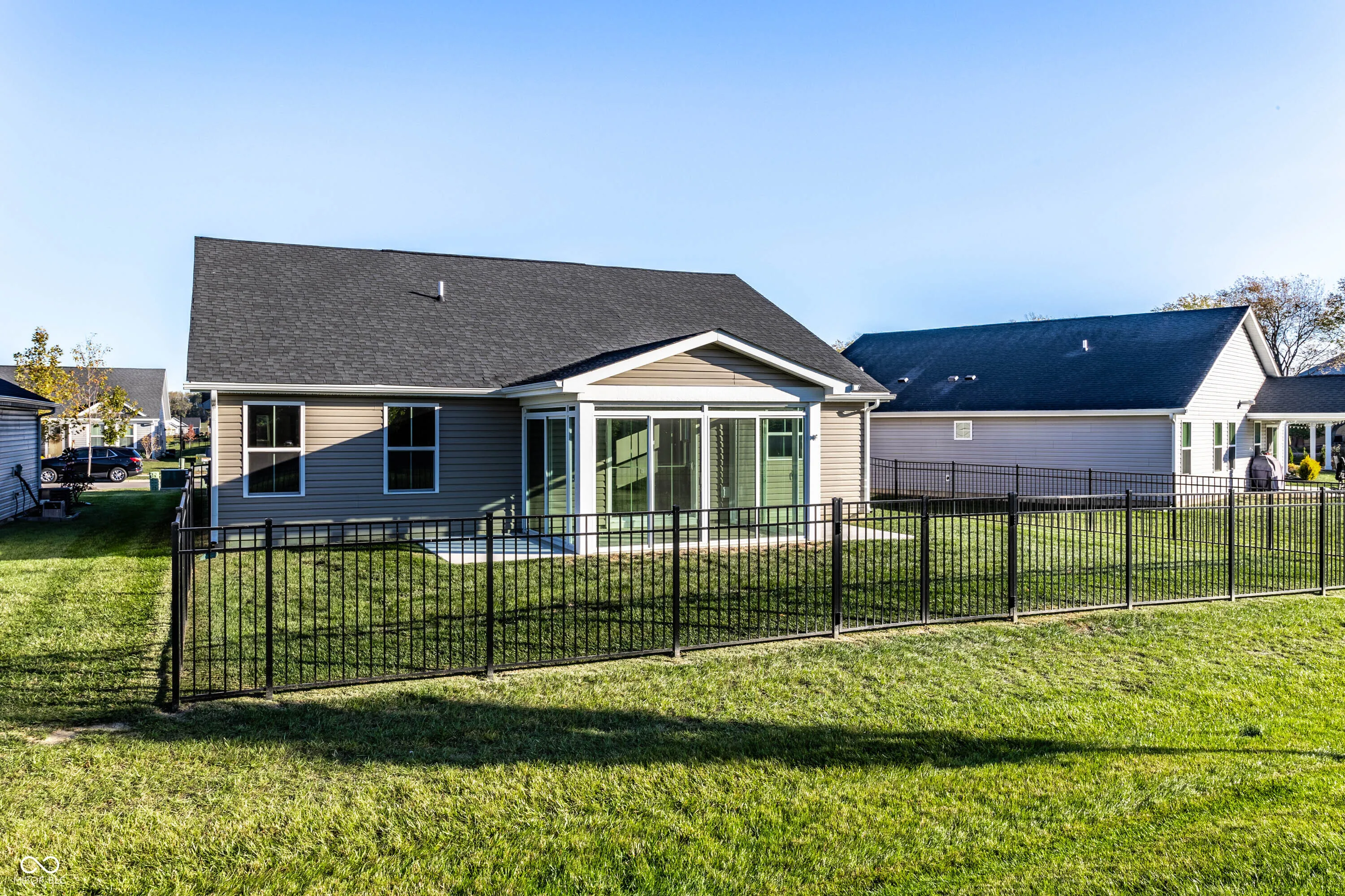 Welcome to this exquisite 2-year-old, low maintenance ranch home is the one you’ve been waiting for. The open concept coupled with the newly built enclosed glass patio, sliding doors and screens offers so many options for relaxing and entertaining. Enjoy morning coffee or grilling and chilling on one of the two added concrete patios and NO neighbors behind you. The owners added a 4 foot aluminum fence for additional privacy. The bright kitchen with granite island and counters offers all the builder upgrades! Stainless steel appliances, gas cooktop, satin nickel hardware, lots of natural light and a 2-year-old washer and dryer, plus a reverse osmosis system are all included! The primary suite is a dream with natural light, dual vanities, walk-in shower and oversized walk-in closet. All flooring has been upgraded to waterproof luxury vinyl plank. This home includes the remaining 8-year builder warranty! The low monthly HOA fee includes weekly lawn care and snow removal. Don’t miss your chance to live in the coveted Sunbrook Villa community!