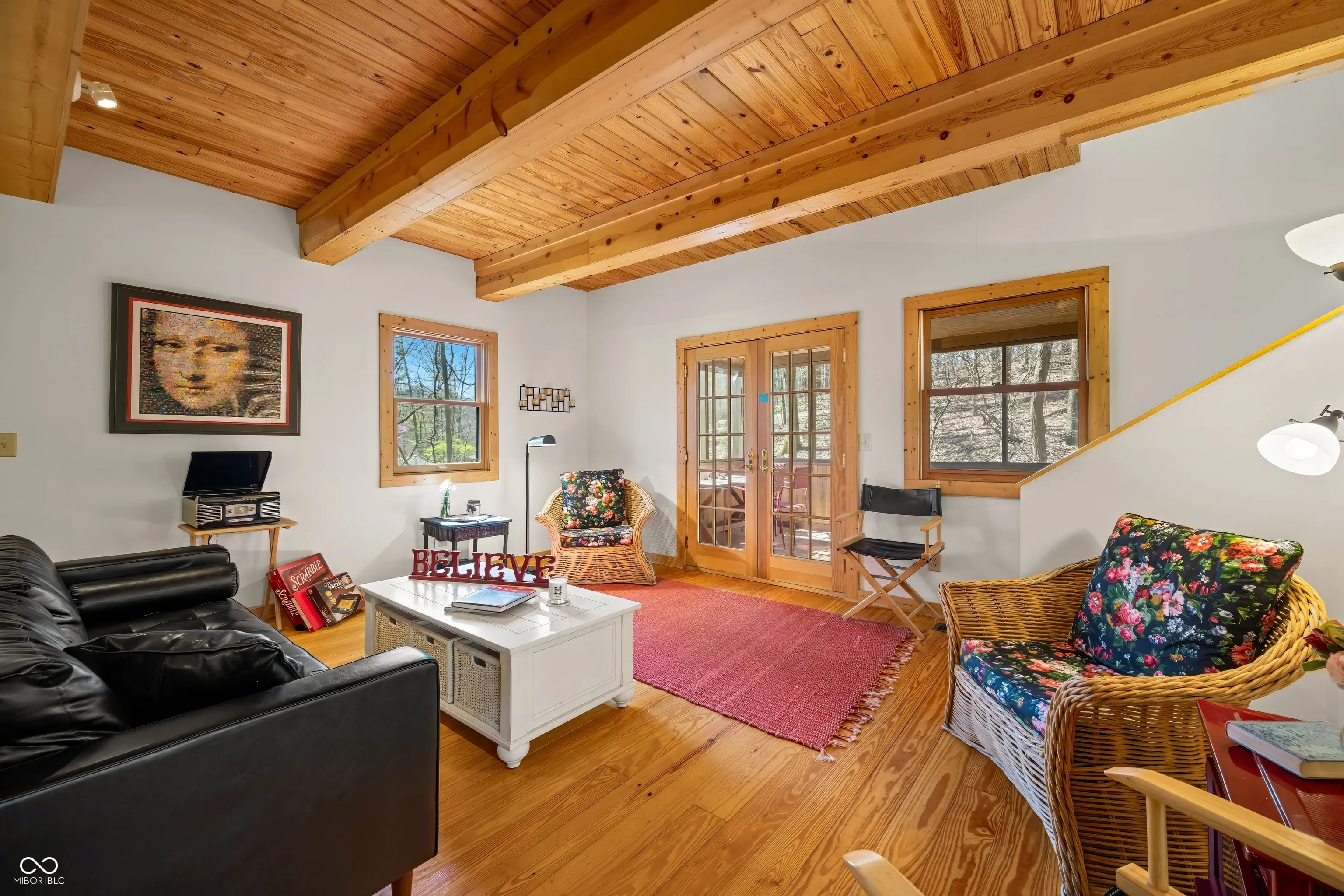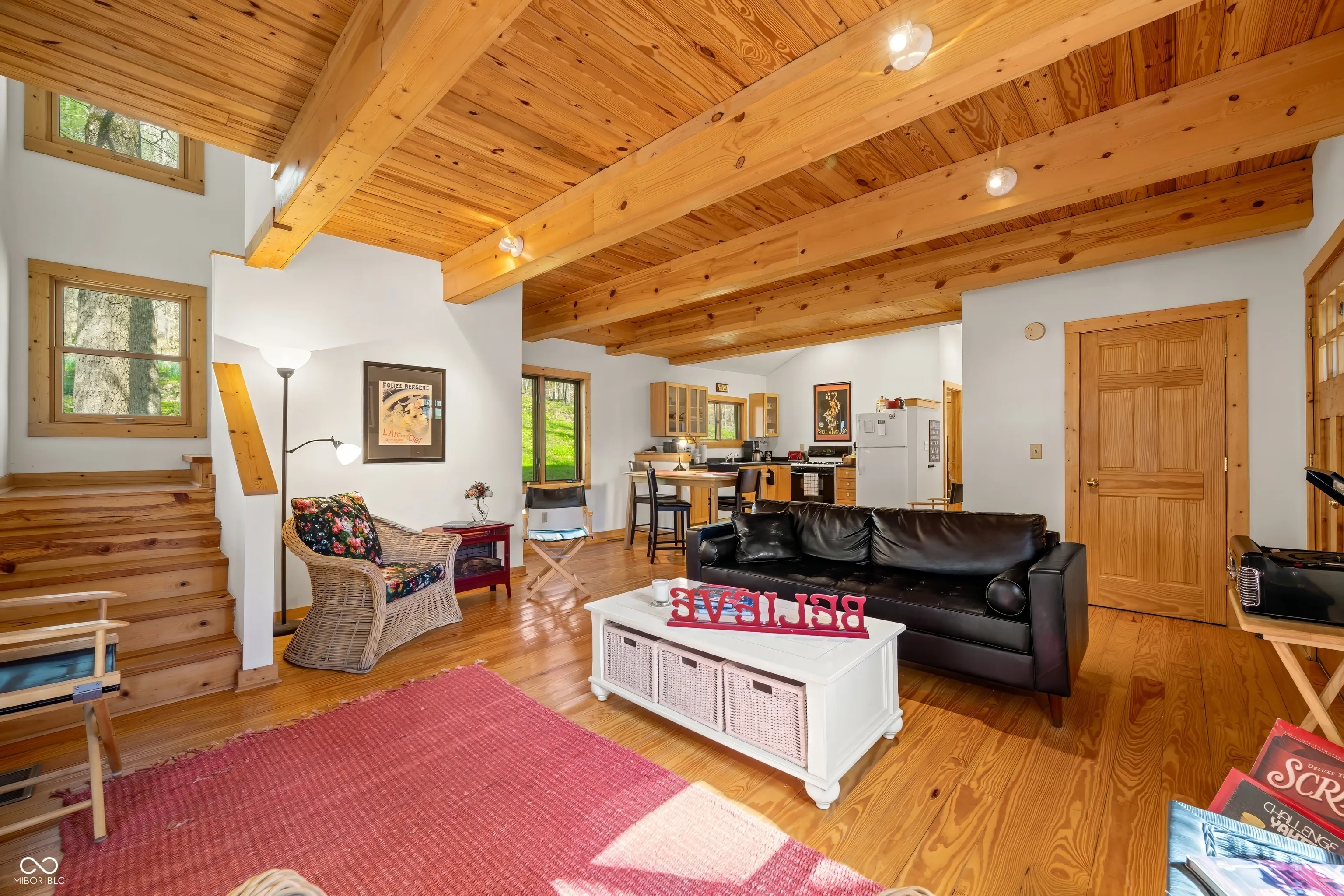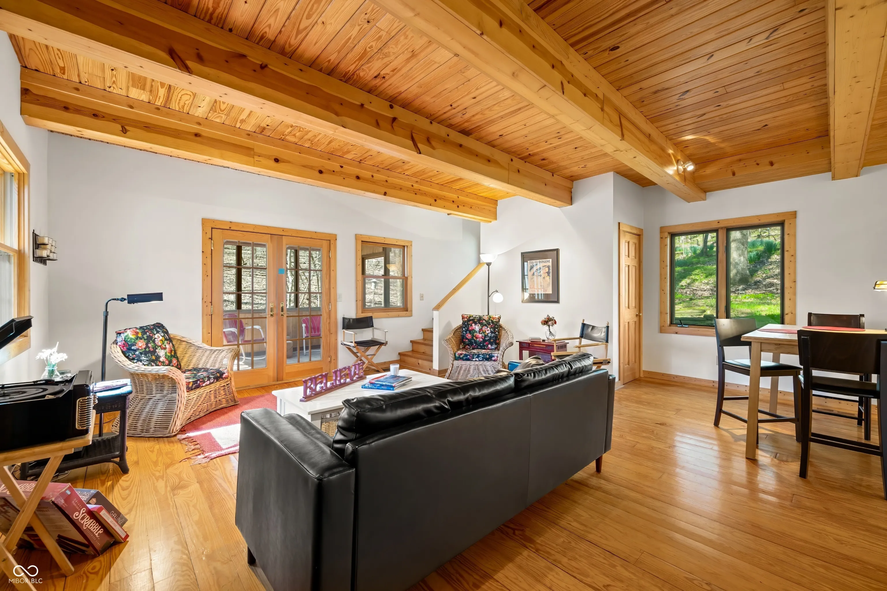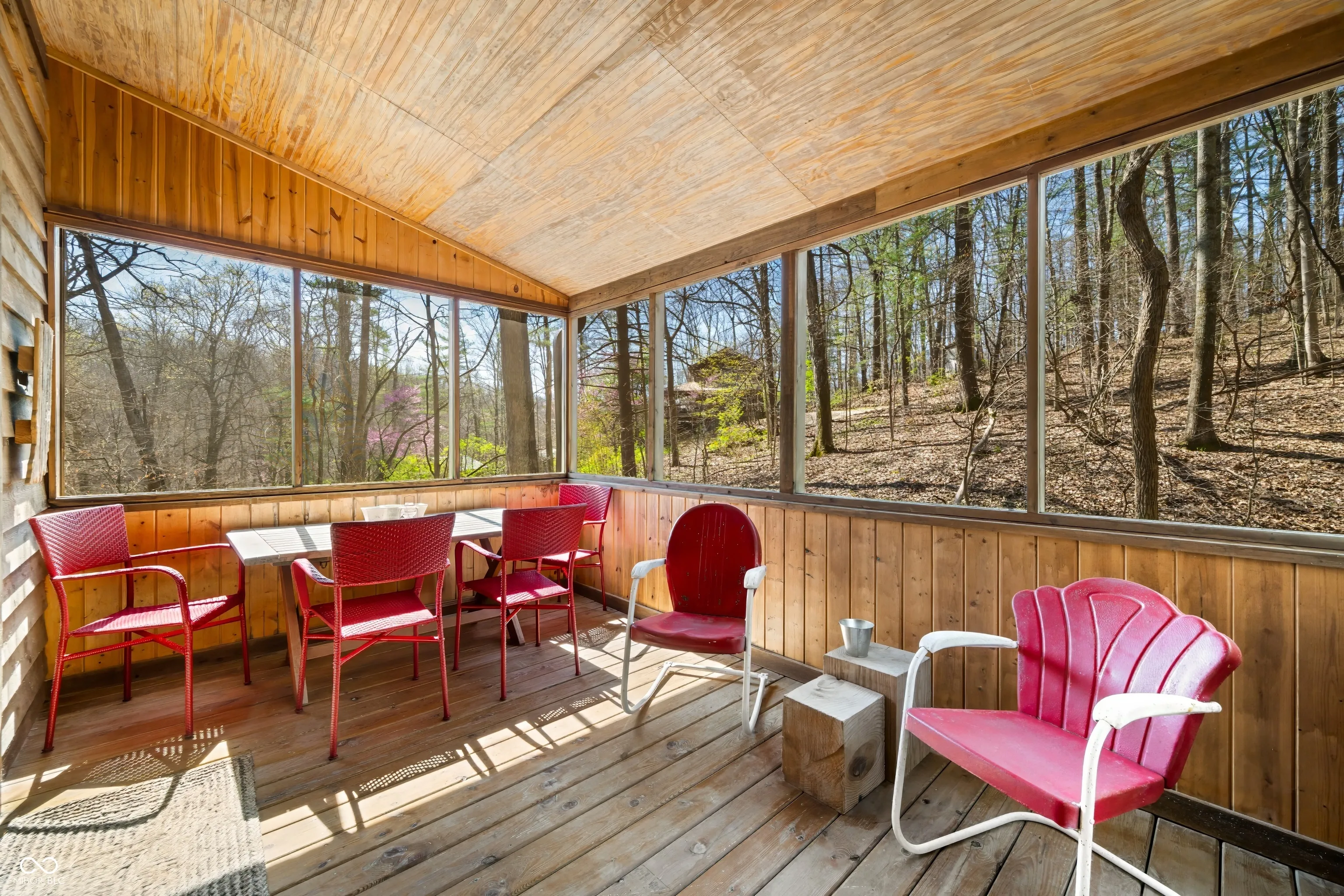 This is the one that you have been waiting for. Well maintained 2 bedroom / 2 bath home. Nestled in the woods and located on an easy to maintain two acre parcel just up the road from Yellowwood State Forest / Yellowwood Lake and positioned between Nashville and Bloomington. Wonderful place to get away from all the stresses of life and relax with nature. Inviting covered porch leads to the open living / dining / kitchen area for socializing and catching up friends and family. Well appointed kitchen with glass front cabinets, gas stove, dishwasher and refrigerator. All appliances included as well as furniture and housewares. Bright and light interior with recessed lighting. Raised ceilings. Pella windows. Solid six panel wood doors. Wood trim. Hardwood floors in most rooms. Spacious main level bathroom with tile flooring. The bonus room houses the washer and dryer and is set up for pantry and storage use. Nice sized bedroom on the main level. Primary bedroom upstairs with attached private bathroom with tub. The screened porch and wood deck provides ample space for grilling and eating outdoors. Warm up around the fire pit and roast a few marshmallows or enjoy your favorite snacks and beverages. Daffodils in the fenced back yard area help welcome in Spring along with bluebells in the front yard. The property is turn key ready. Make your appointment to see this beauty today!