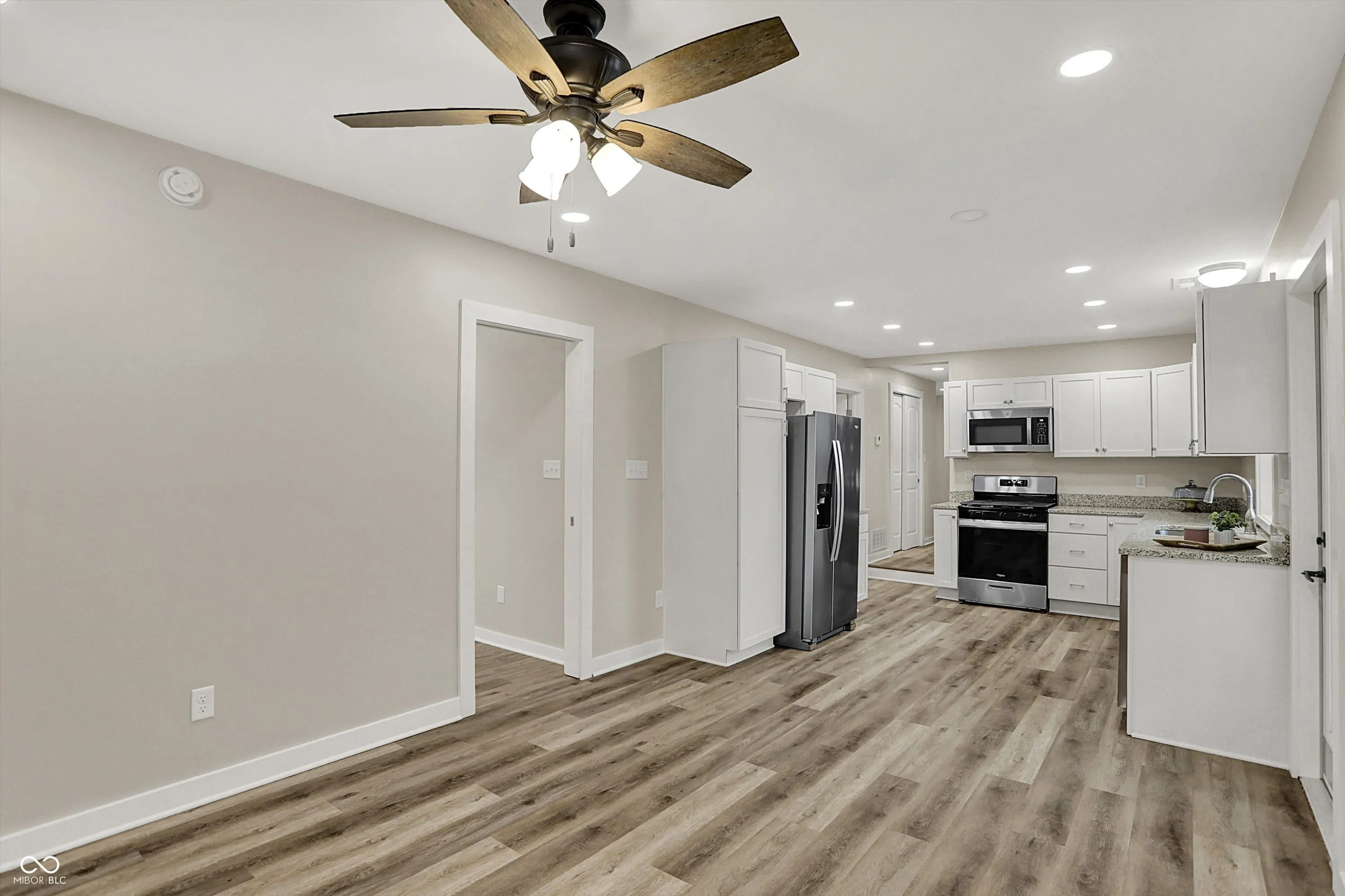 Looking for a home in New Palestine Schools with no HOA? Look no further, welcome home to 2264 Walnut Street! This beautifully completely renovated single-story home offers a seamless blend of modern features and comfort, with over 1,100 square feet of freshly redesigned space! Inside, everything has been touched and redone, including new flooring and paint throughout, ensuring a fresh start in every room! With three cozy bedrooms, including a large primary Ensuite, and two updated bathrooms, this home is move-in ready! The kitchen is a standout, featuring sleek granite countertops, all new kitchen cabinets and stainless steel appliances. You’ll love the generous corner lot, perfect for outdoor activities or simply unwinding on your new wood deck. Parking is easy and convenient with ample space available, adding to the home’s many conveniences. Updates galore! Including new windows, new roof, new electrical panel, new plumbing, new water softener, new doors and a new septic system, provide peace of mind! This home is a fantastic find for anyone seeking a truly move-in-ready home. Schedule a tour today and experience the effortless lifestyle waiting for you here!
