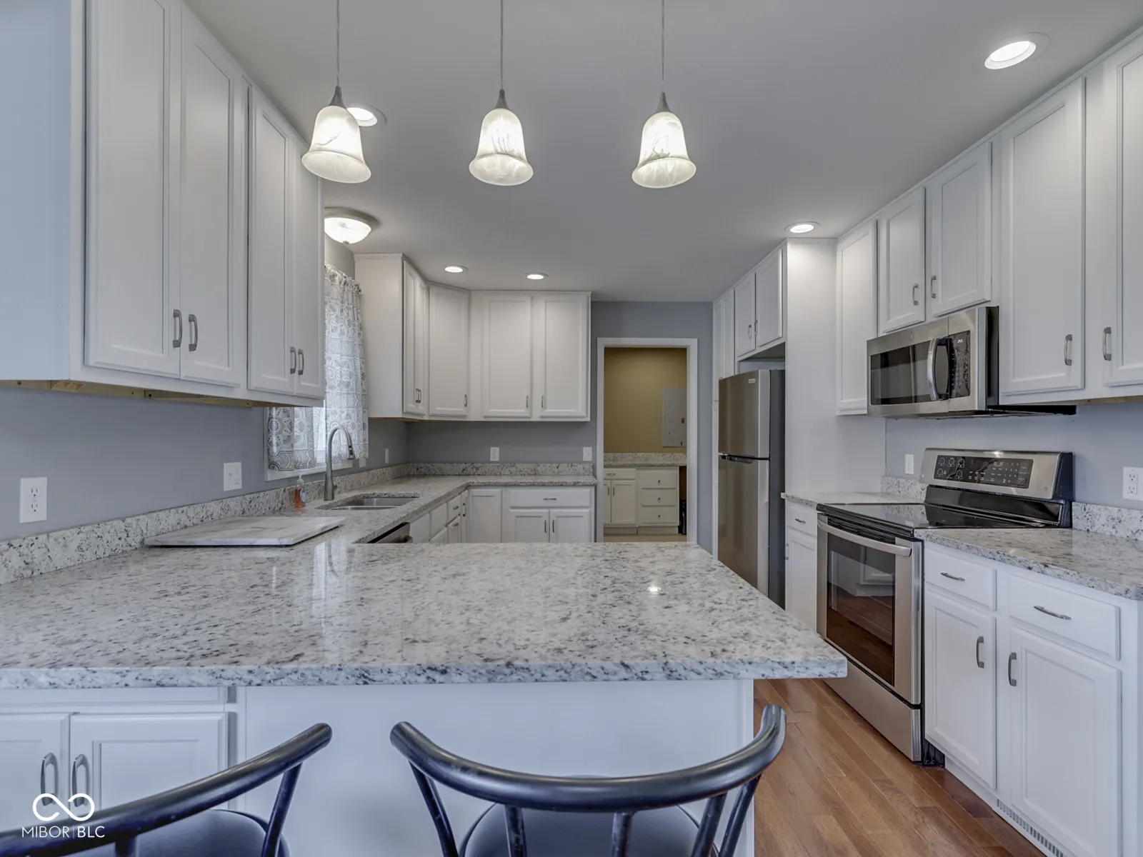 An attractive combination of stone and siding creates a lovely exterior for this spacious, 1,840 SF ranch home. Sitting quietly on a low traveled street just on the outskirts of town, you will find lots of surprises throughout as you enter from the covered front porch. The first surprise is the oversized great room with hardwood flooring expanding into the dining and kitchen areas. Speaking of kitchens, the next surprise reveals granite countertops, 48″ cabinetry, stainless appliances, breakfast bar and more. Attached to this space you will find a mudroom just perfect for dropping groceries, mail, coats or shoes. A convenient half bath is also just a step away. Ready for another surprise? The primary bedroom does not disappoint! It’s massive size not only will accommodate all of your furniture but there is enough space for an office, den or workout equipment. The huge walk-in closet and bath with step-in shower and dual sinks is all you will need. Two family bedrooms and a beautiful family bath are just down the hall. Everything in this home is less than 7 years old…EVERYTHING! The 2-car attached garage, .41 acre fenced lot and easy commute location makes this home right for now and in the future!