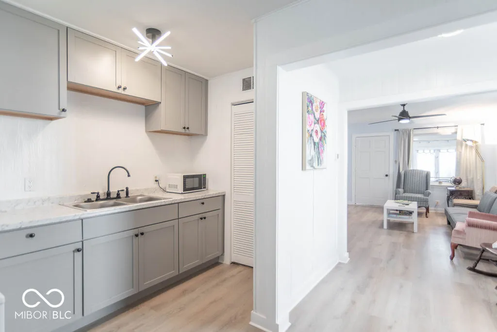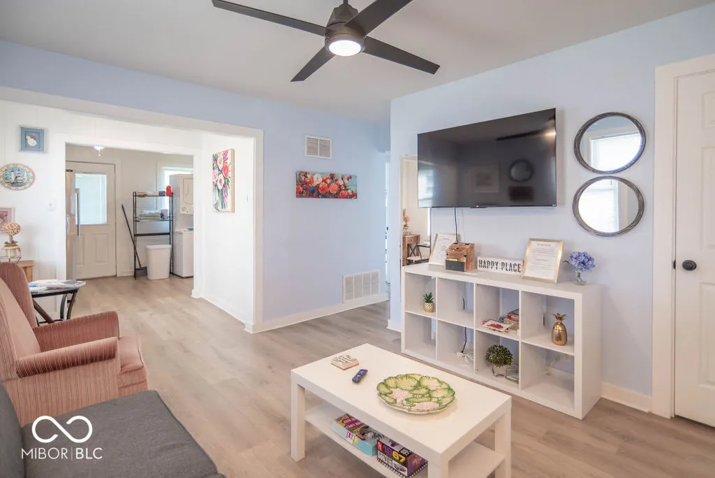 Updated and renovated! This delightful 1950s bungalow/shotgun home features 2 bedrooms and 1 bathroom of cozy living space. Set on a spacious lot, there’s plenty of potential for expansion or outdoor enjoyment. Ideal as a starter home, it offers a well-designed laundry room for added convenience and efficiency. The home also includes a charming barn for extra storage, a breezeway, and a combined dining and living room area, perfect for entertaining or relaxing. Close to downtown Indianapolis, I-70 and I-65.