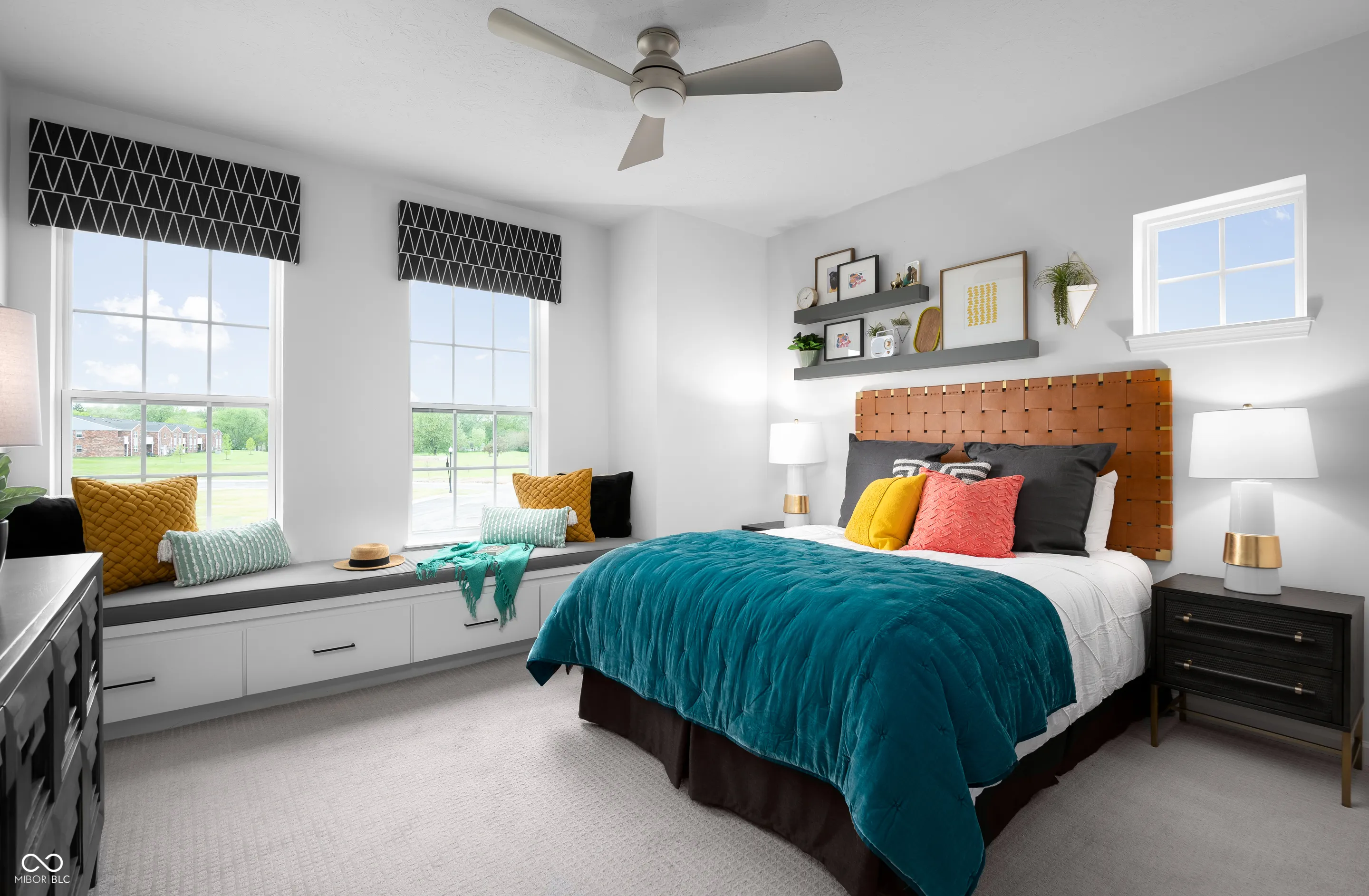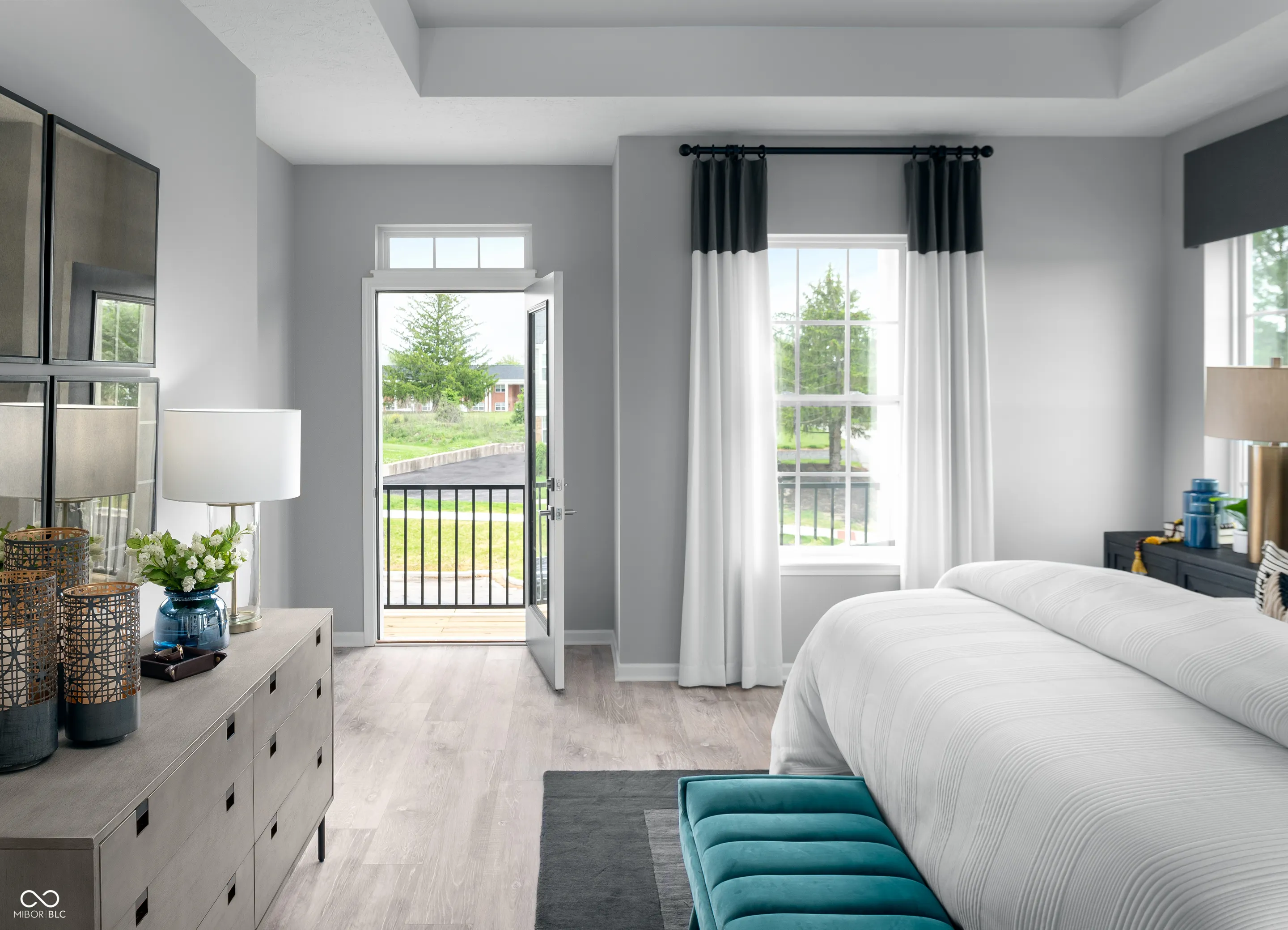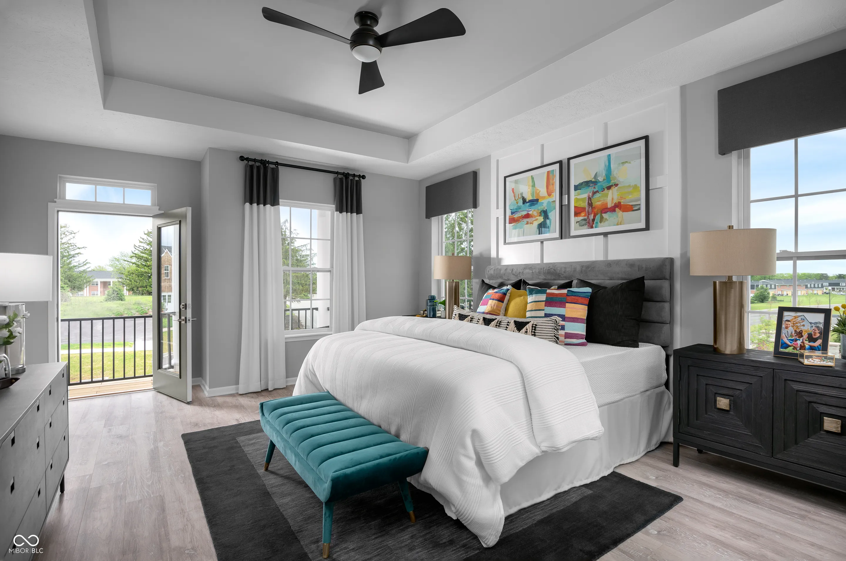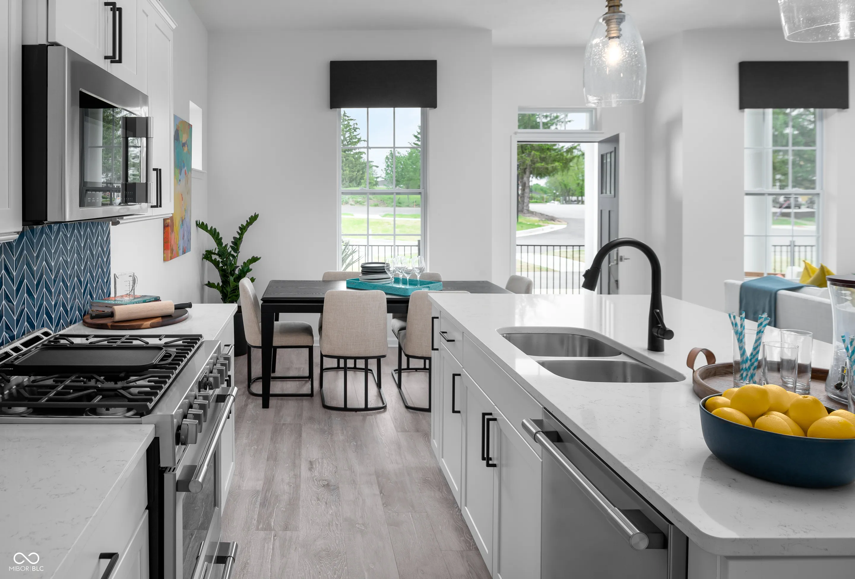 Beautiful, vibrant and filled with light model home in the heart of Carmel! This Startex floor plan will delight with 3 bedrooms, 2 and a half baths and a two-car 10′ ceiling finished garage. The garage comes with sound surround, extra lighting and windows with blinds, two remotes and one of a kind designer decorative faux brick wall. The spacious main level features 10′ ceilings and comes with an abundance of beautiful white quartz counterspace throughout and a large matching white quartz kitchen island to gather around with friends and family with great views throughout. This home features trendy kitchen cabinets, captivating kitchen backsplash, luxury laminate wood flooring in main areas, stainless steel appliances with gas range. Main bedroom comes with tray ceiling and a large balcony. Super shower, mini business/music center in the loft area and walk in laundry are just some of the additions. Our homes feature 9′ and 10′ ceilings throughout the entire home! Furniture and decor are included! There are too many upgrades to list! Come and see it asap! Community pool and a pool house are our top amenities, and you will be within walking distance to the Palladium, Monon Trail, Farmer’s Market, gourmet restaurants, Arts and Design District and all that downtown Carmel has to offer!