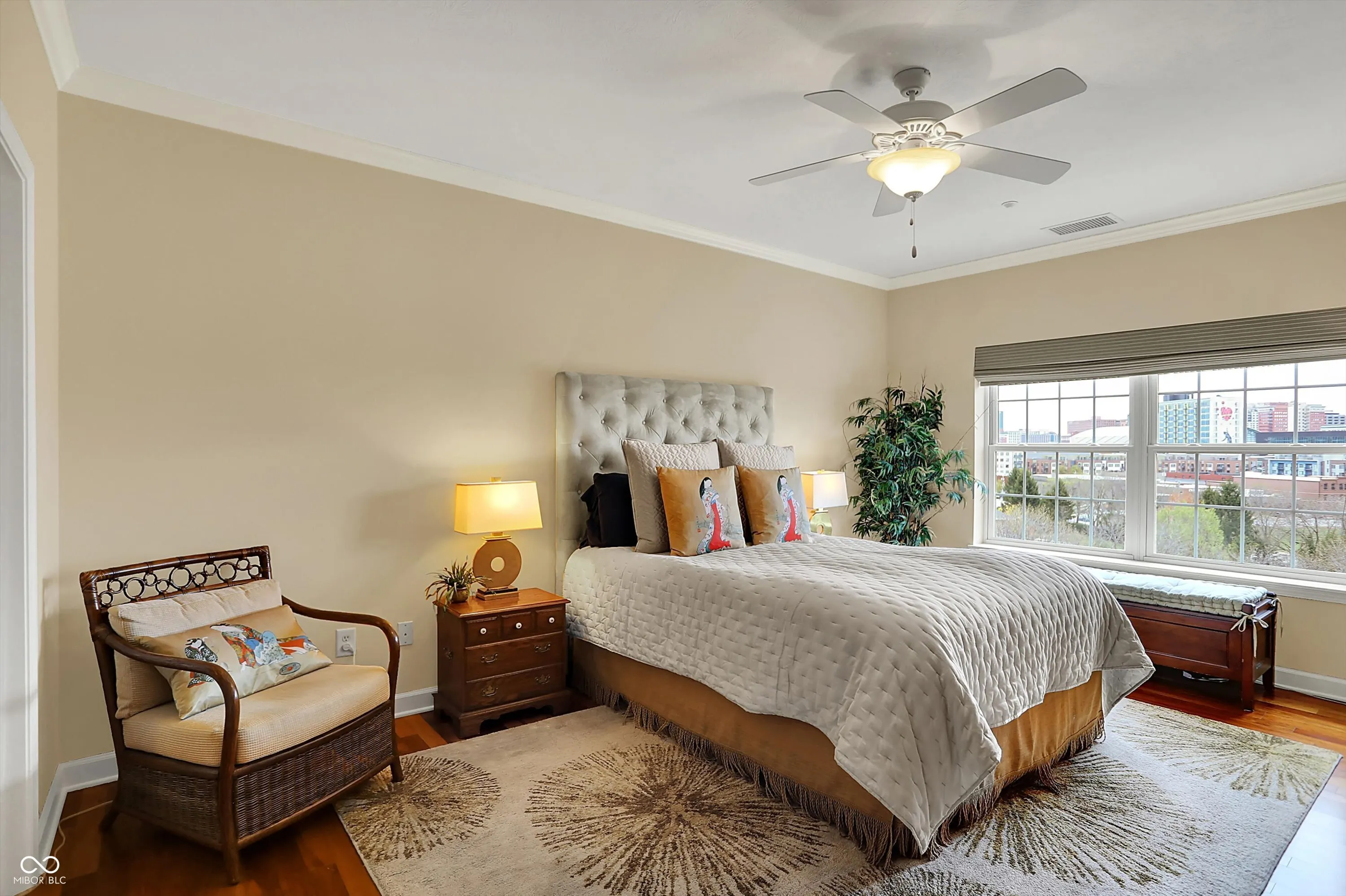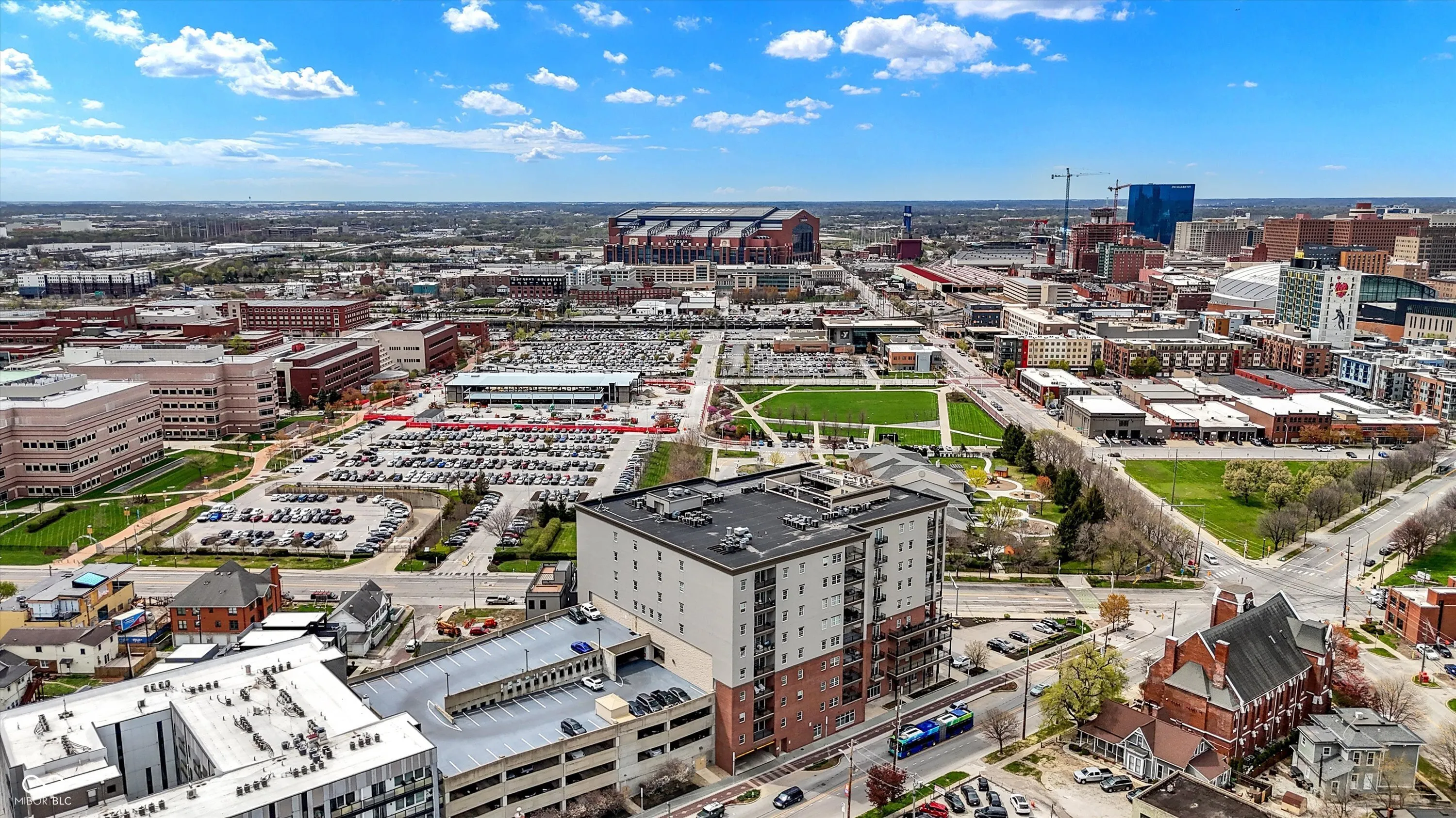 The views are amazing from here! Enjoy your beautiful condo downtown on the Cultural Trail, close to Lucas Oil, Gainbridge and all that downtown has to offer. One of the middle units has 3 bedrooms, 2 full baths, and a primary bedroom with spectacular windows to overlook the skyline. Hardwood floors throughout the living area and tile kitchen and bath floors. Walk in closets in two of the bedrooms. A large storage area with shelving located on the third floor next to the exit to your two parking spaces. Guest parking on the 4th floor. A fitness center on the 5th floor. Pick up and drop off dry cleaning located in the fitness center. Secure outdoor pool, hot tub and kitchen to enjoy. Spacious common areas. Hasuno restaurant, hair salon, dental office and Golo golf located on main level of this building. Protected mail room for all deliveries. Don’t miss the opportunity to see this great condo!