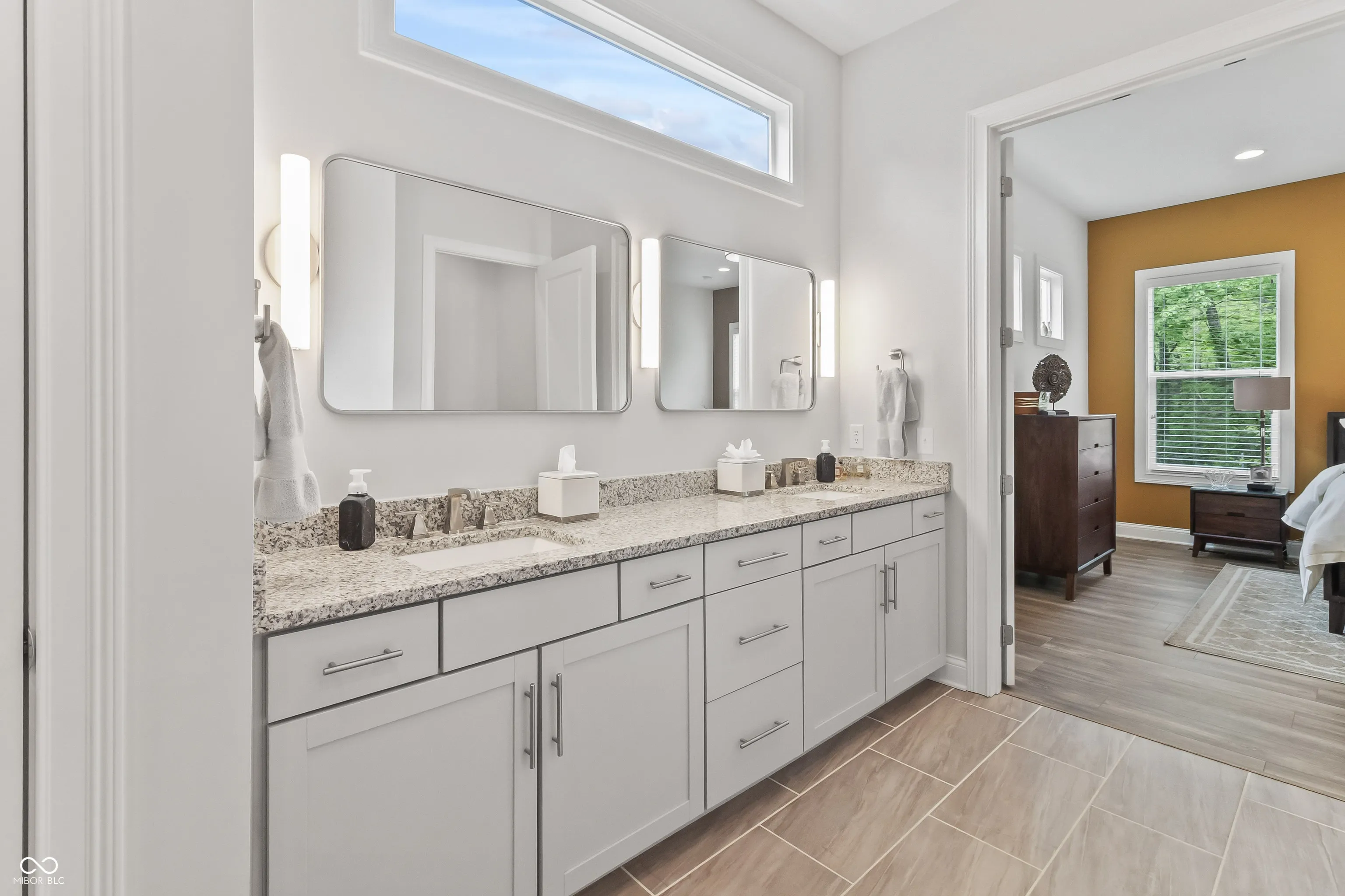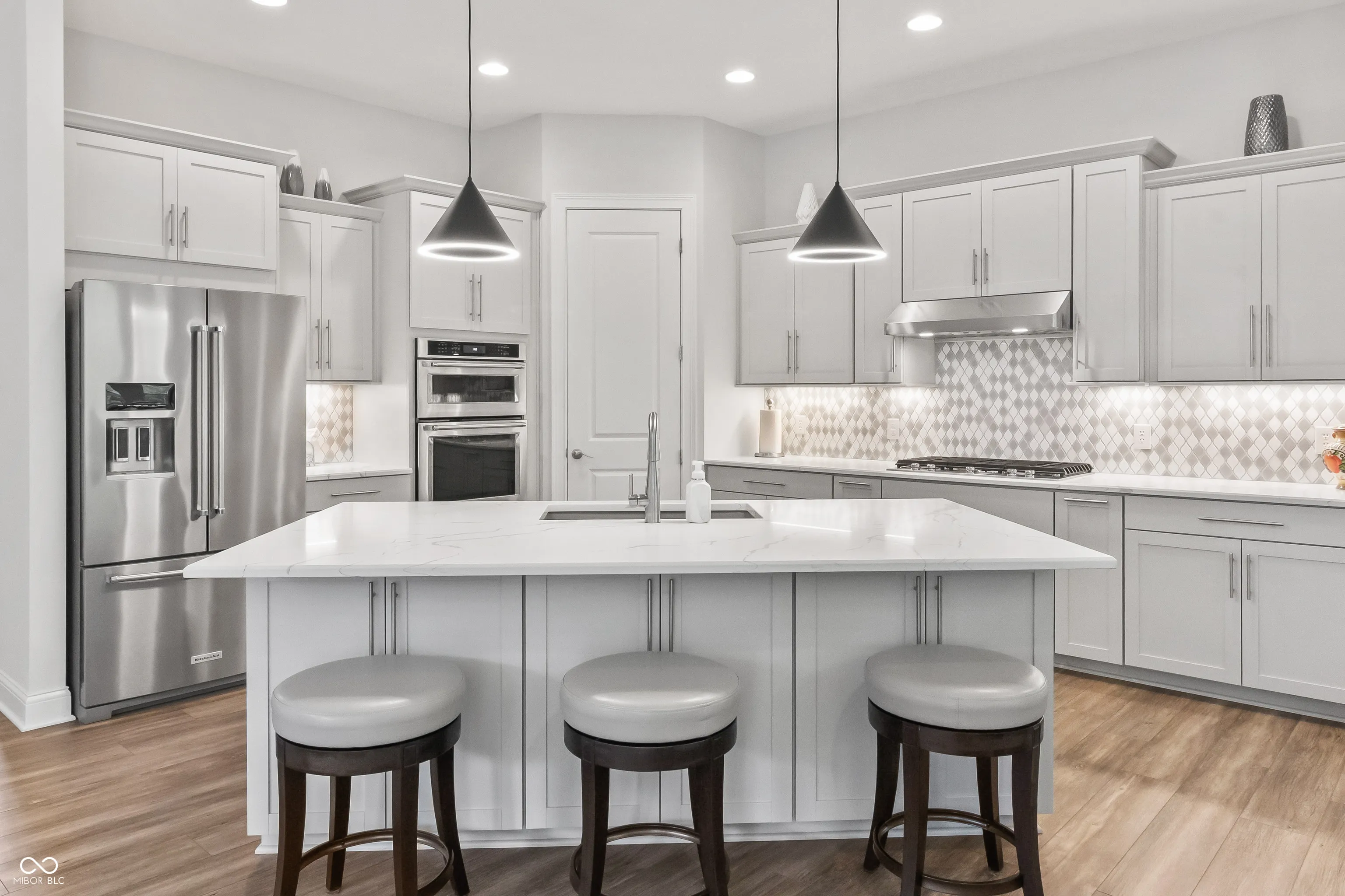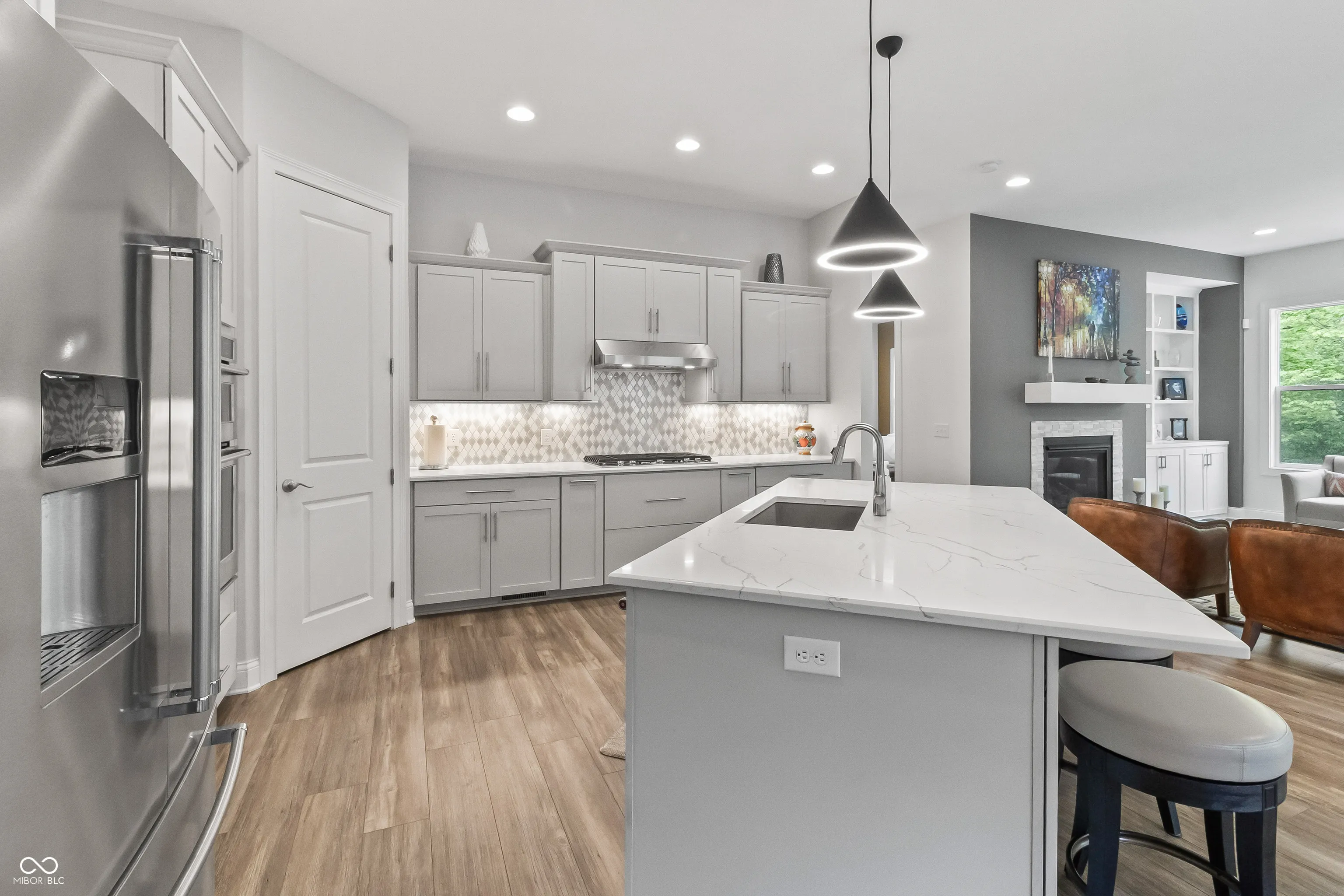 Welcome to this stunning 4 bedroom, 3 bath Ranch w/finished basement home located in the Coveted Wood Wind Golf Community in Westfield, where modern elegance seamlessly blends with custom craftsmanship. Upon entering, you’ll be greeted by spacious interiors featuring impressive 10′ ceilings and exquisite custom trim that radiates timeless sophistication. The gourmet kitchen is a chef’s paradise, equipped with Quartz countertops, a generous island, high-end stainless steel appliances. The formal dining room is perfect for hosting larger gatherings. Unwind by the welcoming gas log fireplace in the great room, adorned with charming built-ins that add both beauty and functionality. The Primary Suite will not disappoint! The spa-like bathrooms are highlighted by luxurious ceramic shower floors and stylish ceramic tub/shower surrounds, along with custom-designed closets. Enjoy seamless indoor-outdoor living on the covered porch w/Trex deck, step down to the custom patio overlooking wooded backyard and view of the golf course, ideal for both relaxation and entertaining. This home exemplifies functional excellence with finished garages featuring insulated overhead doors and an energy-efficient tankless water heater. Entertain in style in the fully equipped basement, complete with an elegant wet bar for memorable occasions. The location is exceptional, being close to Grand Park, walking distance to Wood Wind Golf Club Clubhouse, and Clay Terrace, offering a variety of recreational activities, shopping, and dining experiences. Additionally, this home is situated in the highly acclaimed Westfield School district. Discover unparalleled living in this meticulously custom crafted home, offering a perfect blend of elegance, functionality, and premium features. Make this extraordinary residence your new sanctuary today! Please note that 4th bedroom in basement is not drywalled per child’s design. Seller would offer credit for drywall finish.