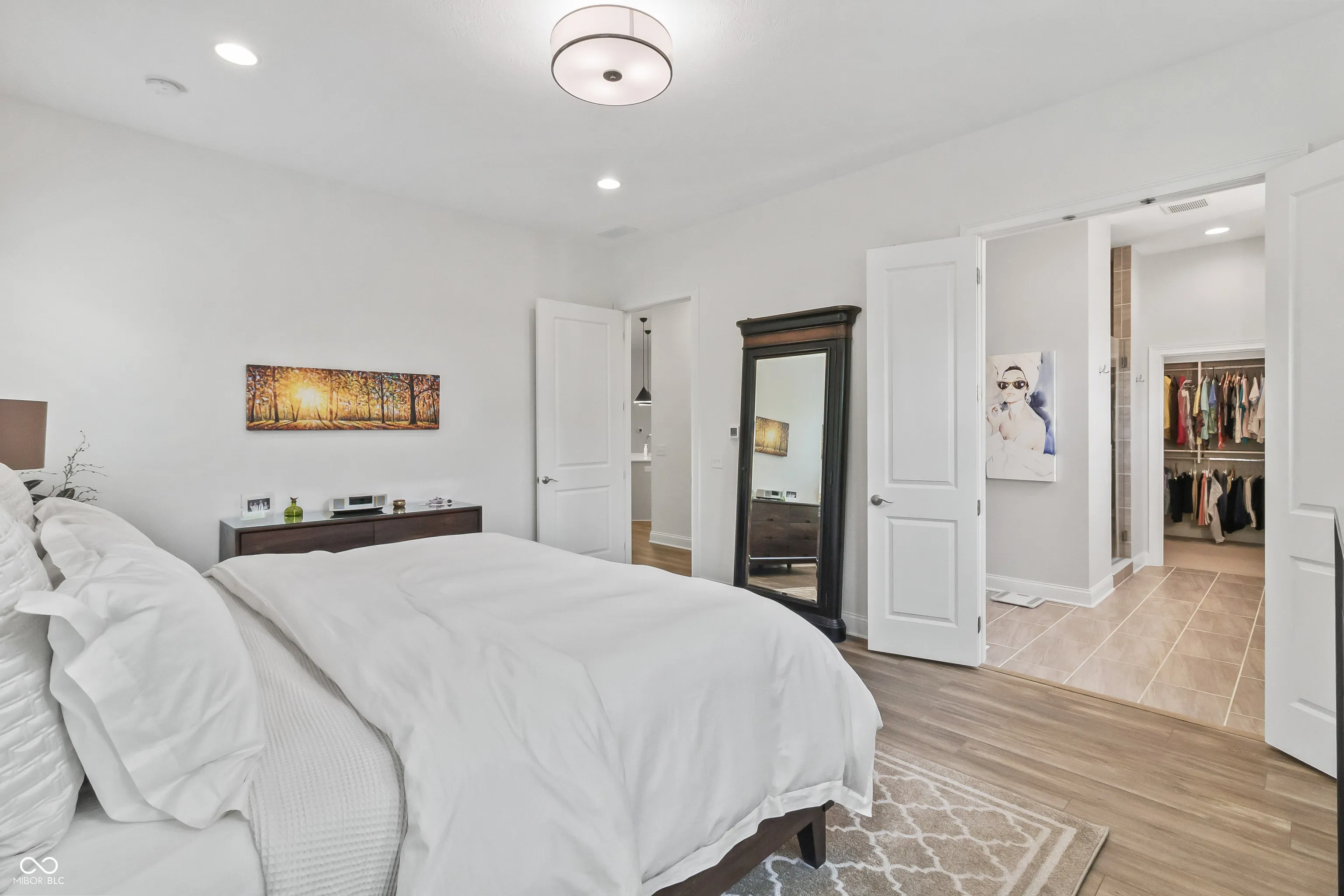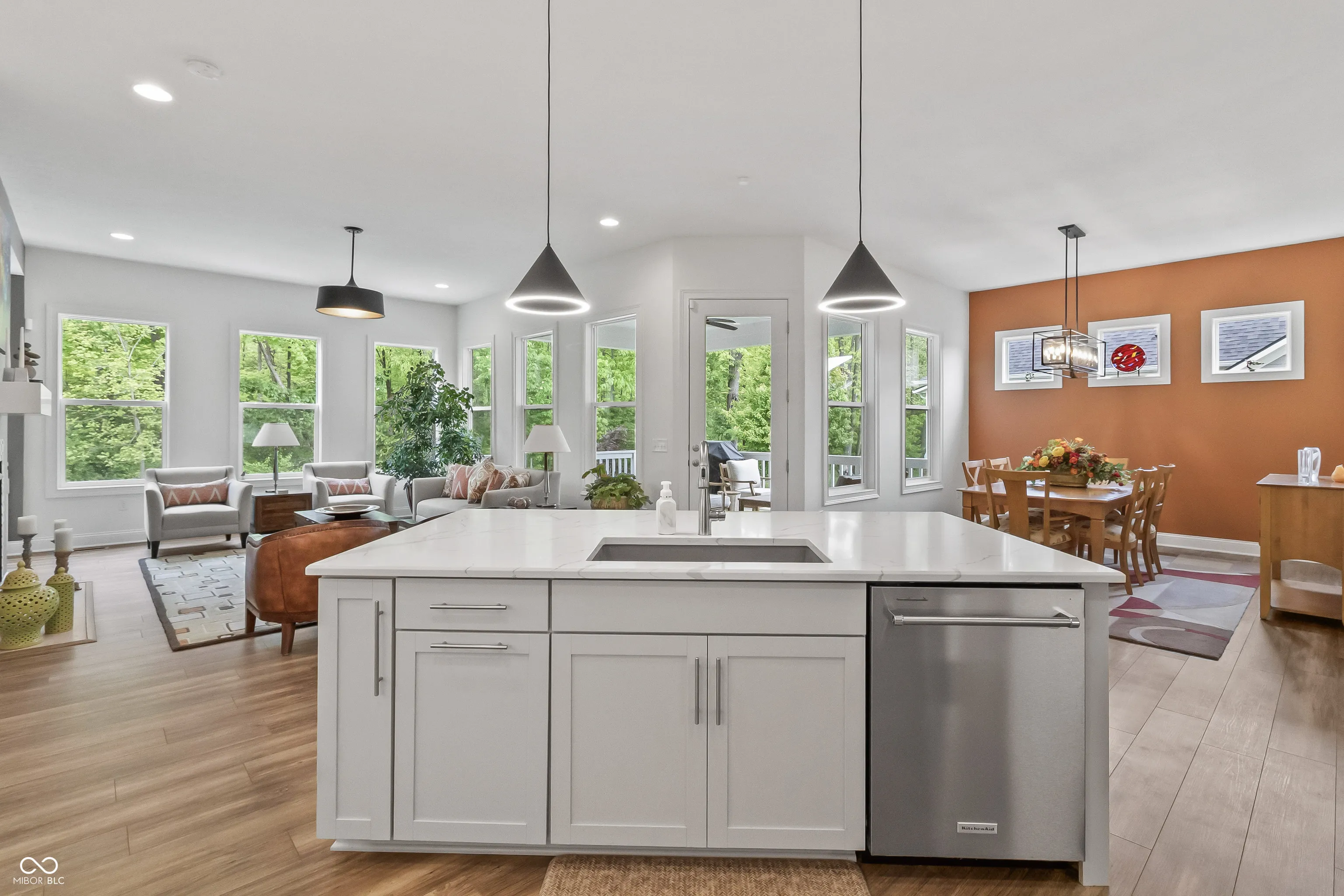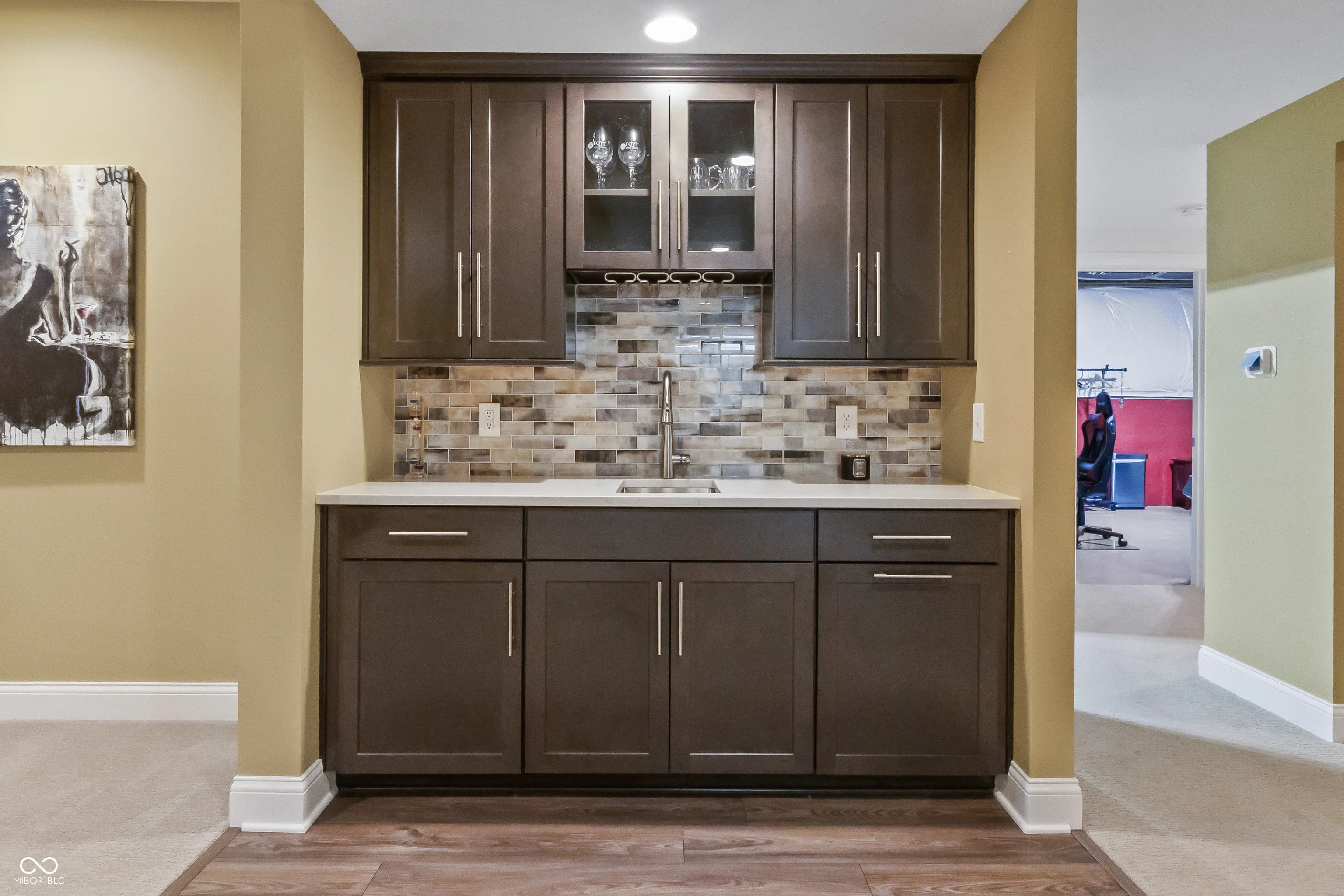Welcome to this stunning 4 bedroom, 3 bath Ranch w/finished basement home located in the Coveted Wood Wind Golf Community in Westfield, where modern elegance seamlessly blends with custom craftsmanship. Upon entering, you’ll be greeted by spacious interiors featuring impressive 10′ ceilings and exquisite custom trim that radiates timeless sophistication. The gourmet kitchen is a chef’s paradise, equipped with Quartz countertops, a generous island, high-end stainless steel appliances. The formal dining room is perfect for hosting larger gatherings. Unwind by the welcoming gas log fireplace in the great room, adorned with charming built-ins that add both beauty and functionality. The Primary Suite will not disappoint! The spa-like bathrooms are highlighted by luxurious ceramic shower floors and stylish ceramic tub/shower surrounds, along with custom-designed closets. Enjoy seamless indoor-outdoor living on the covered porch w/Trex deck, step down to the custom patio overlooking wooded backyard and view of the golf course, ideal for both relaxation and entertaining. This home exemplifies functional excellence with finished garages featuring insulated overhead doors and an energy-efficient tankless water heater. Entertain in style in the fully equipped basement, complete with an elegant wet bar for memorable occasions. The location is exceptional, being close to Grand Park, walking distance to Wood Wind Golf Club Clubhouse, and Clay Terrace, offering a variety of recreational activities, shopping, and dining experiences. Additionally, this home is situated in the highly acclaimed Westfield School district. Discover unparalleled living in this meticulously custom crafted home, offering a perfect blend of elegance, functionality, and premium features. Make this extraordinary residence your new sanctuary today! Please note that 4th bedroom in basement is not drywalled per child’s design. Seller would offer credit for drywall finish.