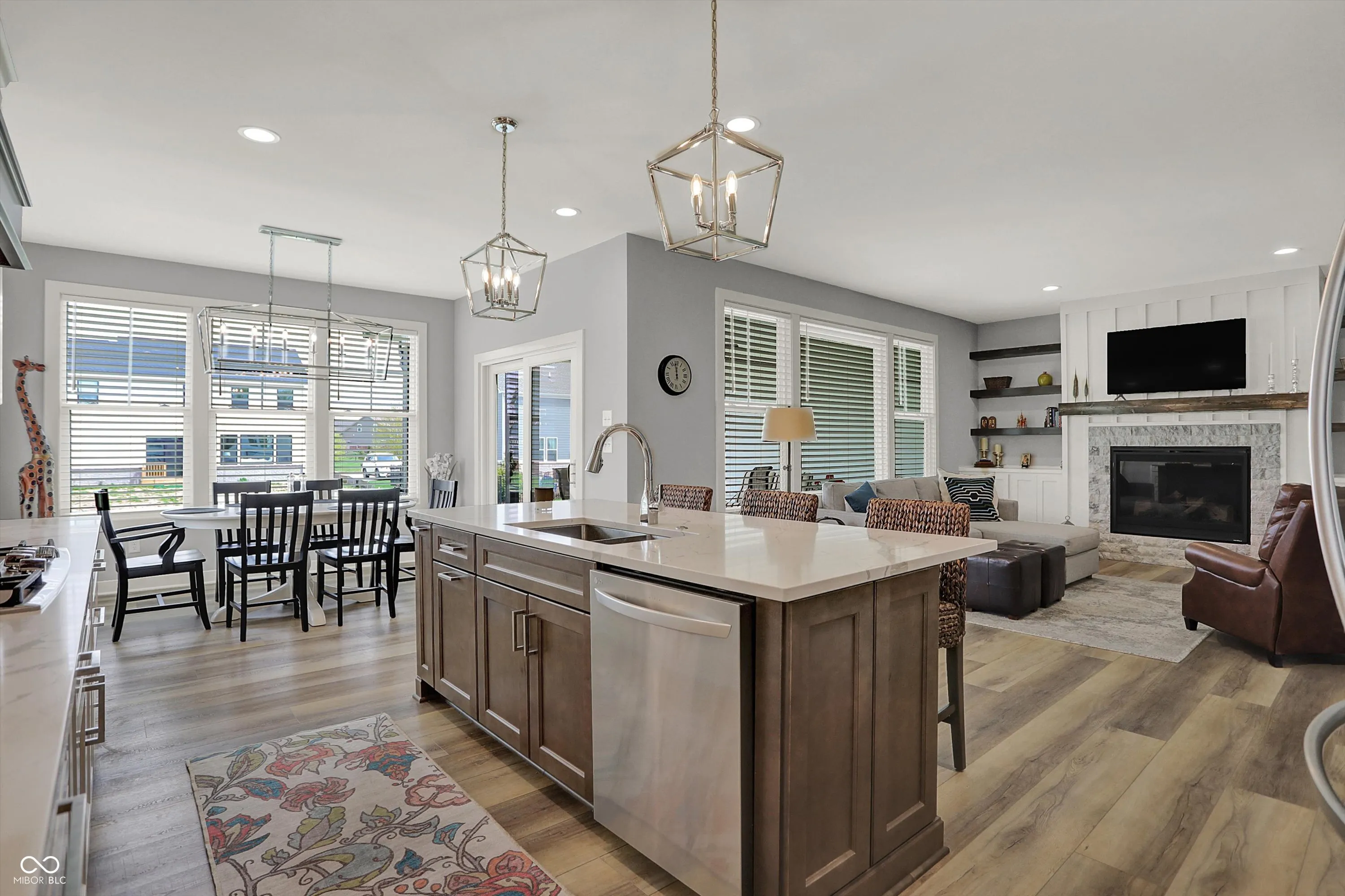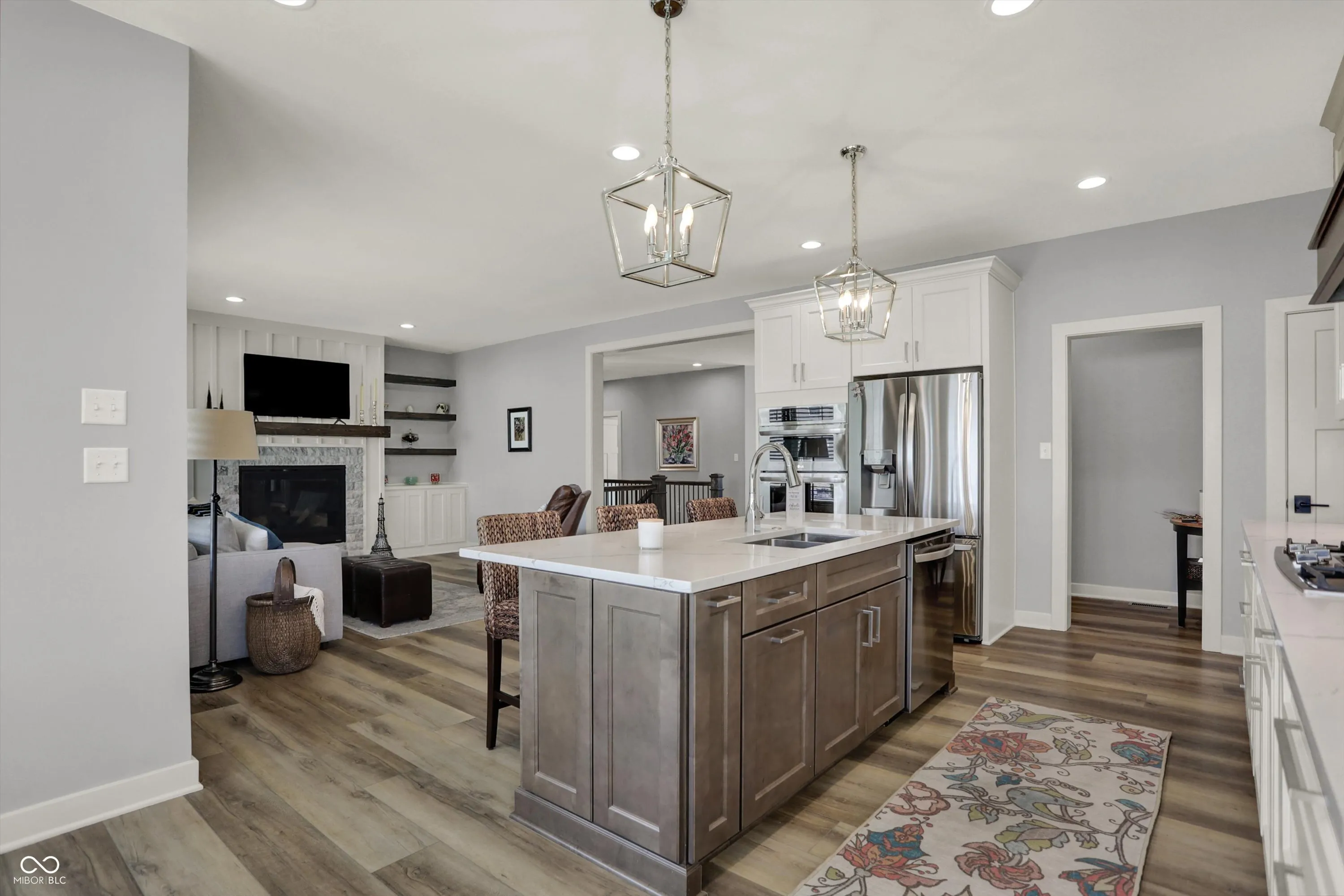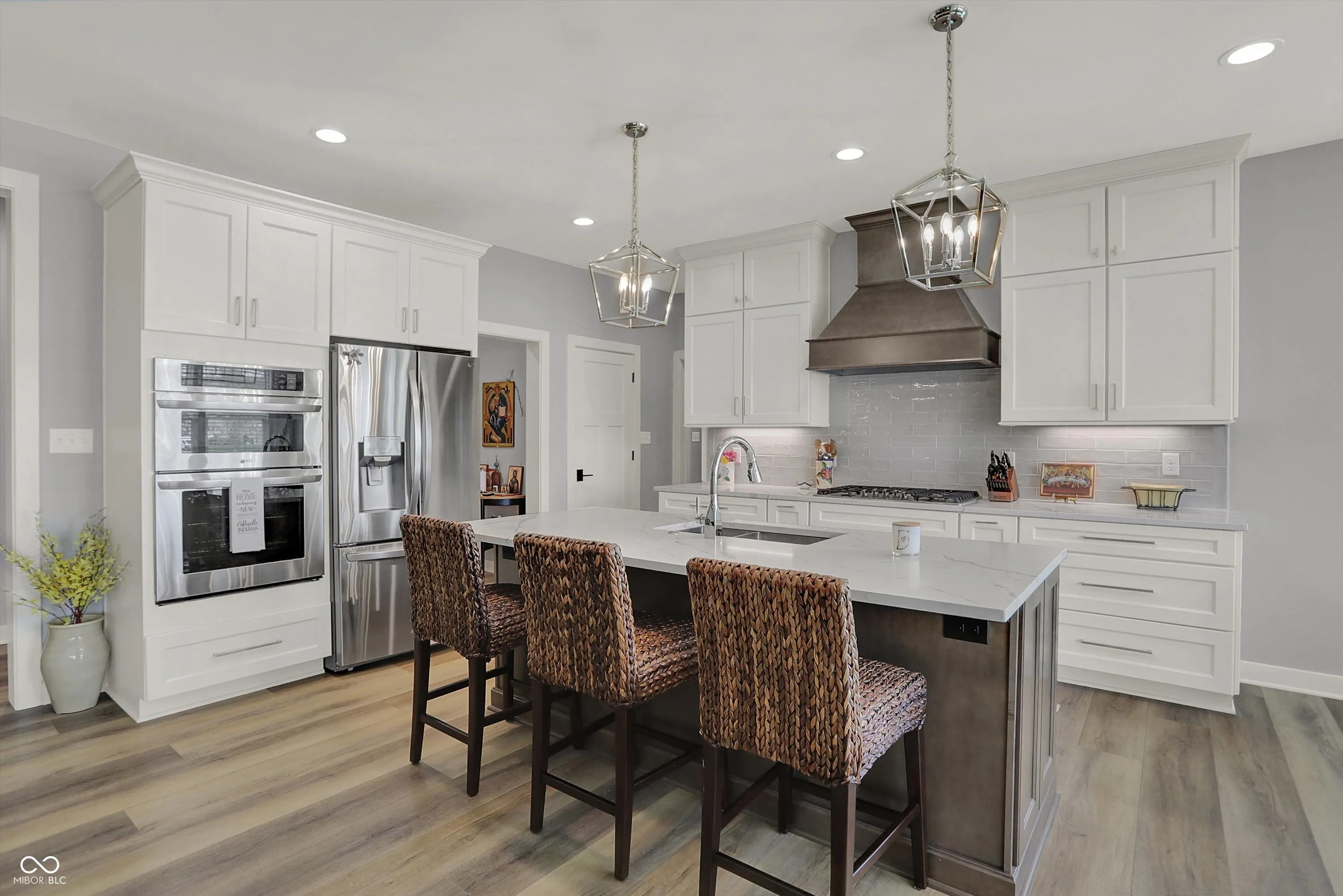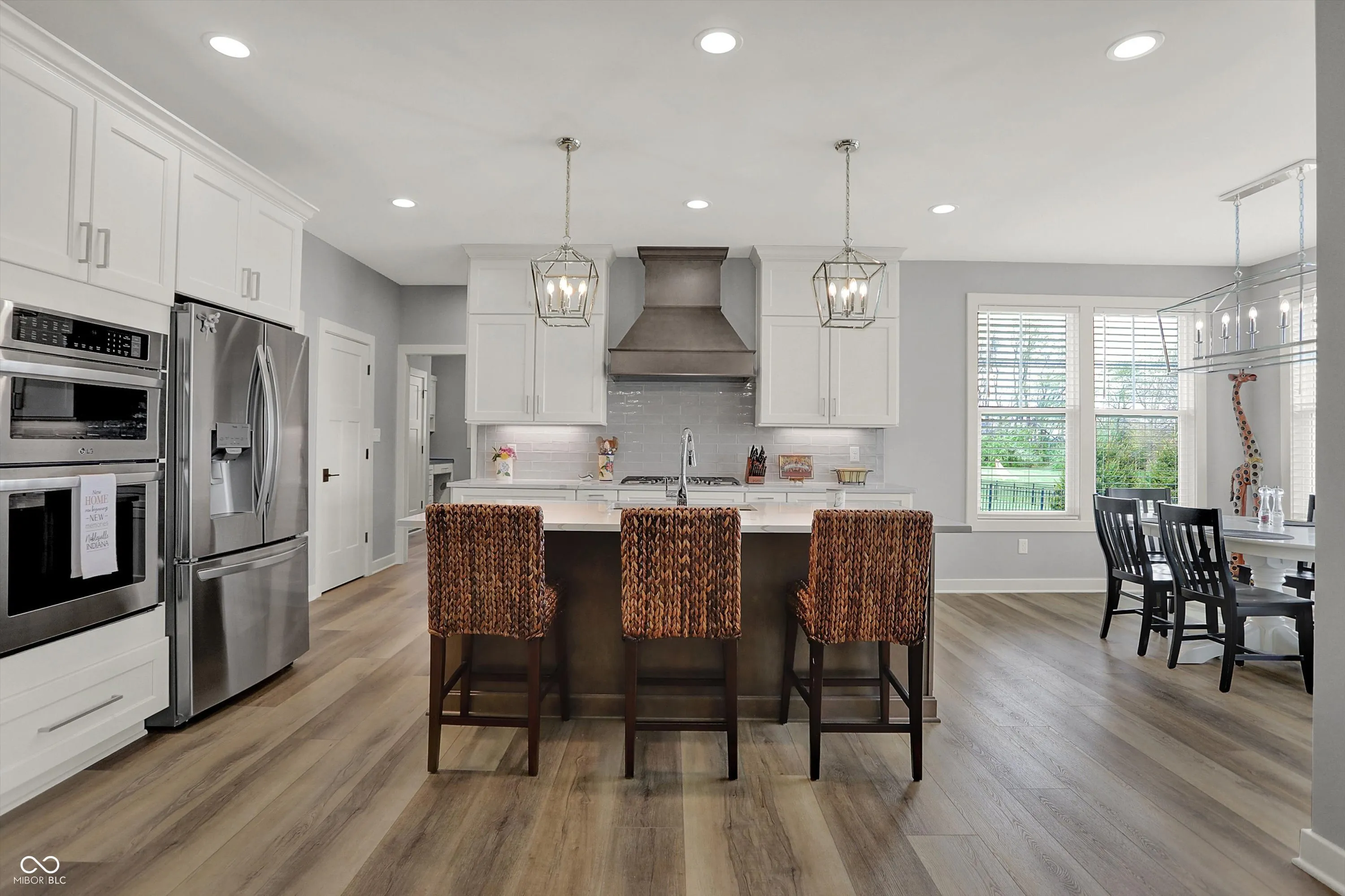 Nestled in the Conner Crossing neighborhood, this over 4K sq ft one-of-a-kind custom-built home has 4 bedrooms, 3.5 baths with designer features and custom cabinets throughout. Step into the open foyer with a private office with French doors, which is perfect for work-at-home. The elegant gourmet kitchen impresses with a large center island, two-toned cabinets. walk-in pantry, gas cooktop, and double ovens. The breakfast nook is surrounded by windows and has access to the private covered patio. The great room features a stone gas fireplace with a wooden mantel and coordinating shelves and cabinets. The spacious 1st-floor private master retreat features a tray ceiling and a spa-like en suite, and a large custom walk-in closet. The main floor includes 2 additional bedrooms with large closets. Also located on the main floor is a large custom laundry room with a Dutch door and a spacious mudroom with a pocket office off the 3-car garage. The finished lower level features a large family room with windows and an additional,private bedroom and full bathroom, perfect for guests, along with a custom bar, exercise room, and both finished and unfinished storage. Outdoors features a fully fenced-in backyard with an irrigation system and enhanced landscaping, which can be enjoyed from the front porch and large back patio. This golf cart community offers direct access to Pebble Brook Golf Course and includes a neighborhood pool. Over $20K in upgrades have been added including a water softener, blinds throughout, and landscaping. This must-see home blends luxury and functionality and is move in ready.