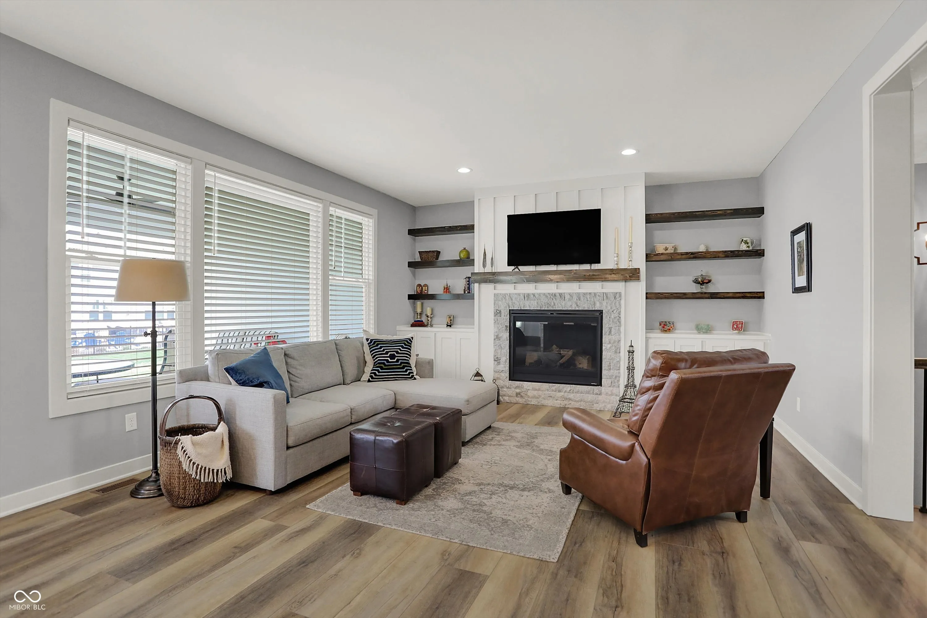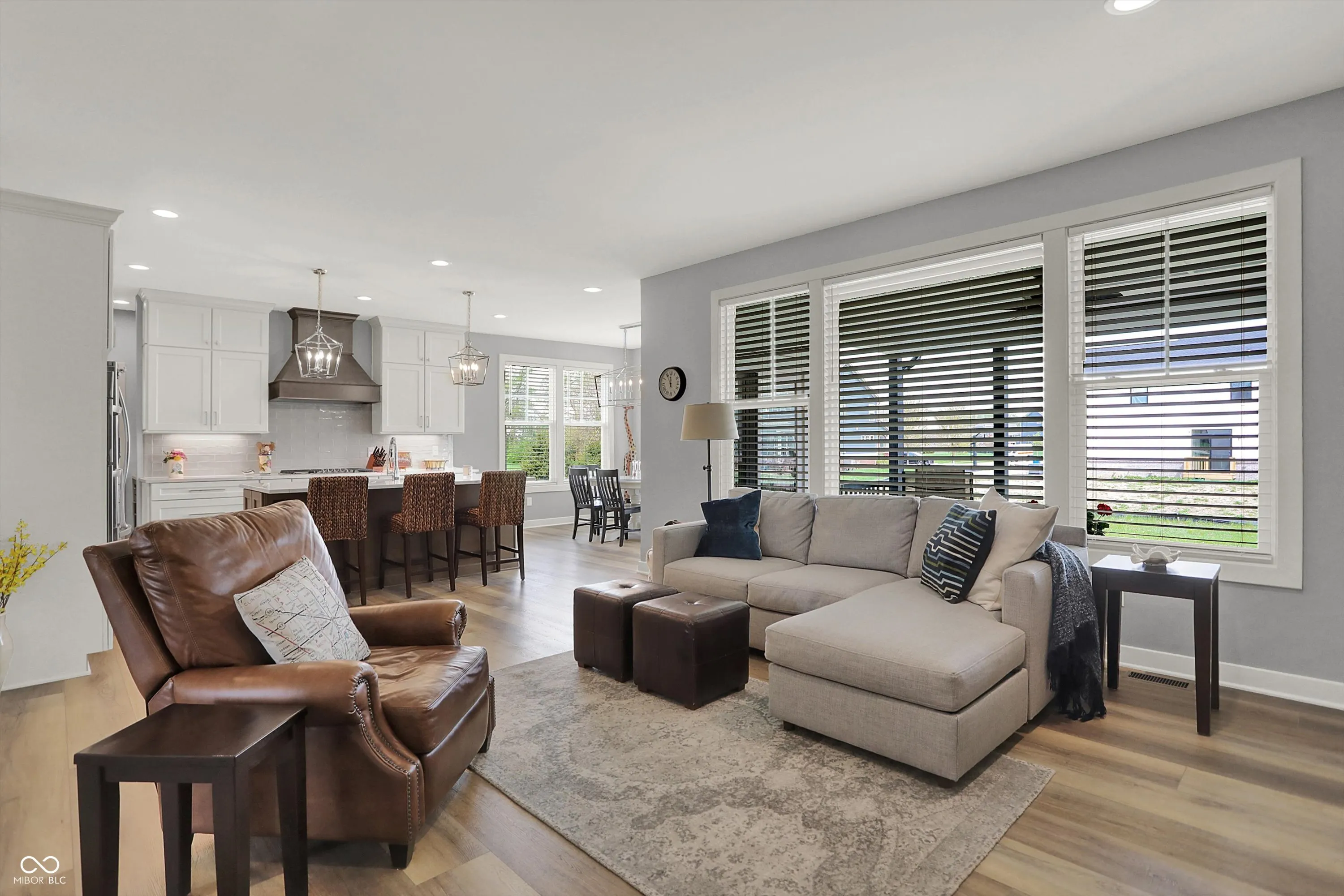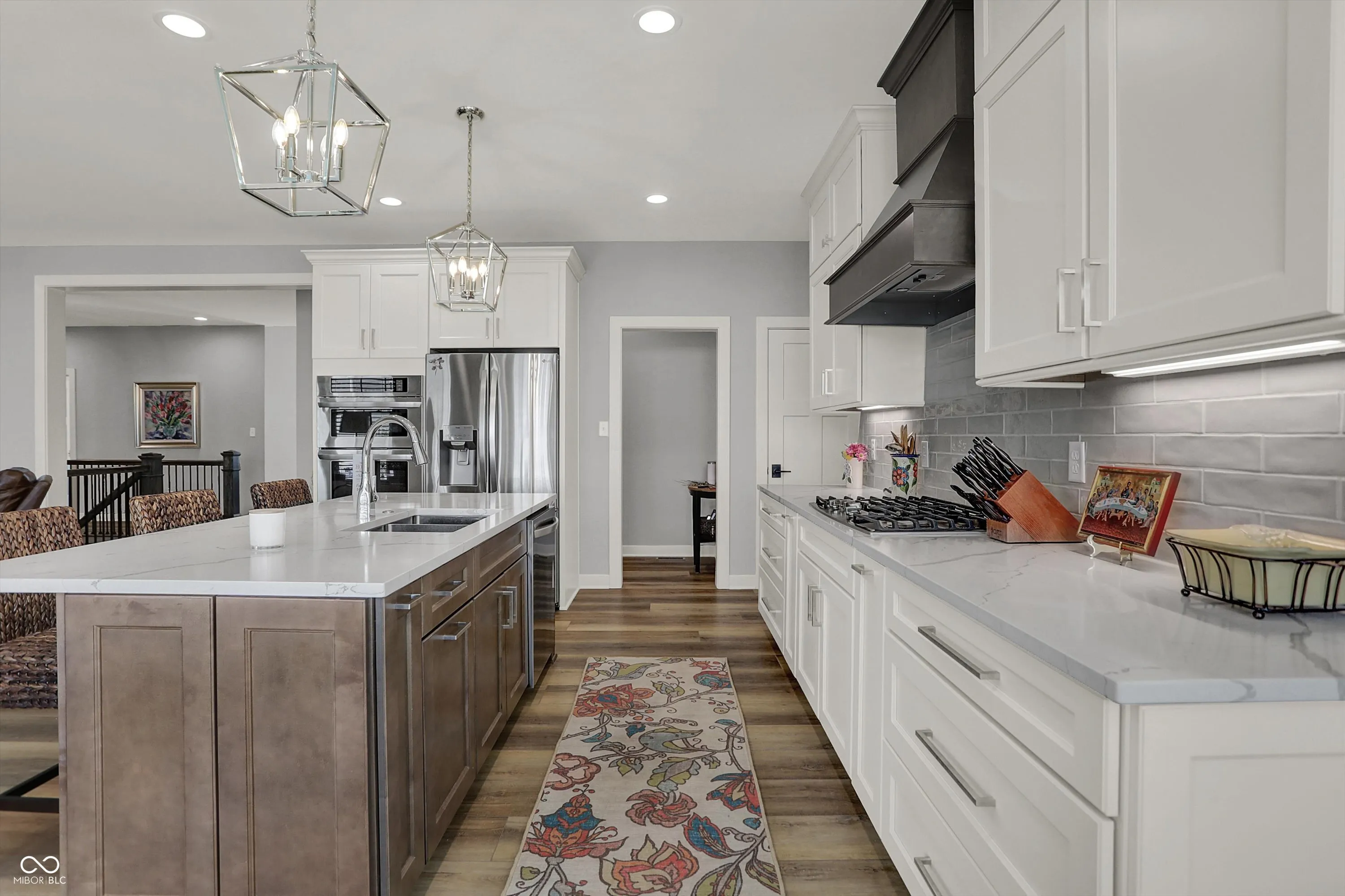 Nestled in the Conner Crossing neighborhood, this over 4K sq ft one-of-a-kind custom-built home has 4 bedrooms, 3.5 baths with designer features and custom cabinets throughout. Step into the open foyer with a private office with French doors, which is perfect for work-at-home. The elegant gourmet kitchen impresses with a large center island, two-toned cabinets. walk-in pantry, gas cooktop, and double ovens. The breakfast nook is surrounded by windows and has access to the private covered patio. The great room features a stone gas fireplace with a wooden mantel and coordinating shelves and cabinets. The spacious 1st-floor private master retreat features a tray ceiling and a spa-like en suite, and a large custom walk-in closet. The main floor includes 2 additional bedrooms with large closets. Also located on the main floor is a large custom laundry room with a Dutch door and a spacious mudroom with a pocket office off the 3-car garage. The finished lower level features a large family room with windows and an additional,private bedroom and full bathroom, perfect for guests, along with a custom bar, exercise room, and both finished and unfinished storage. Outdoors features a fully fenced-in backyard with an irrigation system and enhanced landscaping, which can be enjoyed from the front porch and large back patio. This golf cart community offers direct access to Pebble Brook Golf Course and includes a neighborhood pool. Over $20K in upgrades have been added including a water softener, blinds throughout, and landscaping. This must-see home blends luxury and functionality and is move in ready.