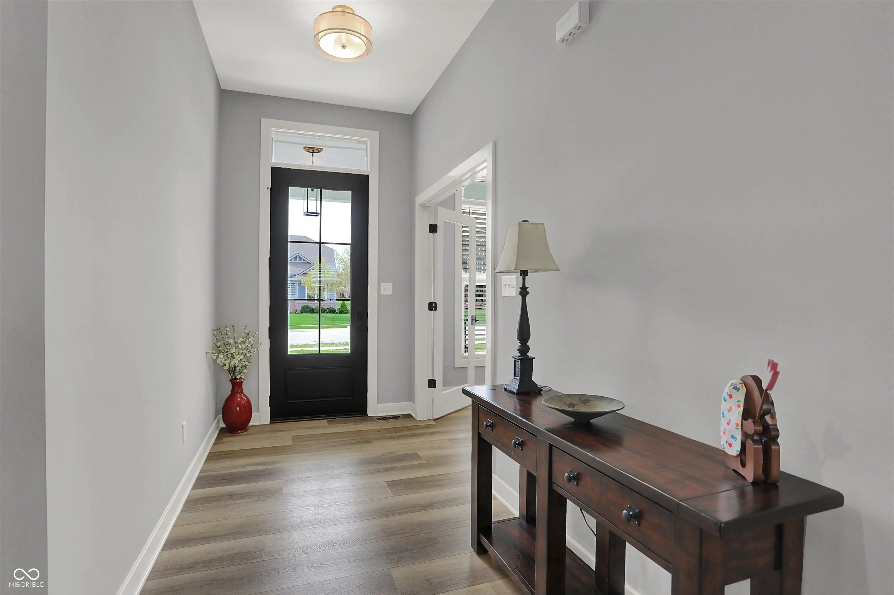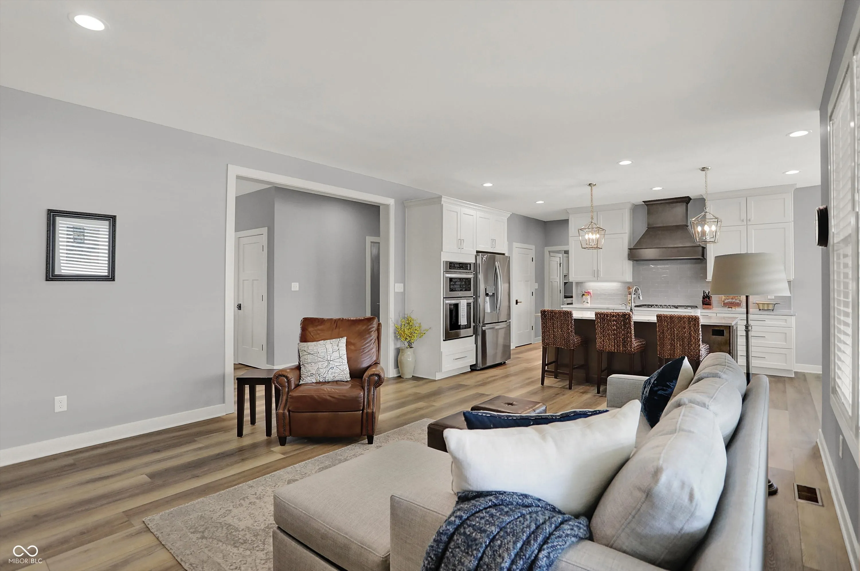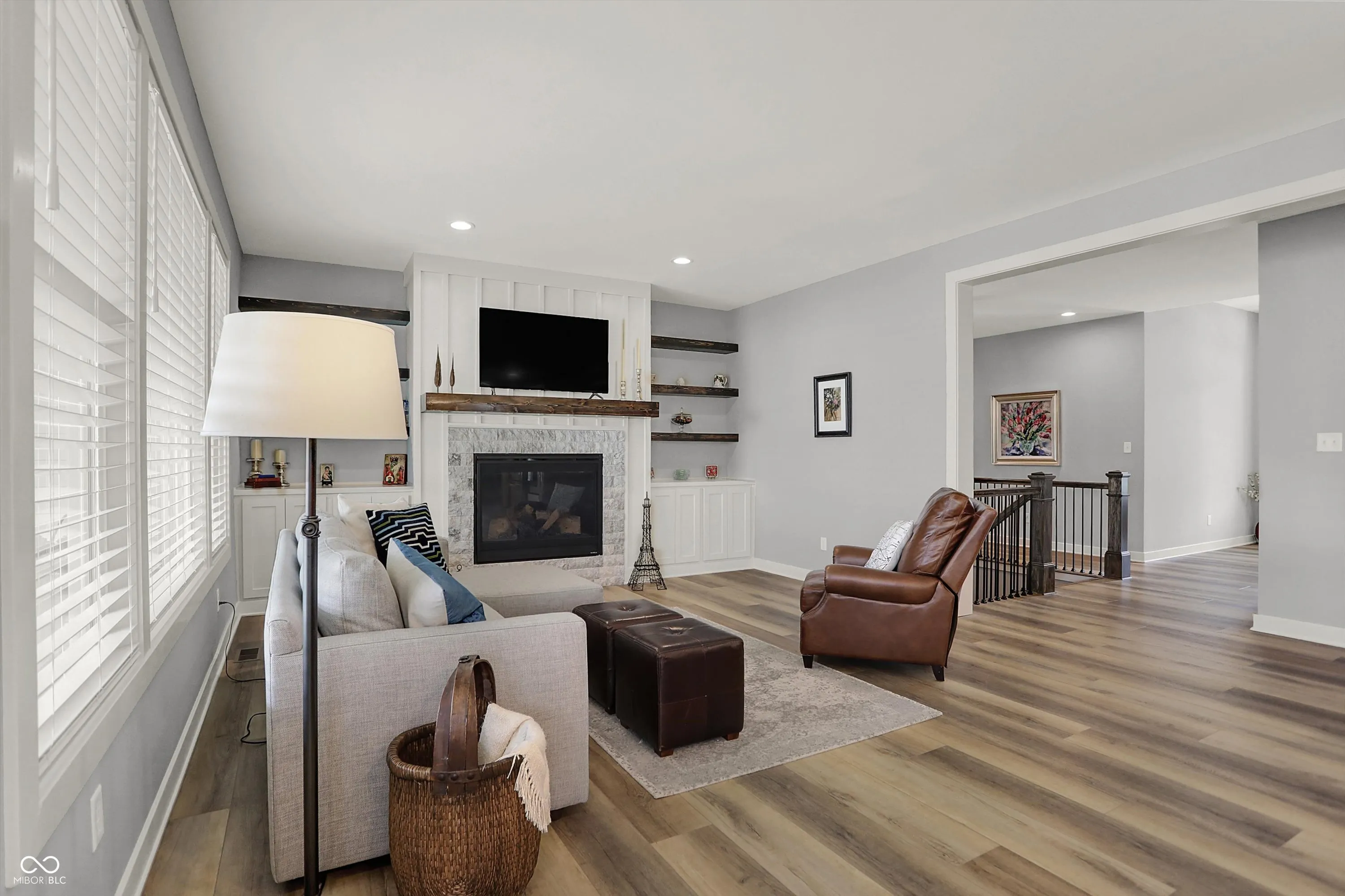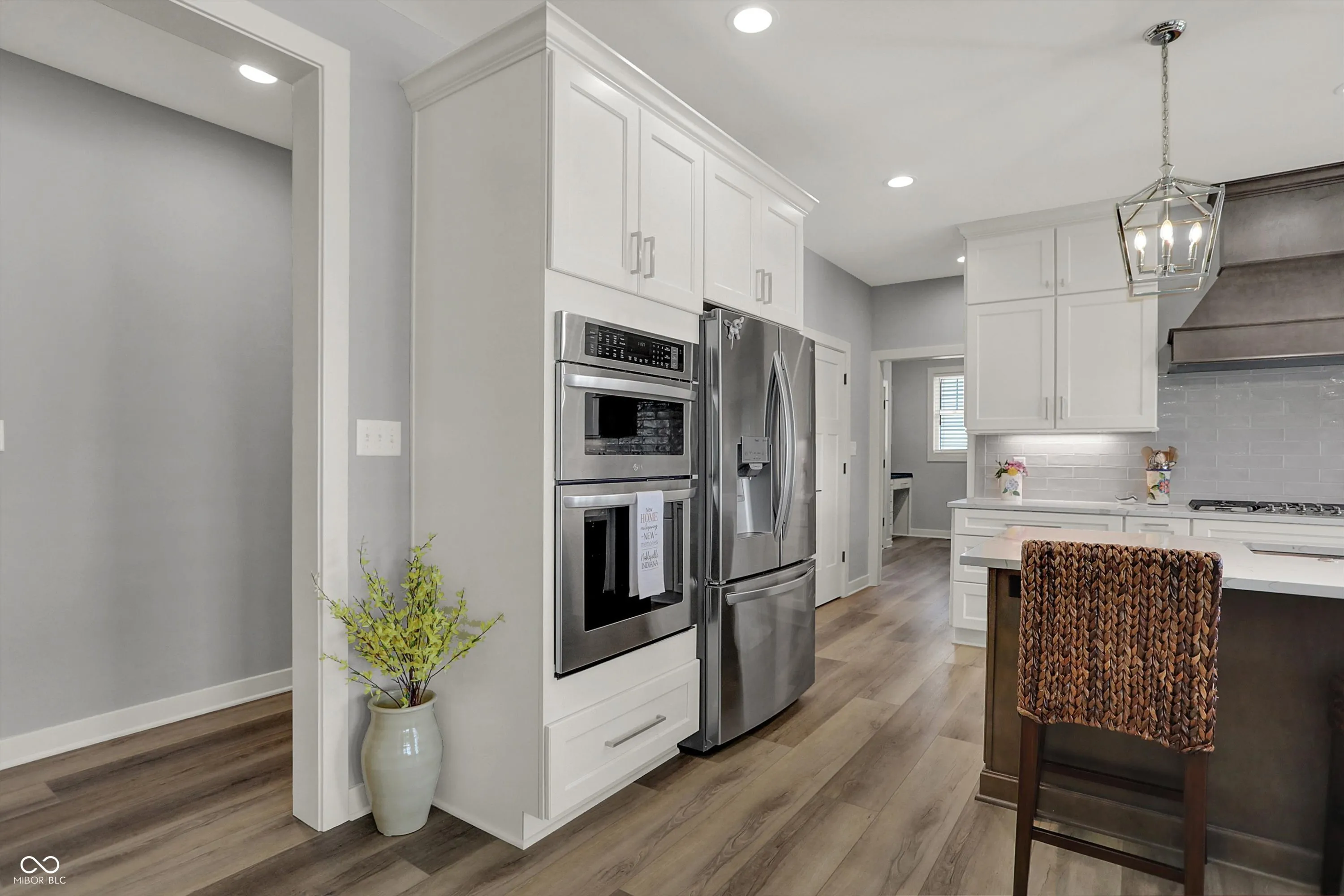 Nestled in the Conner Crossing neighborhood, this over 4K sq ft one-of-a-kind custom-built home has 4 bedrooms, 3.5 baths with designer features and custom cabinets throughout. Step into the open foyer with a private office with French doors, which is perfect for work-at-home. The elegant gourmet kitchen impresses with a large center island, two-toned cabinets. walk-in pantry, gas cooktop, and double ovens. The breakfast nook is surrounded by windows and has access to the private covered patio. The great room features a stone gas fireplace with a wooden mantel and coordinating shelves and cabinets. The spacious 1st-floor private master retreat features a tray ceiling and a spa-like en suite, and a large custom walk-in closet. The main floor includes 2 additional bedrooms with large closets. Also located on the main floor is a large custom laundry room with a Dutch door and a spacious mudroom with a pocket office off the 3-car garage. The finished lower level features a large family room with windows and an additional,private bedroom and full bathroom, perfect for guests, along with a custom bar, exercise room, and both finished and unfinished storage. Outdoors features a fully fenced-in backyard with an irrigation system and enhanced landscaping, which can be enjoyed from the front porch and large back patio. This golf cart community offers direct access to Pebble Brook Golf Course and includes a neighborhood pool. Over $20K in upgrades have been added including a water softener, blinds throughout, and landscaping. This must-see home blends luxury and functionality and is move in ready.