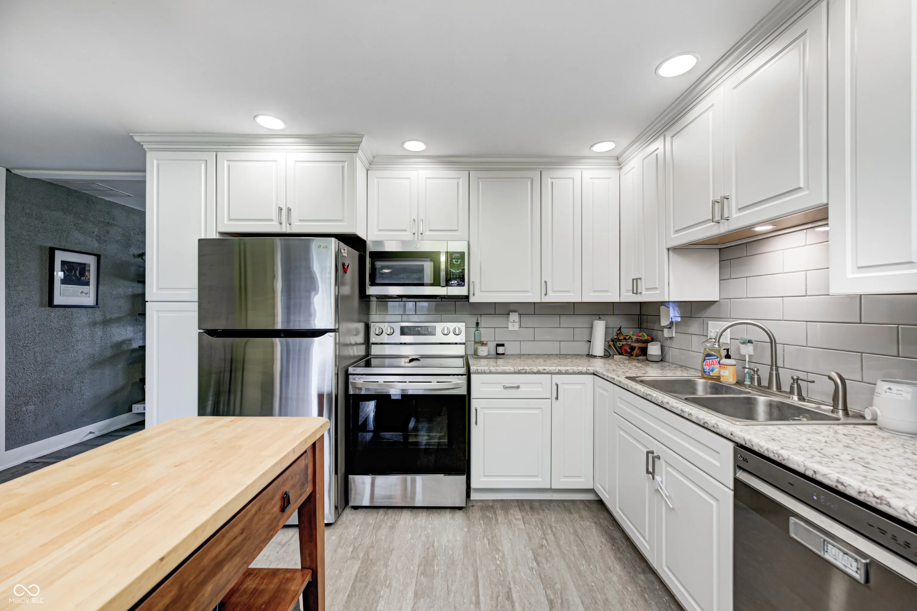 Opportunity is knocking on this quality ranch in Franklin. Enjoy the flexible floorplan with dual living areas, a cozy front living room and a spacious family room. The remodeled kitchen boasts updated cabinets, recessed lighting, modern countertops, stainless steel appliances, and a classic subway tile backsplash. The bathroom was updated in 2020 with a new vanity, stool, and tub/shower combo. Major systems are newer, including the HVAC and water heater (2020), providing peace of mind. Step out back to a 17×12 patio overlooking a large, fully fenced yard, plus mini barn offering extra storage. The finished garage includes a service door, keyless entry, and an opener. Conveniently located with easy access to downtown Franklin, schools, and parks-this home is move-in ready and packed with value!