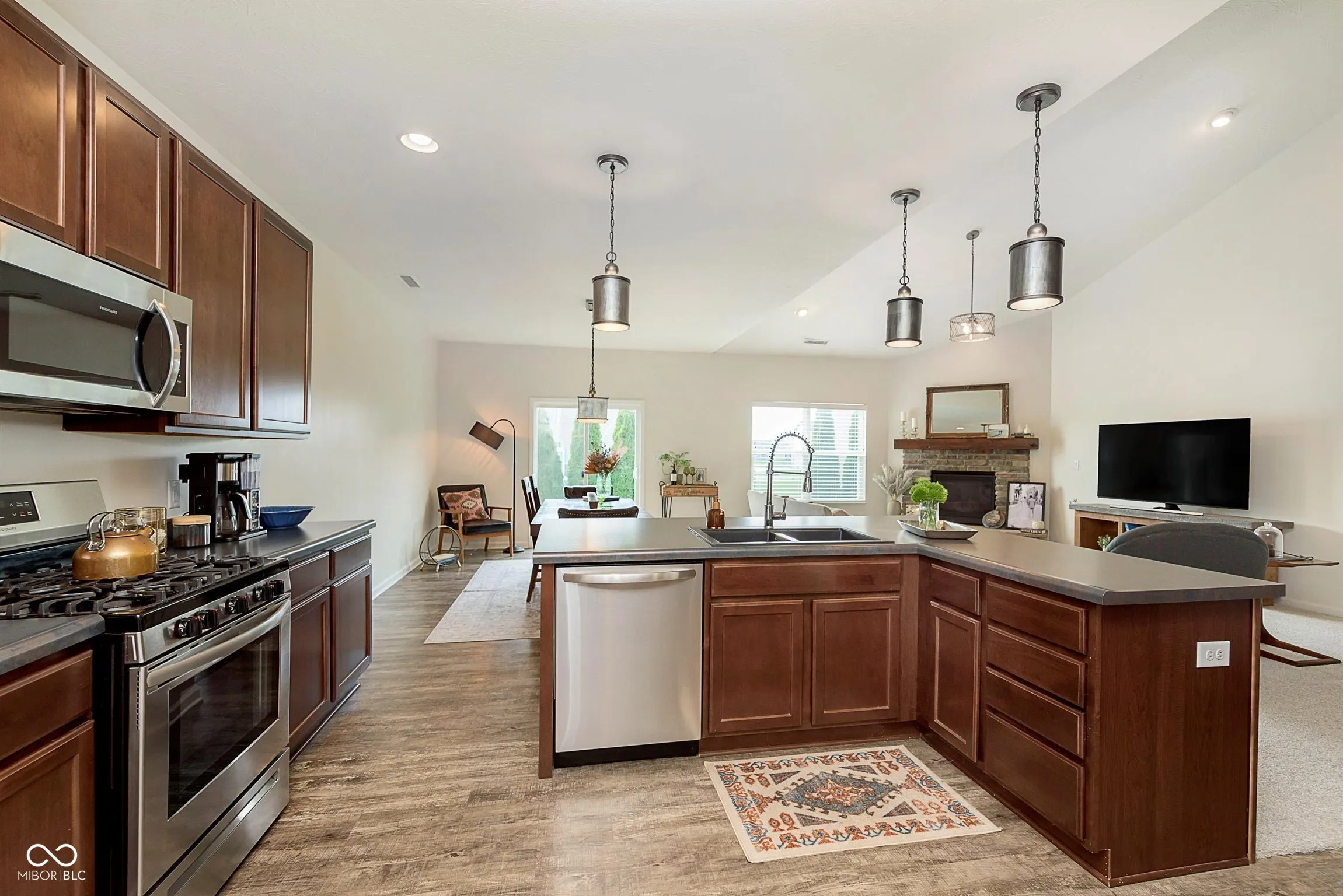 This stunning 4-bedroom, 2.5-bath home offers timeless elegance and modern comfort in a beautifully landscaped setting. The property is framed by gorgeous arborvitae, providing both privacy and curb appeal. The exterior features stylish brick wainscoting, adding character and durability to the home’s design. Inside, you’ll find brand-new carpeting throughout, soaring vaulted ceilings that enhance the sense of space and light, and a charming stone fireplace that adds warmth and character to the living area. The kitchen is a chef’s dream, featuring a high-end gas range for precise cooking and entertaining. Located in a top-rated school district, this home is perfect for families seeking both quality education and a beautiful place to call home. Don’t miss this opportunity to own a home that combines style, space, and an unbeatable location!