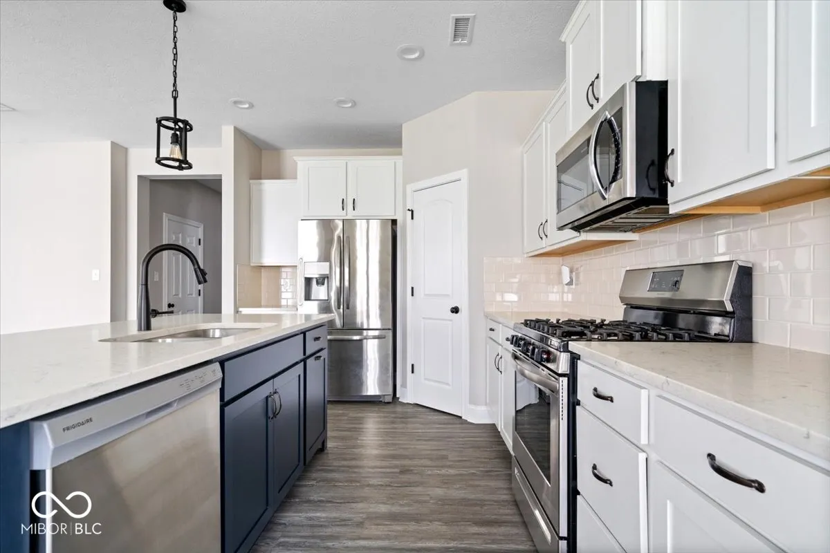 Welcome to 7012 Picket Place-a stunning, move-in ready home nestled in the highly desirable community of The Grove at Legacy in Carmel! This beautifully upgraded 4-bedroom, 3-bathroom home is the perfect blend of style, comfort, and functionality. Step inside and you’ll immediately notice the LVP flooring, elegant lighting, and thoughtful design touches throughout. The open-concept kitchen is a chef’s dream, featuring stainless steel appliances, granite countertops, a gas stove, and an oversized island that flows seamlessly into the great room-perfect for entertaining or gathering with family. Enjoy morning coffee in the cozy breakfast area overlooking the backyard. The main-level bedroom with attached full bath offers a fantastic guest suite or in-law option. Upstairs, retreat to the spacious primary suite with spa-like en-suite bath, designed for pure relaxation. A charming loft space provides an ideal spot for reading, streaming, or unwinding. The home comes with thoughtful extras like a whole-house humidifier, water purification system, upgraded light fixtures, and mini blinds on every window. Washer and dryer are included, making your move-in a breeze! Located in a vibrant neighbourhood close to top-rated Carmel schools, parks, trails, and shopping, this home offers luxury, comfort, and convenience. Don’t miss the opportunity to own this model-like gem-schedule your private showing today!